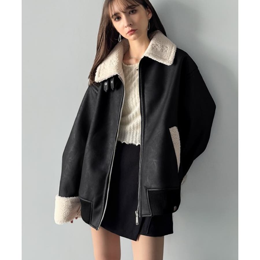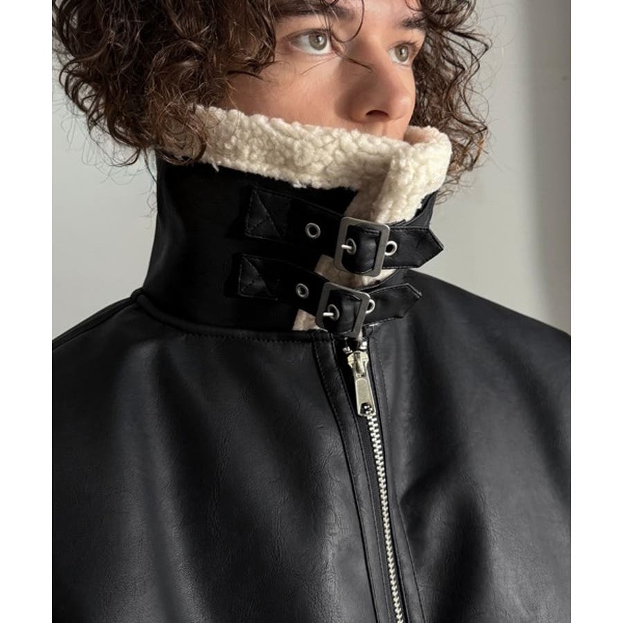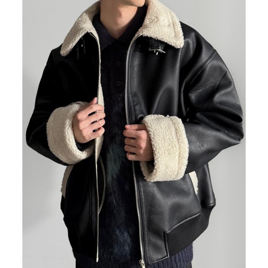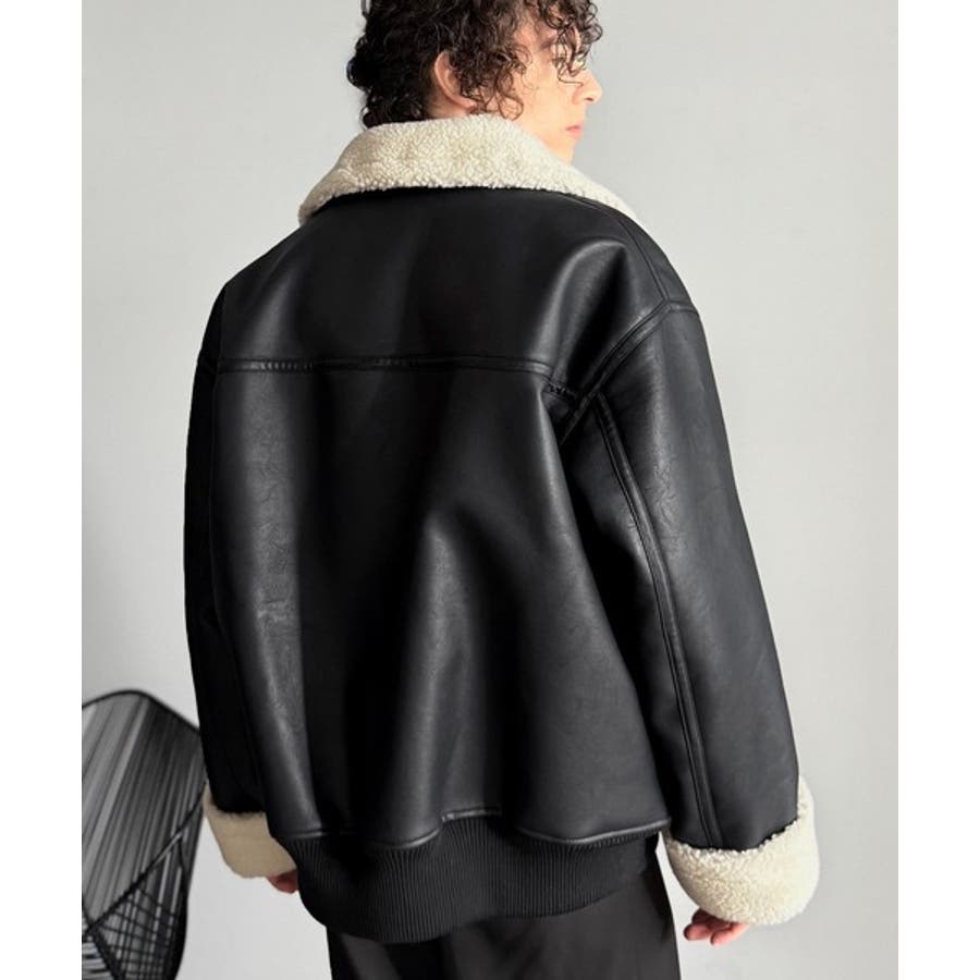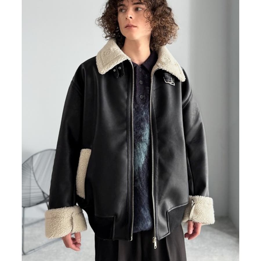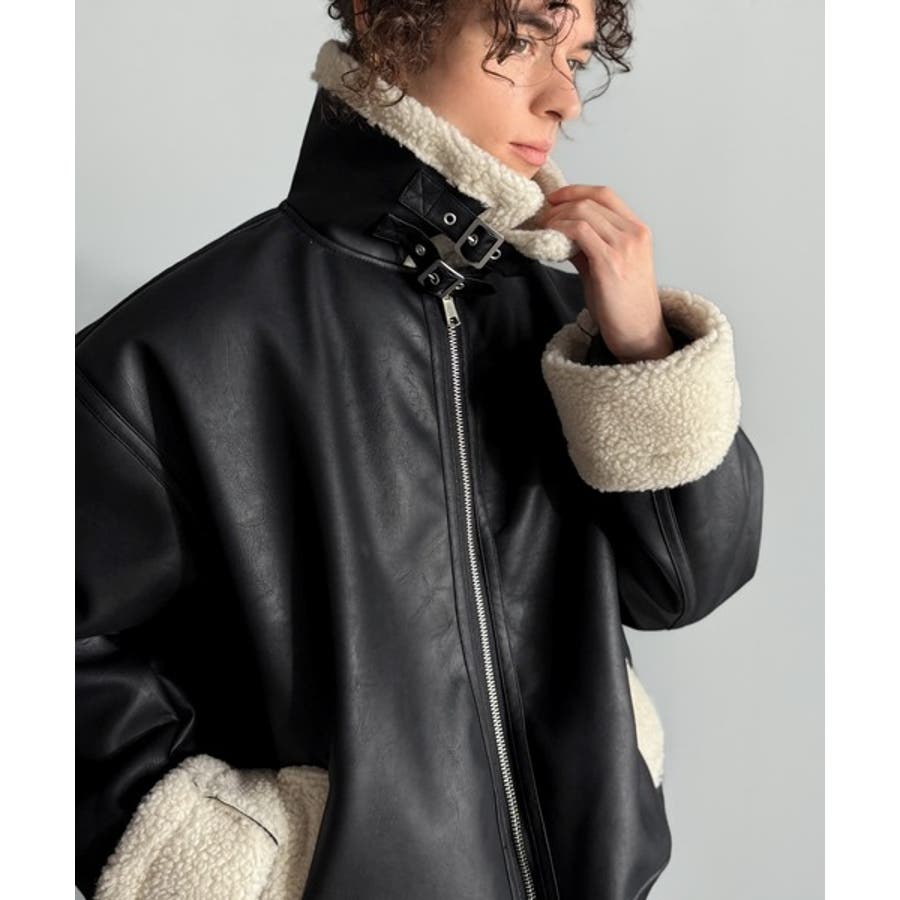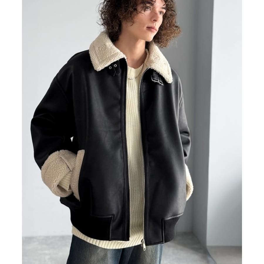 「 2way Boa Collar Faux Leather Jacket/2way襟ボア切り替えフェイクレザージャケット 」