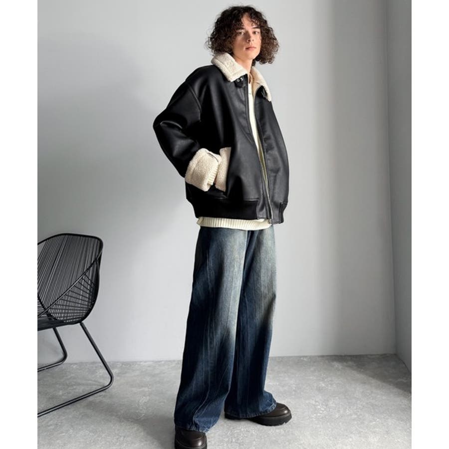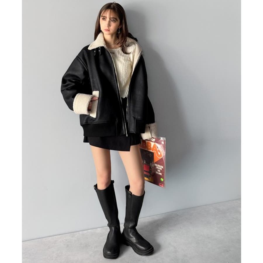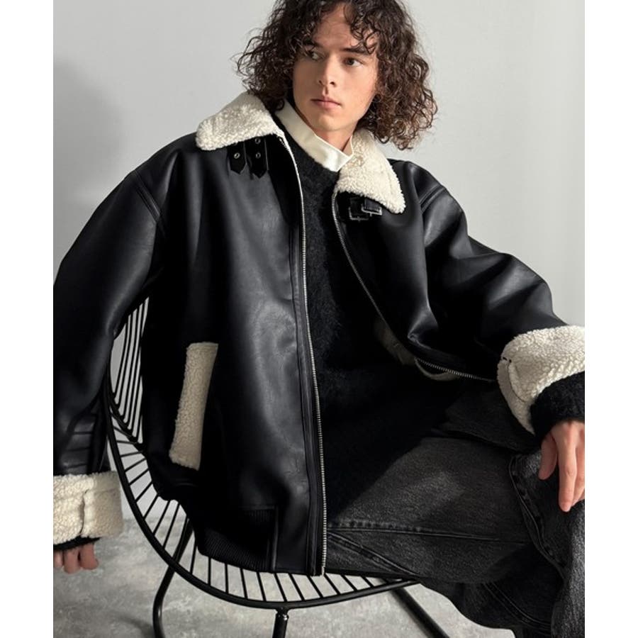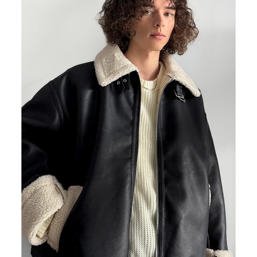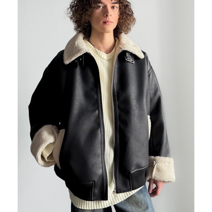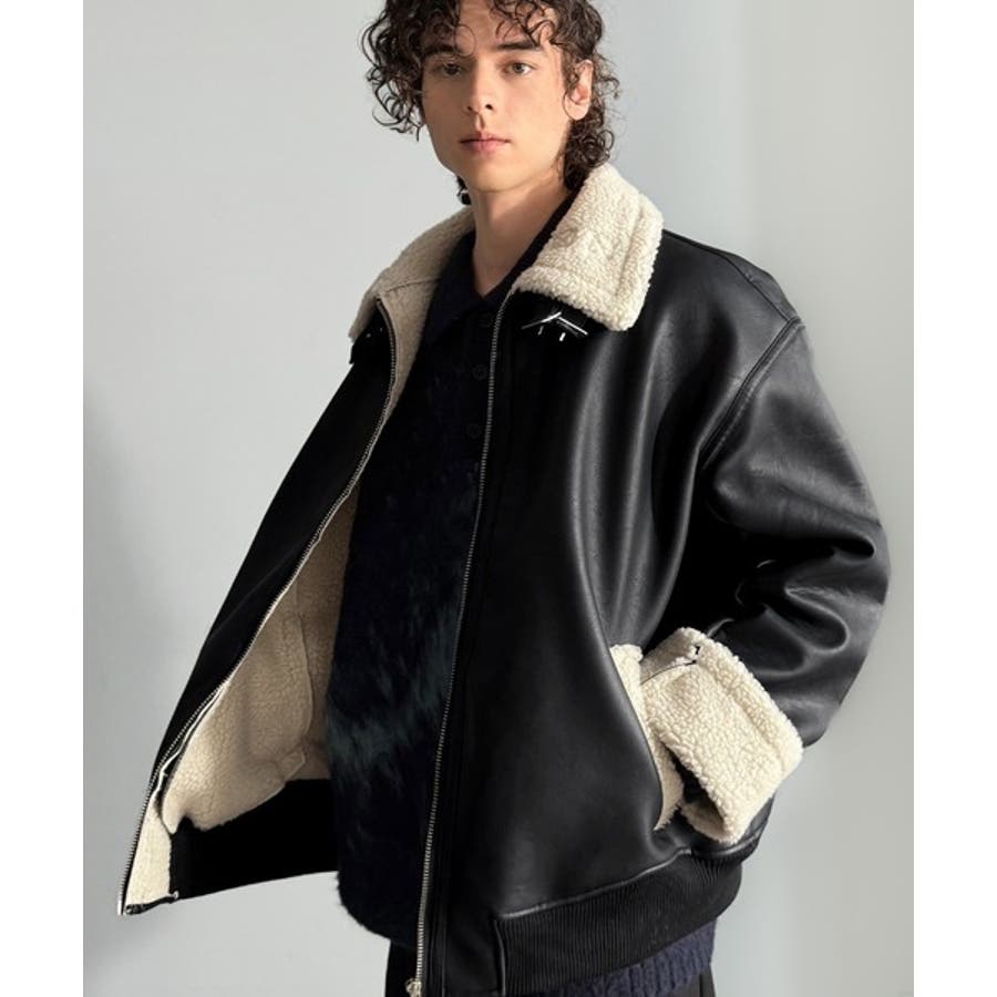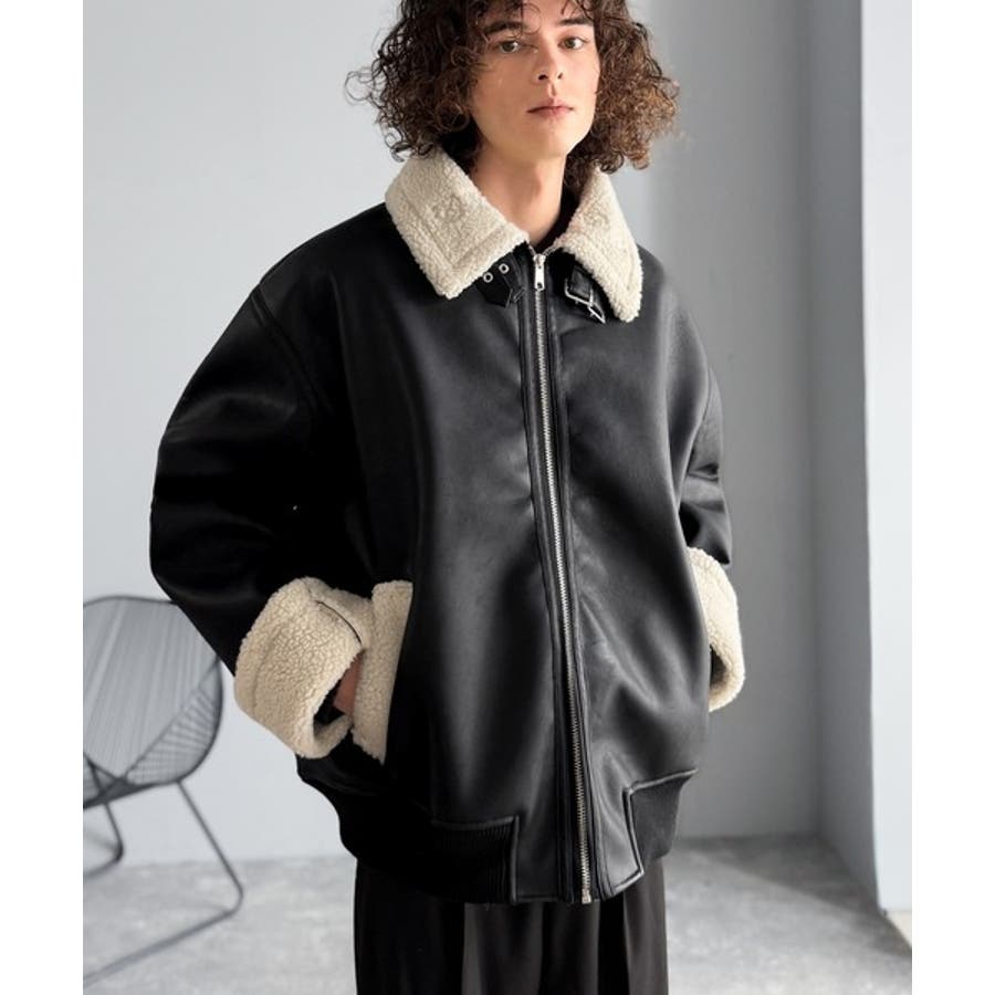 「 2way Boa Collar Faux Leather Jacket/2way襟ボア切り替えフェイクレザージャケット 」