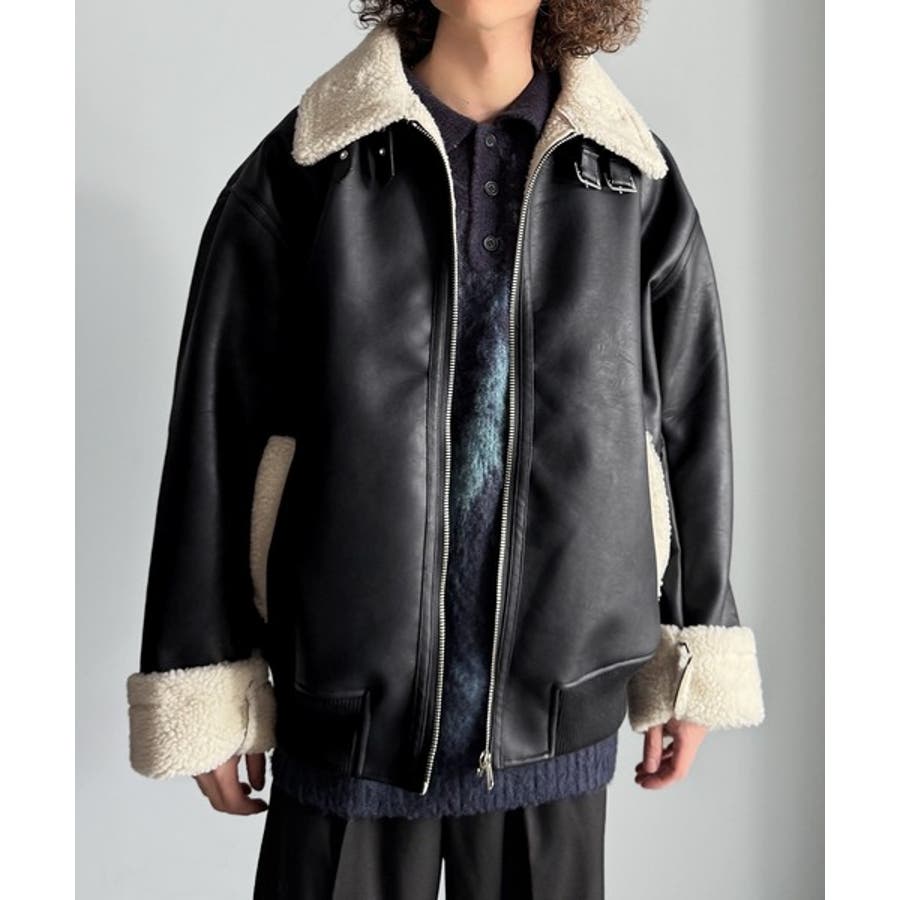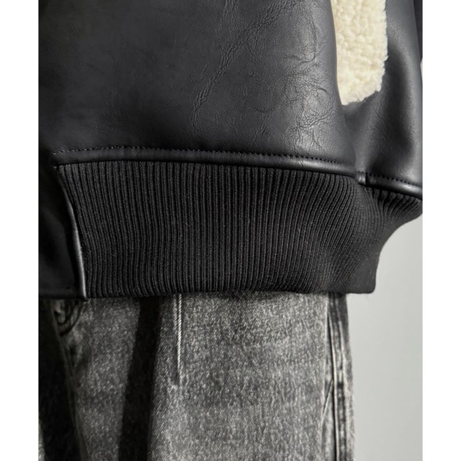 2way襟ボア切り替えフェイクレザージャケット 」