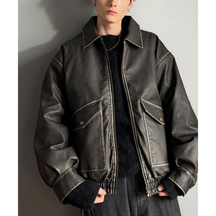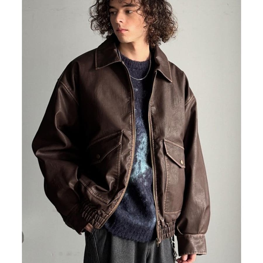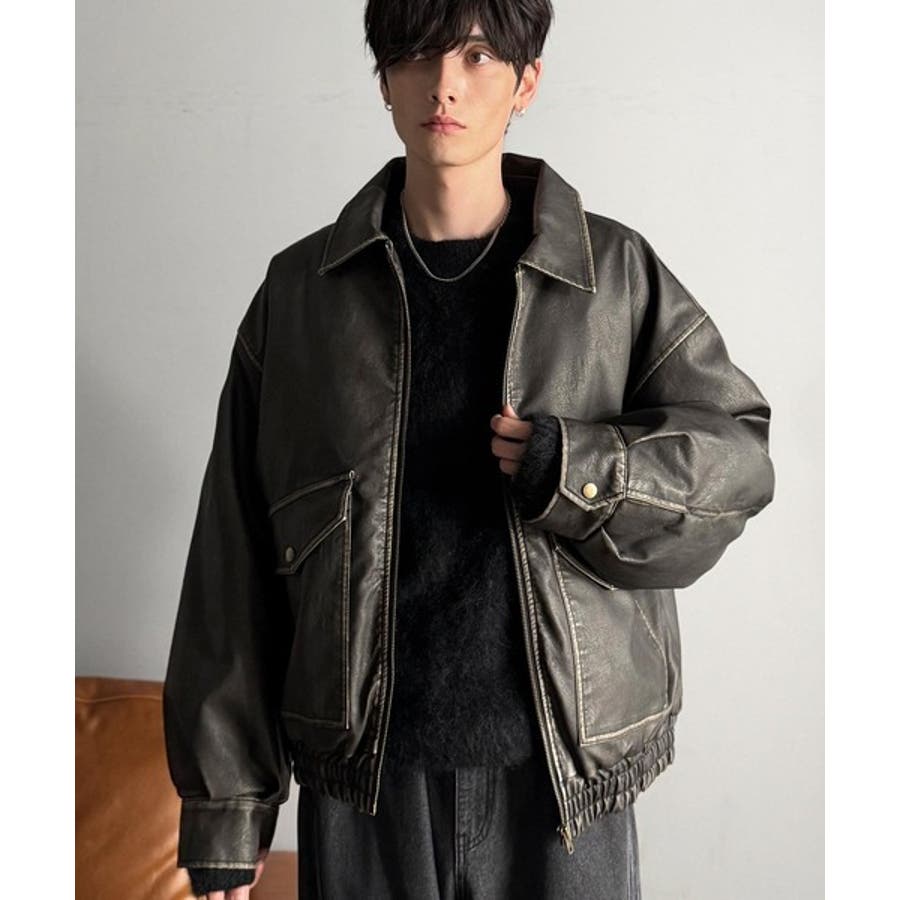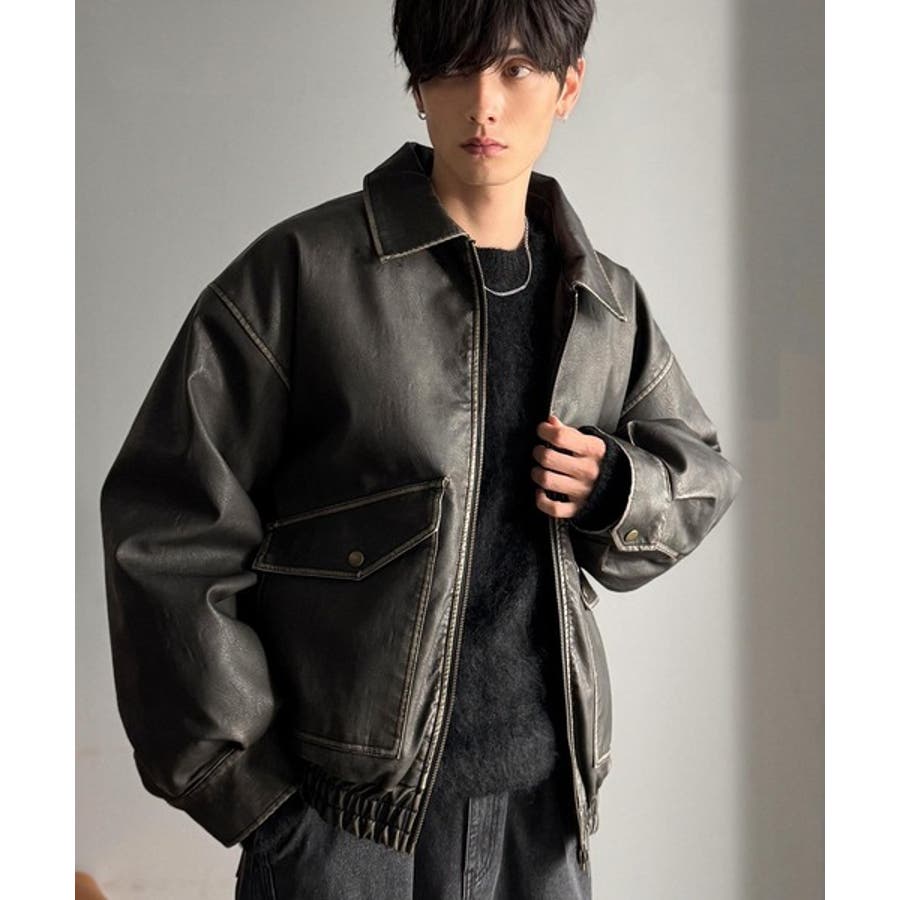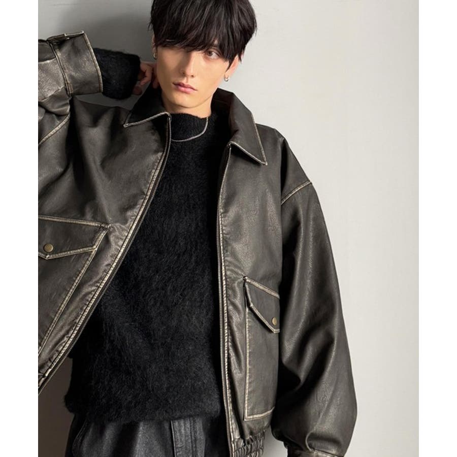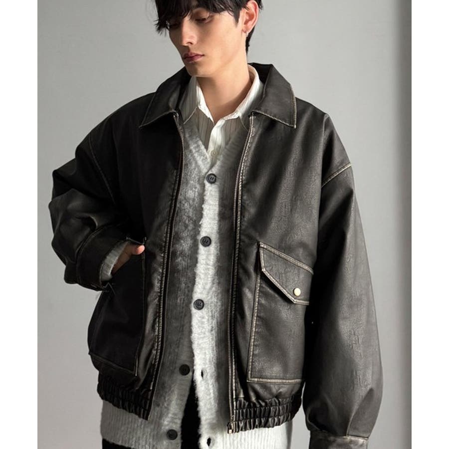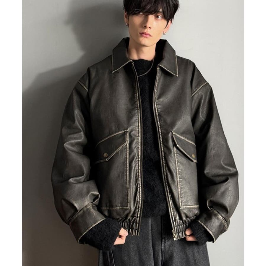 全体に施されたリアルなダメージ加工が魅力のフェイクレザーアウター。