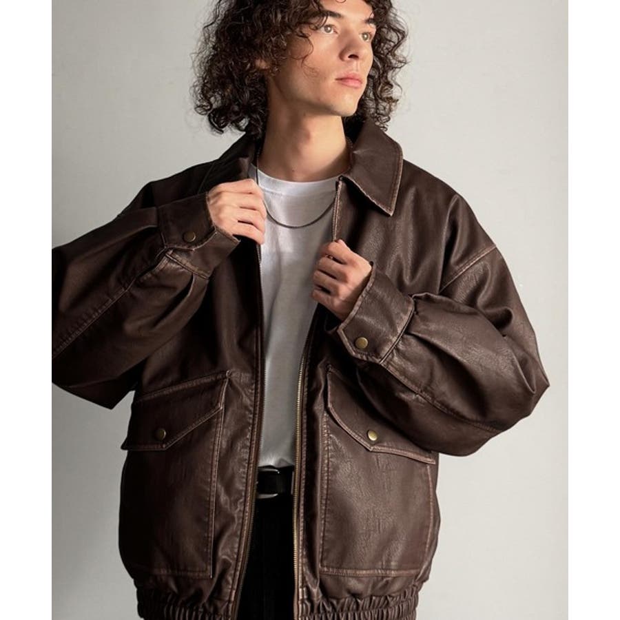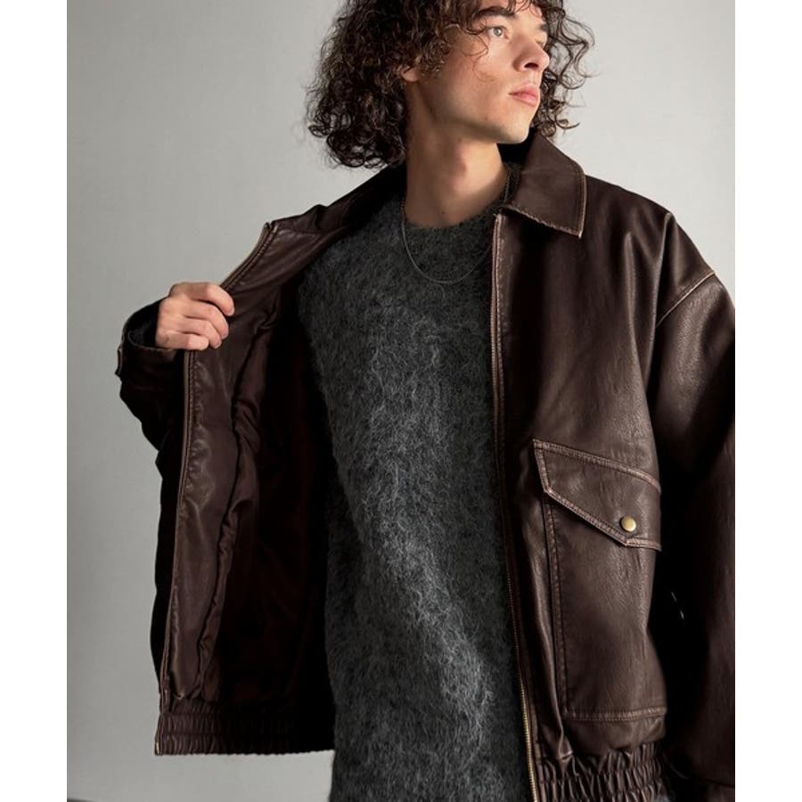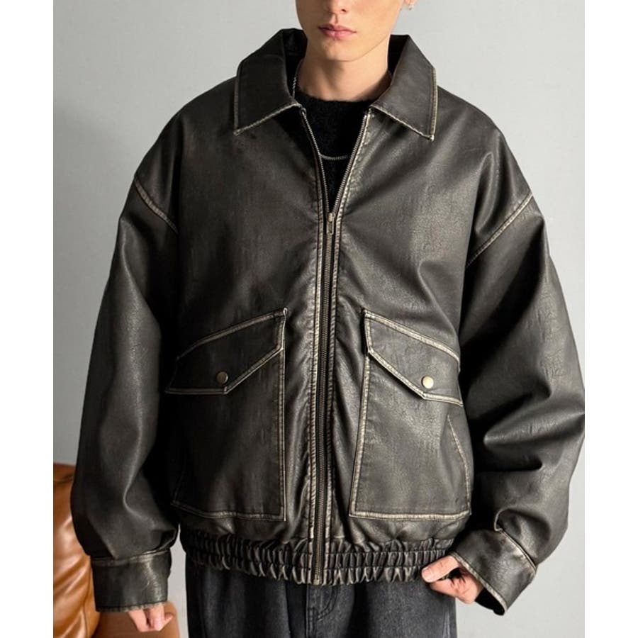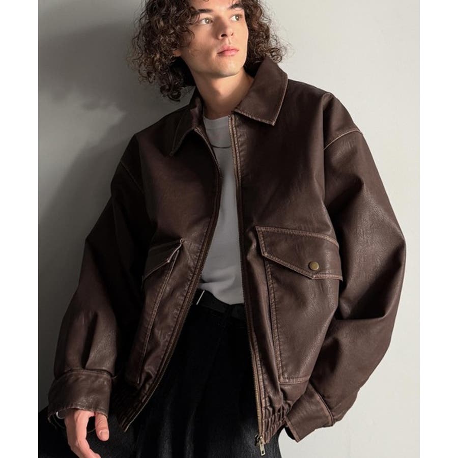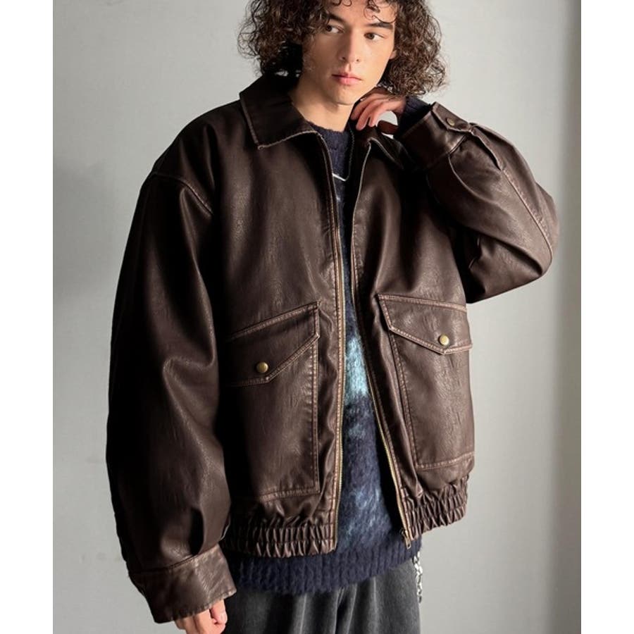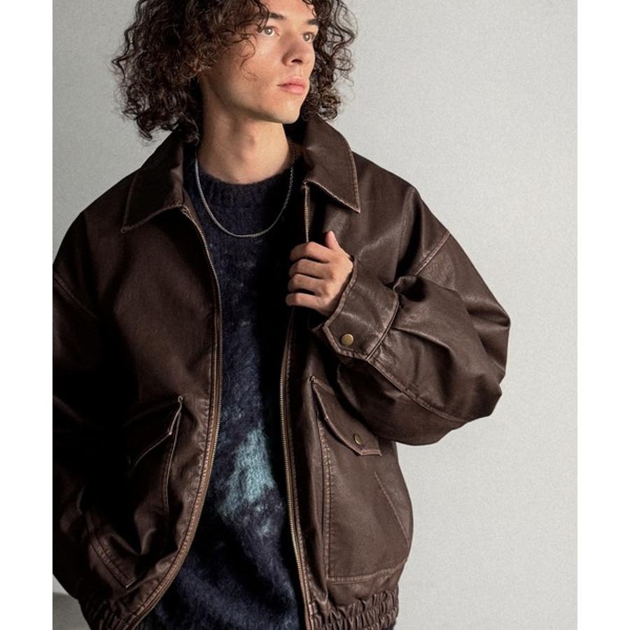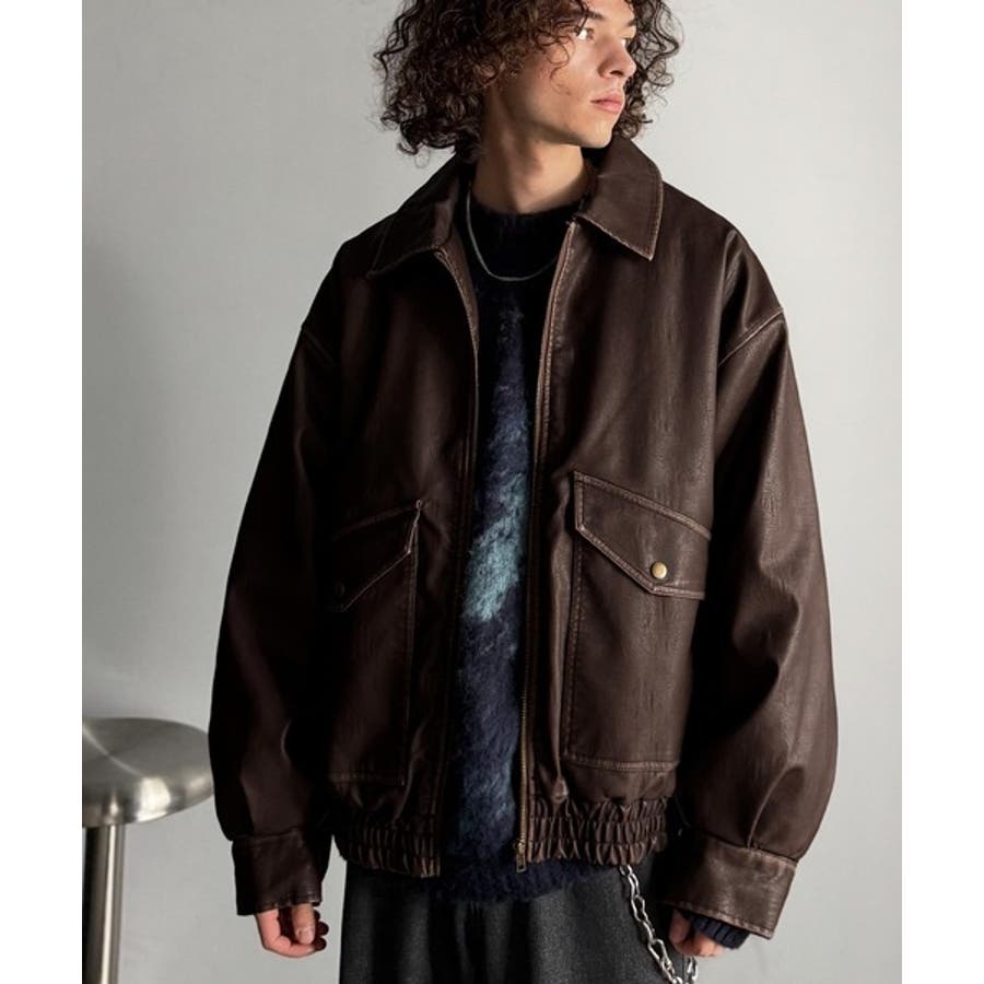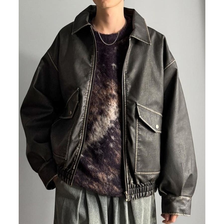 全体に施されたリアルなダメージ加工が魅力のフェイクレザーアウター。