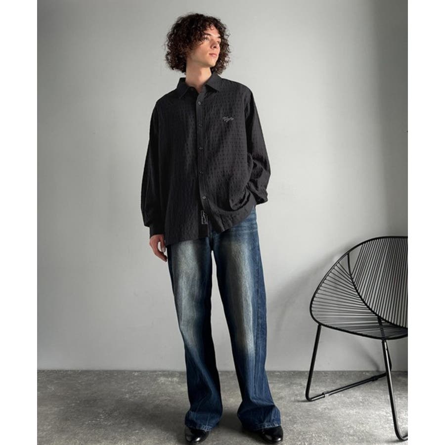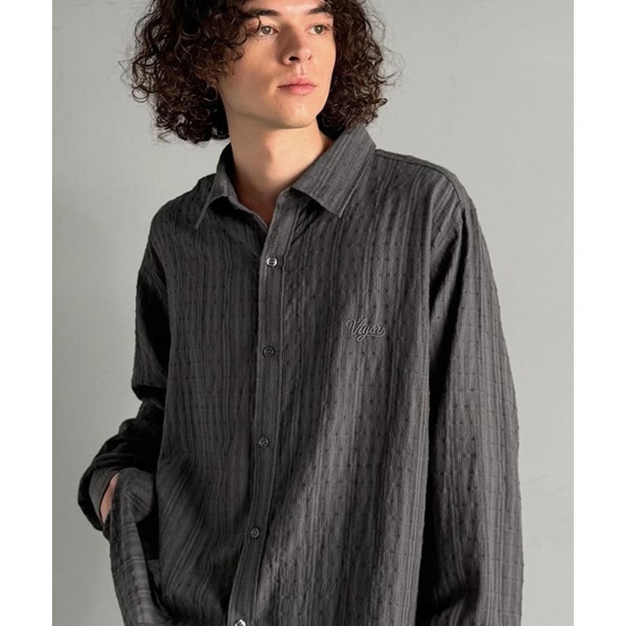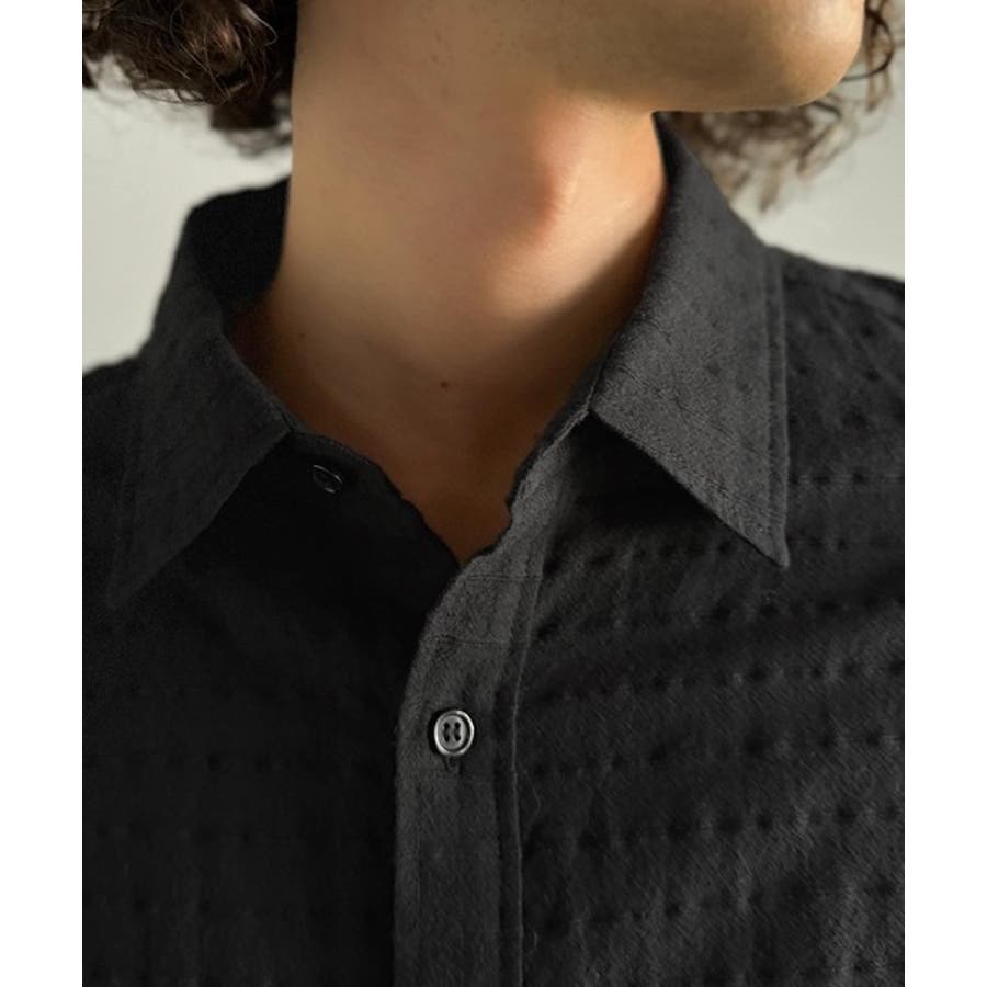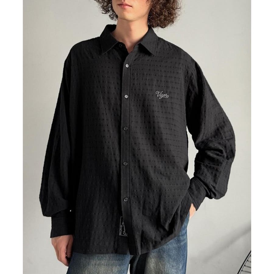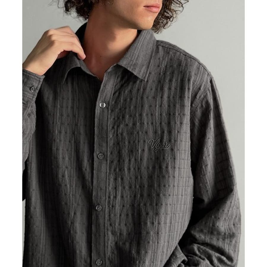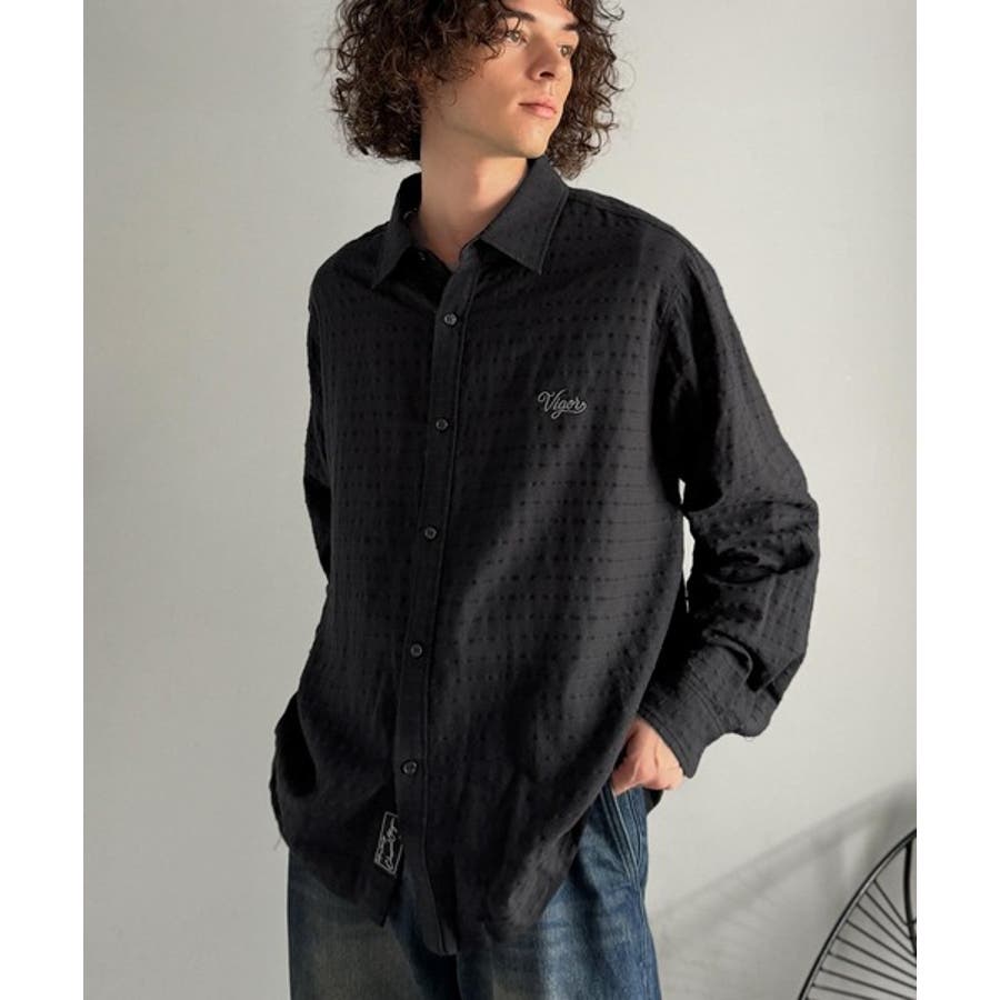 「凹凸感の存在感。」綿100%胸元刺繍入りドビー織シャツ Dobby Weave