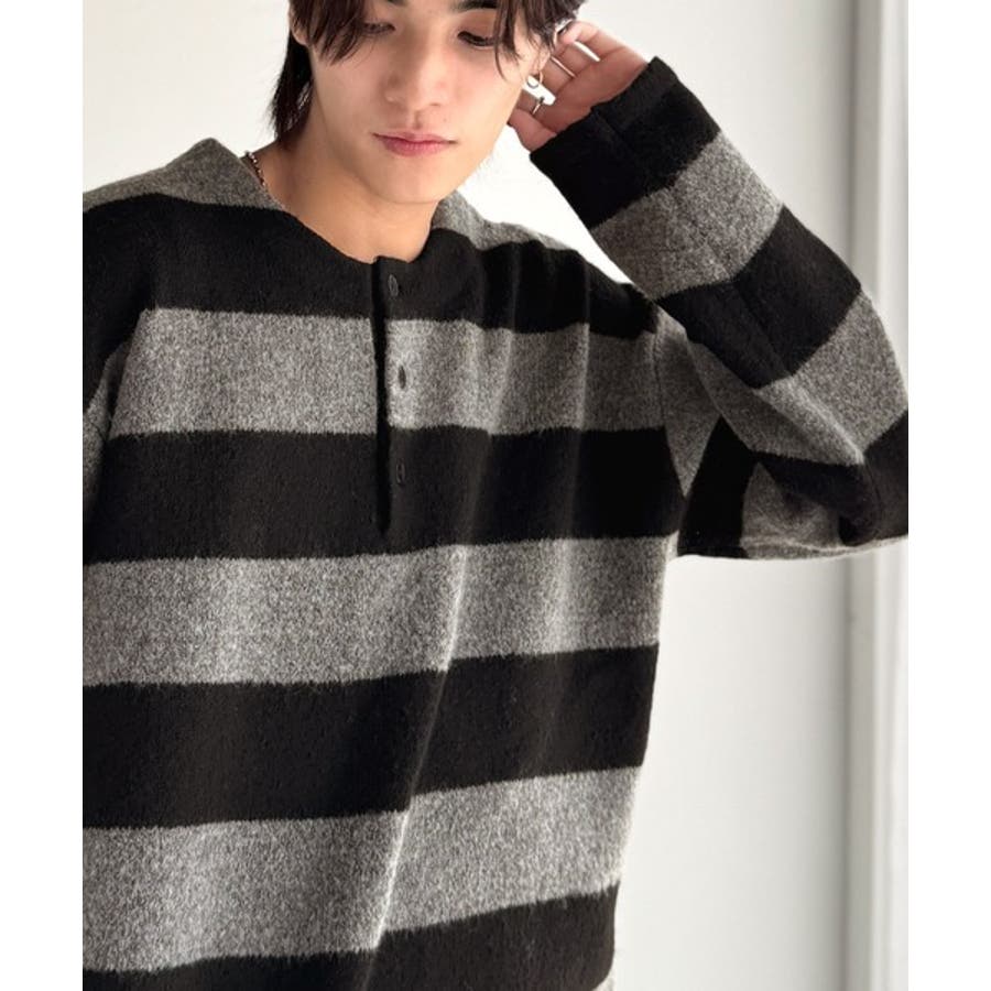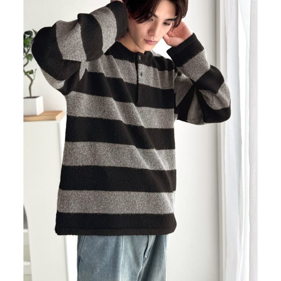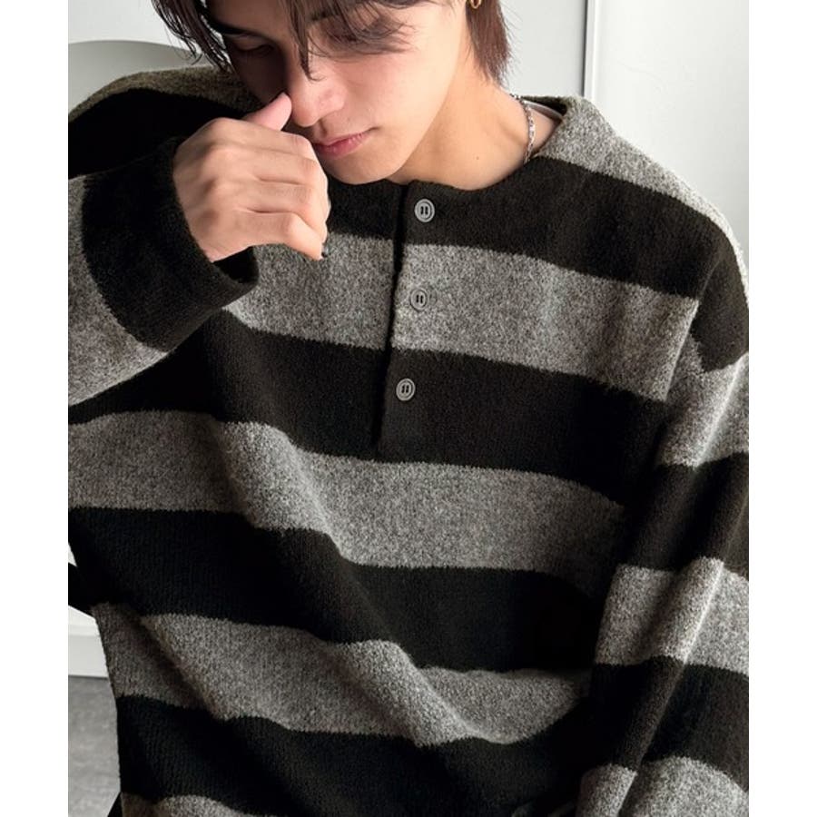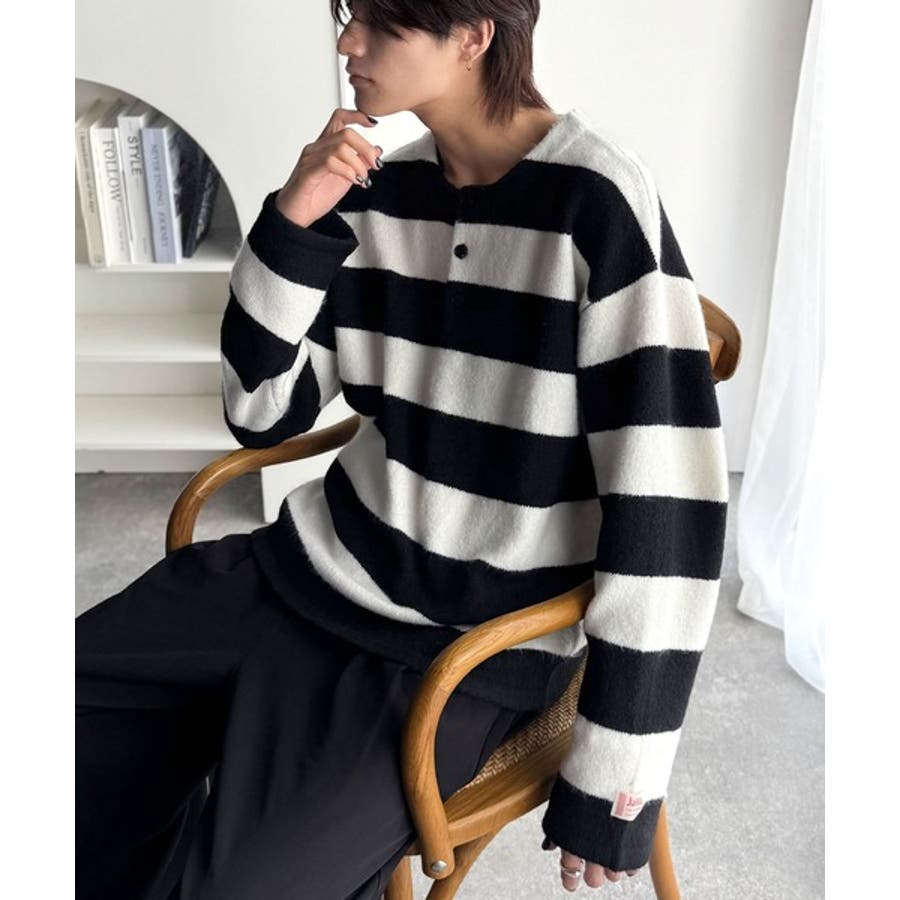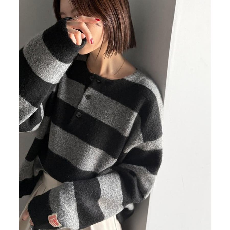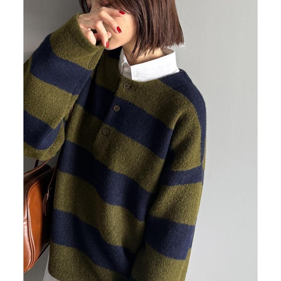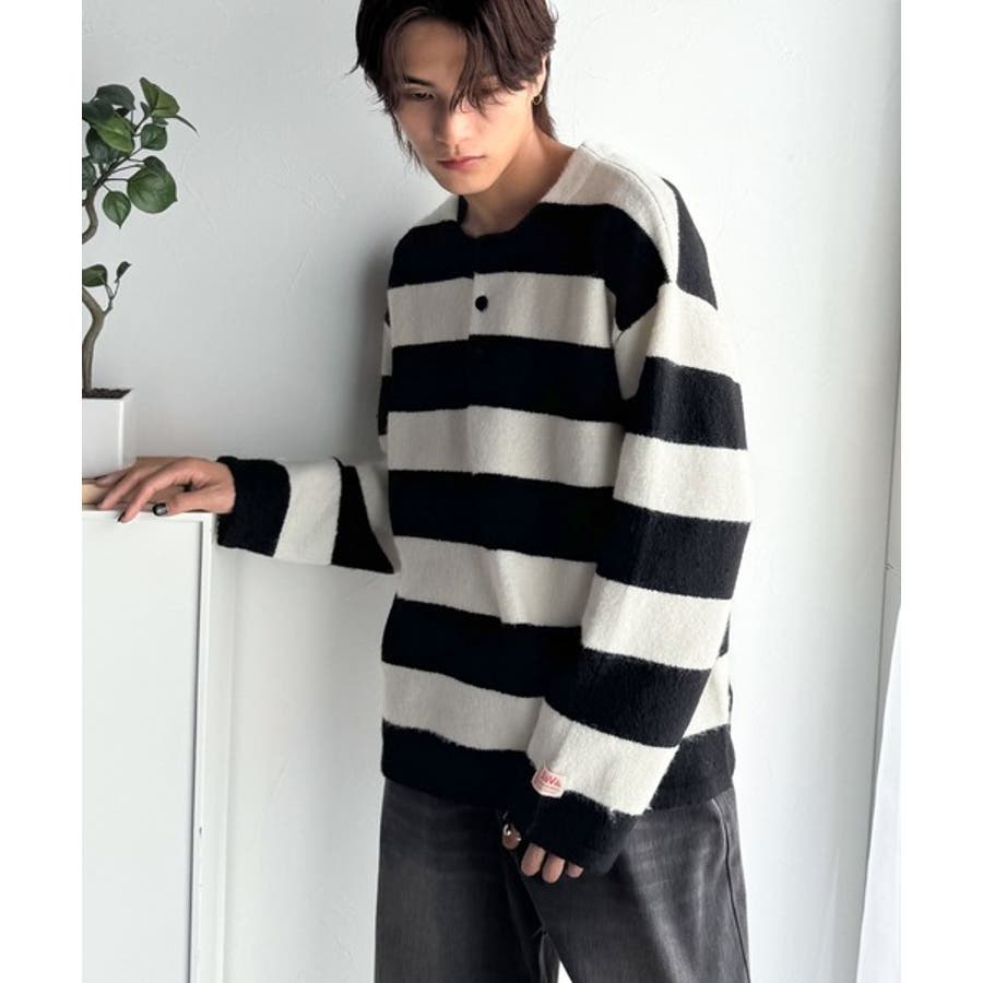 カジュアルな印象のラガーデザインを、もちっとしたニット素材でアレンジ。