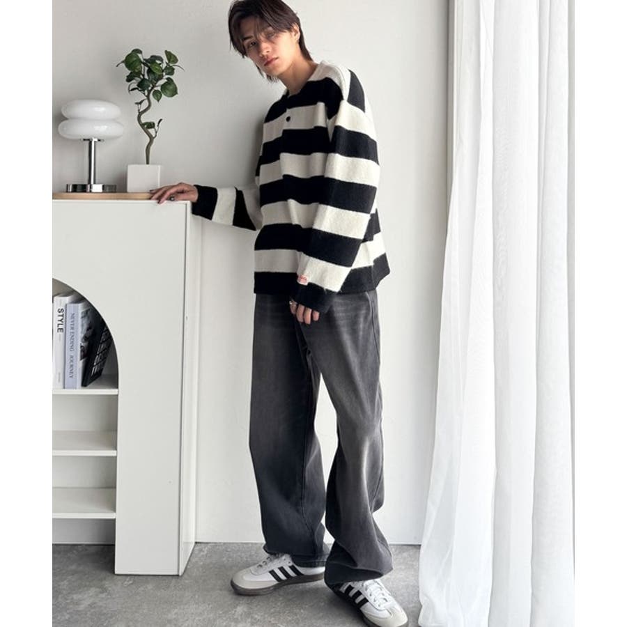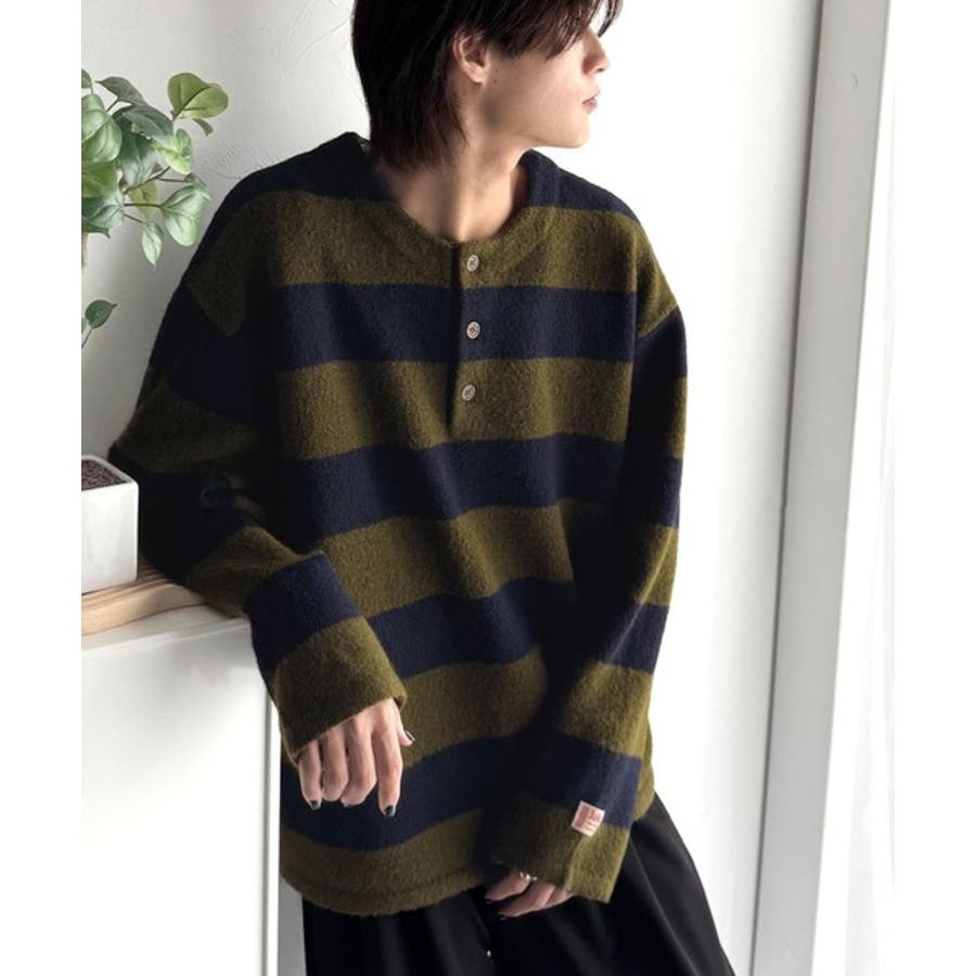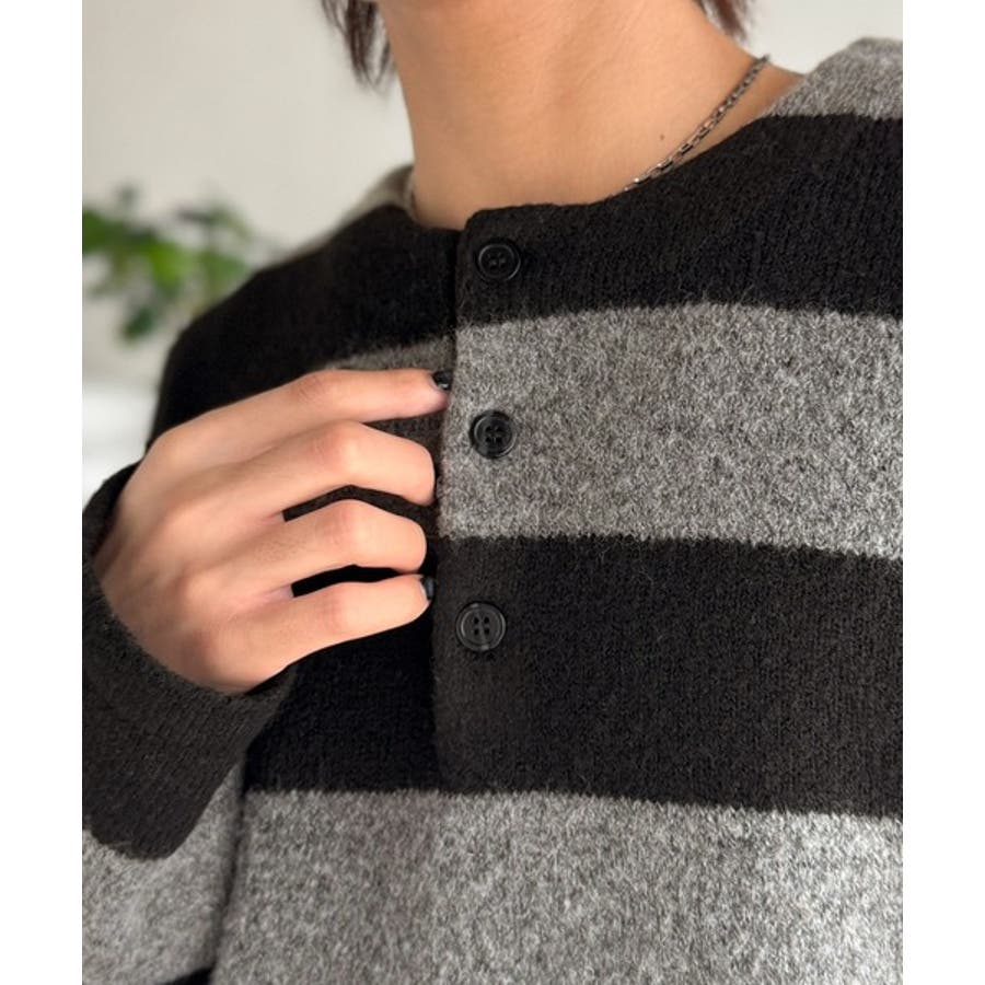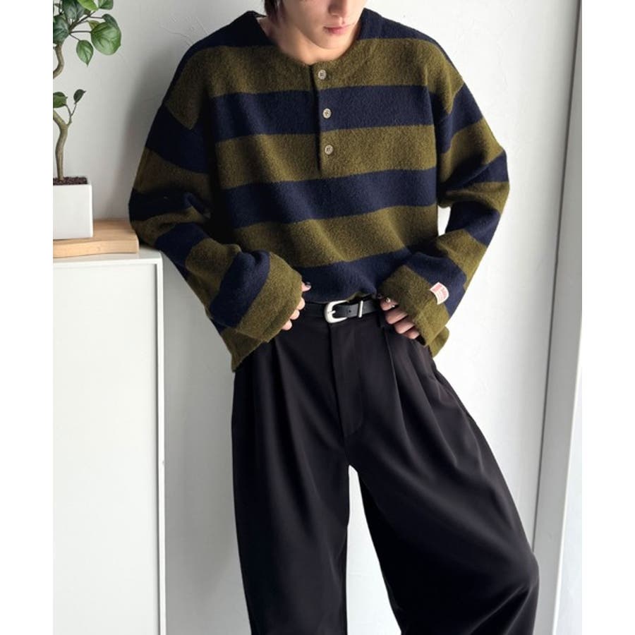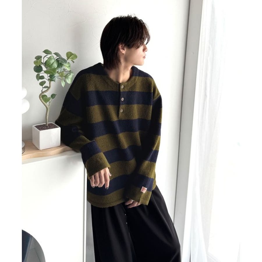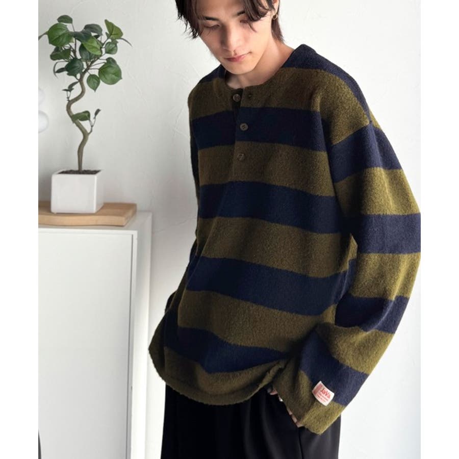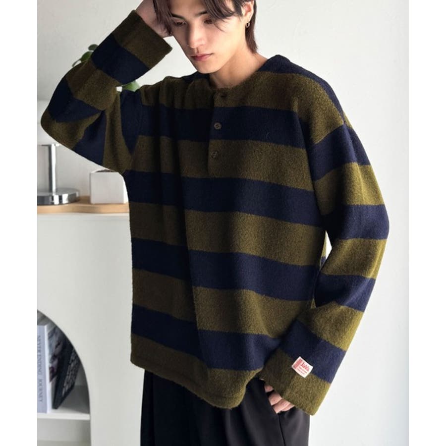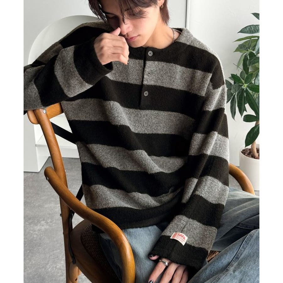 カジュアルな印象のラガーデザインを、もちっとしたニット素材でアレンジ。