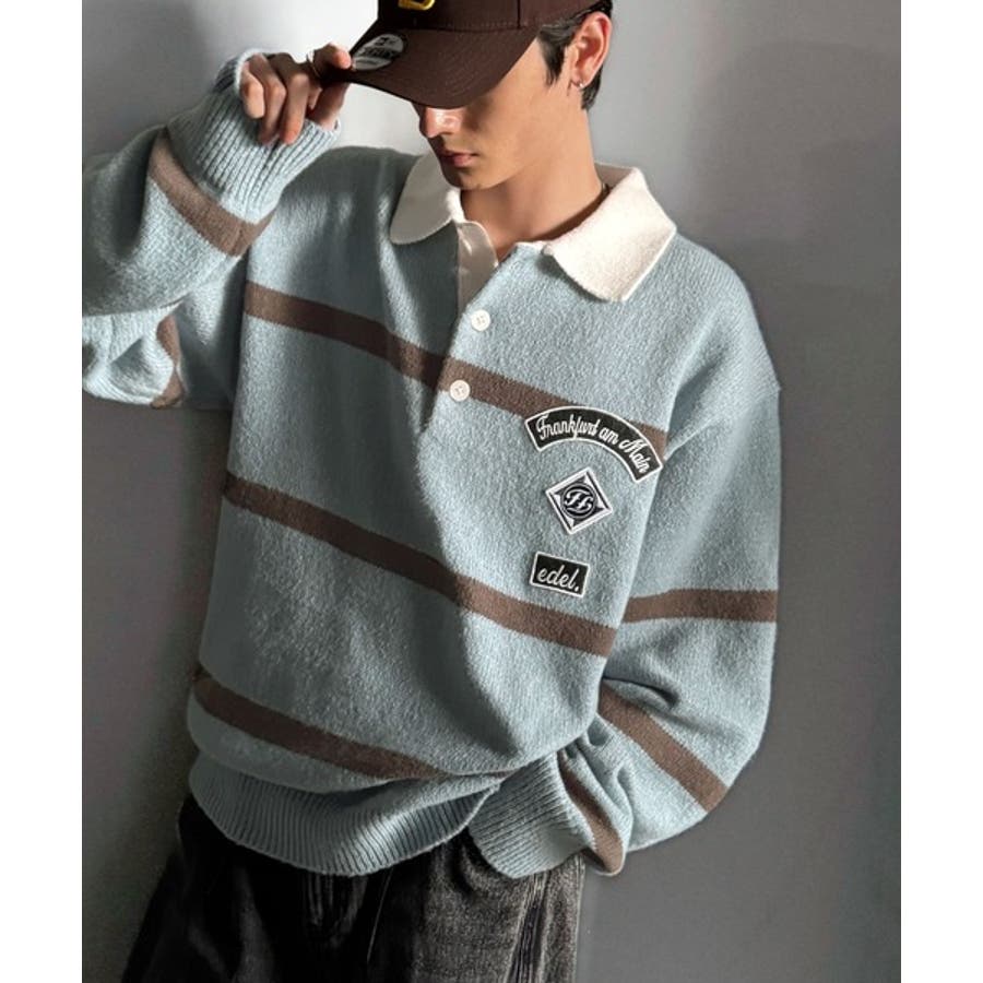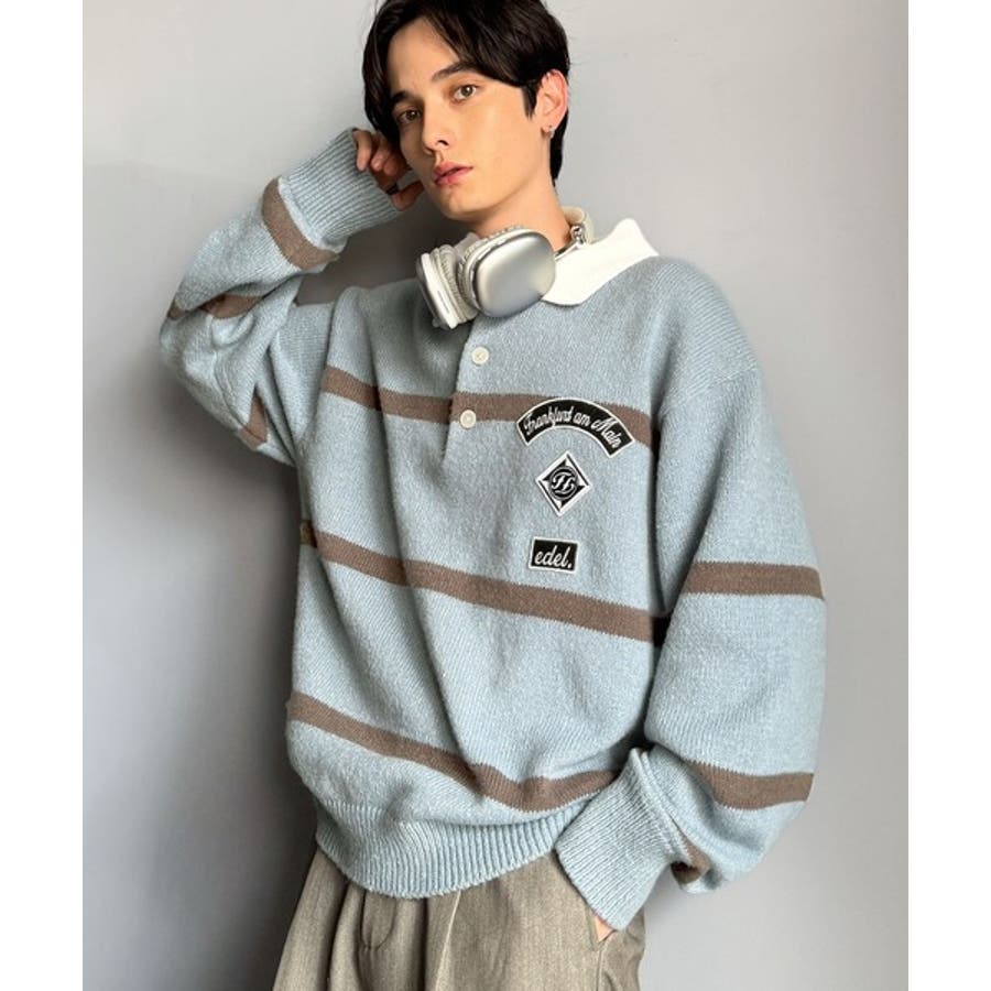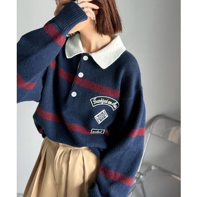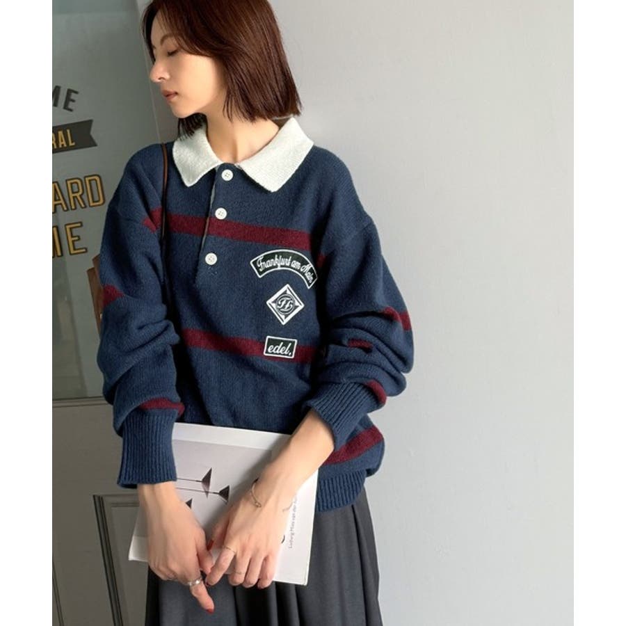 新しいスタイルを提案するワッペンデザインラガーポロニット。