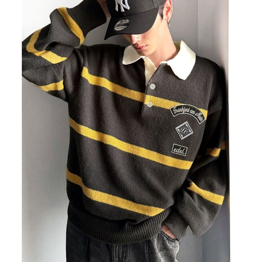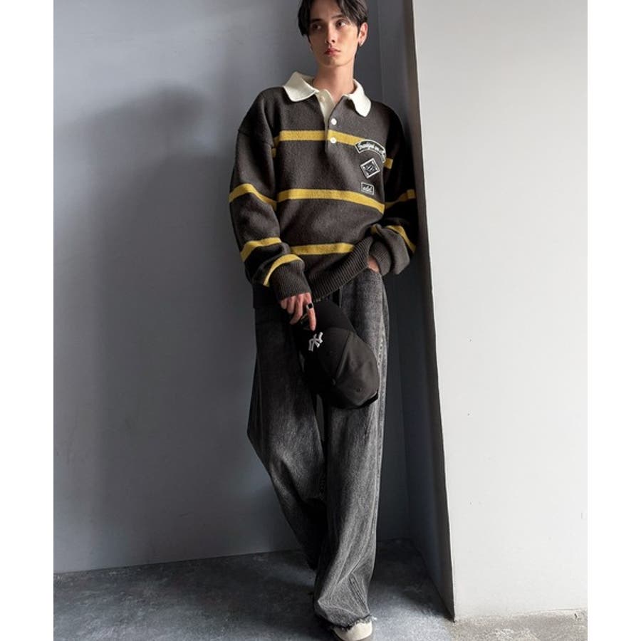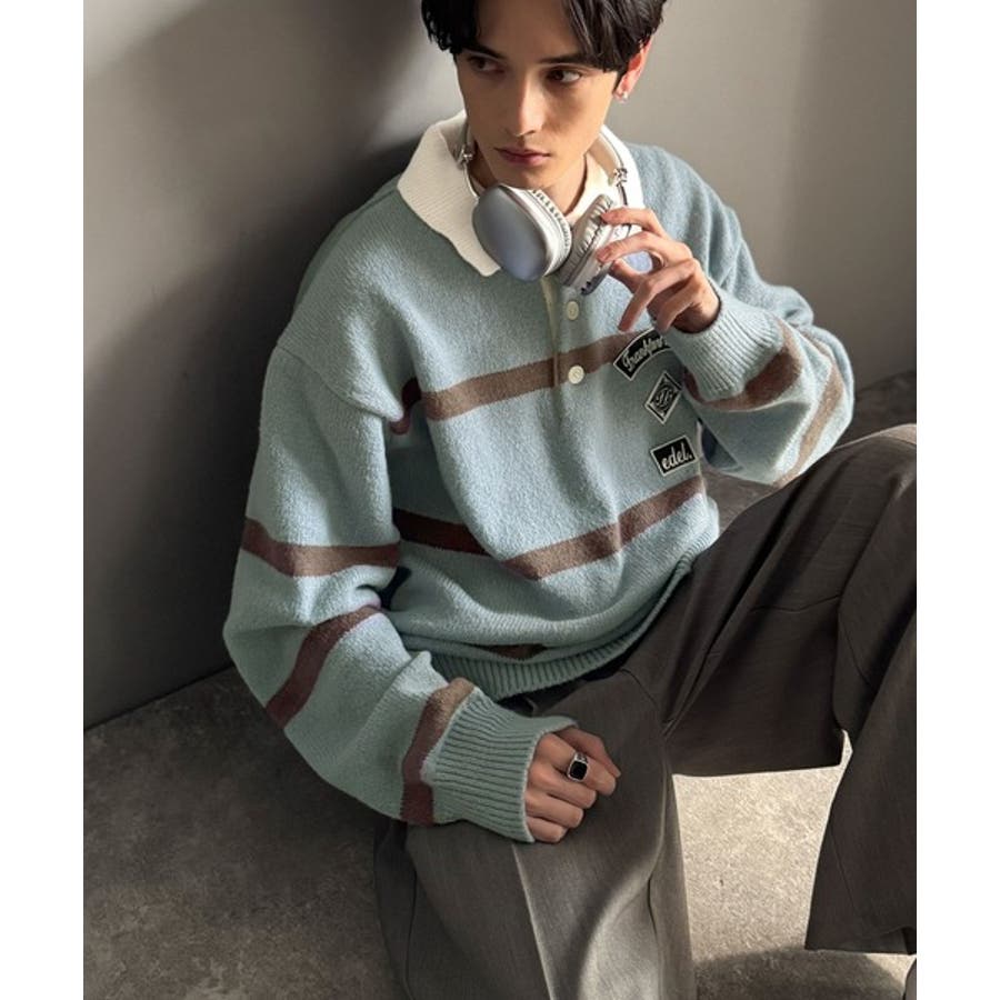 トレンド感満載のラガーポロニット。軽やかなニット素材で、着心地も抜群。