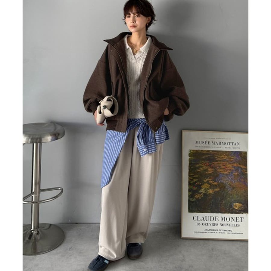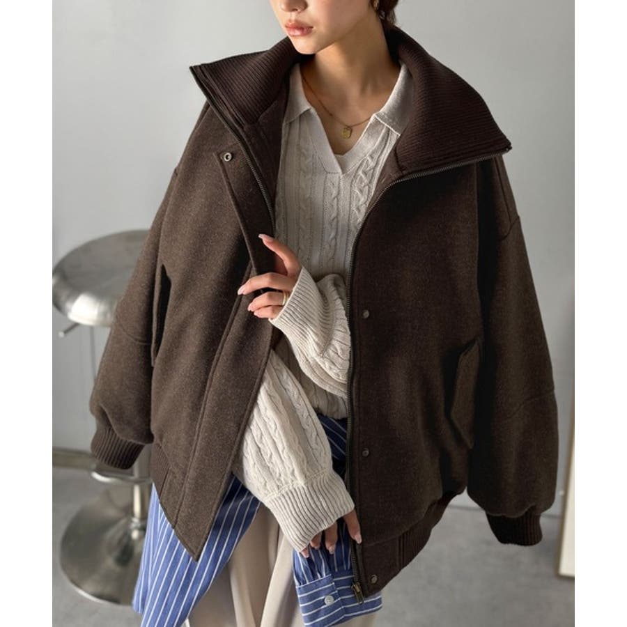 羽織るだけでこなれる。襟リブが効いた上品なメルトンブルゾン。