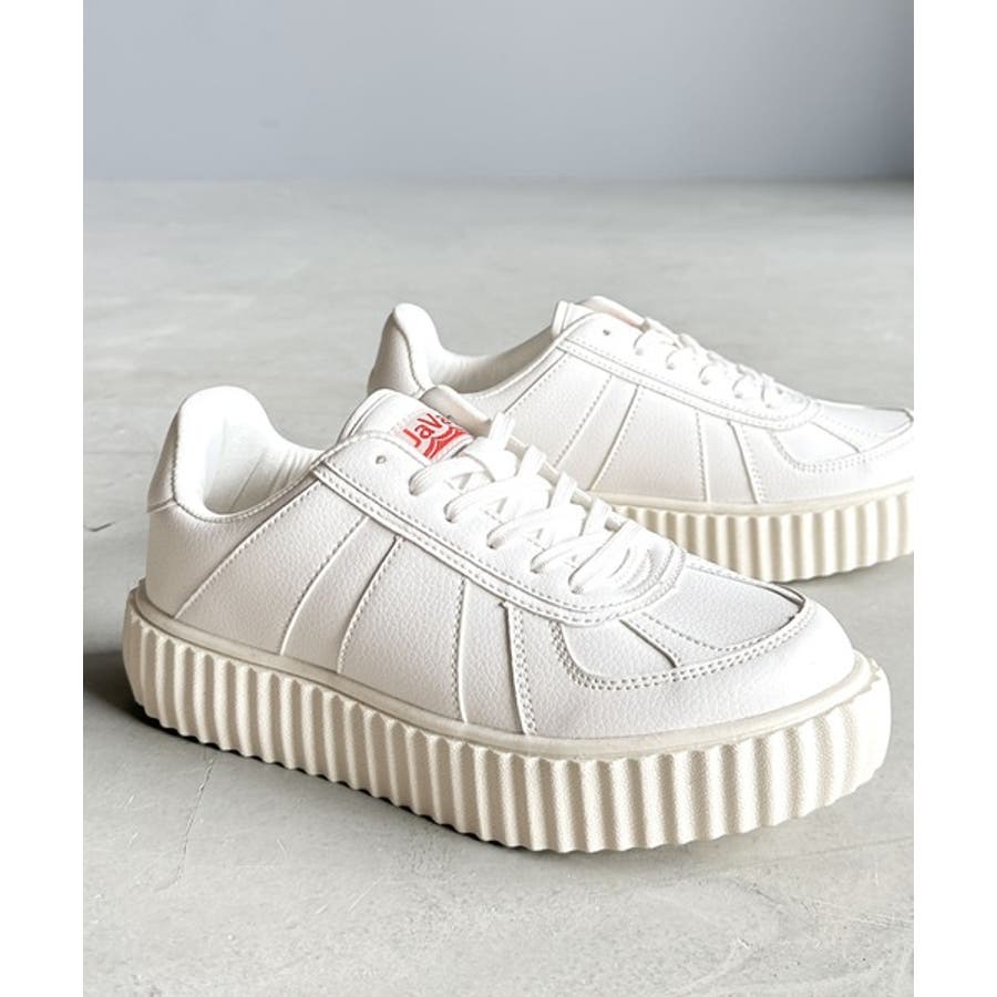 ジャーマントレーナーはぺったんこな薄底なのに対し、こちらは3.5㎝の厚底デザイン。