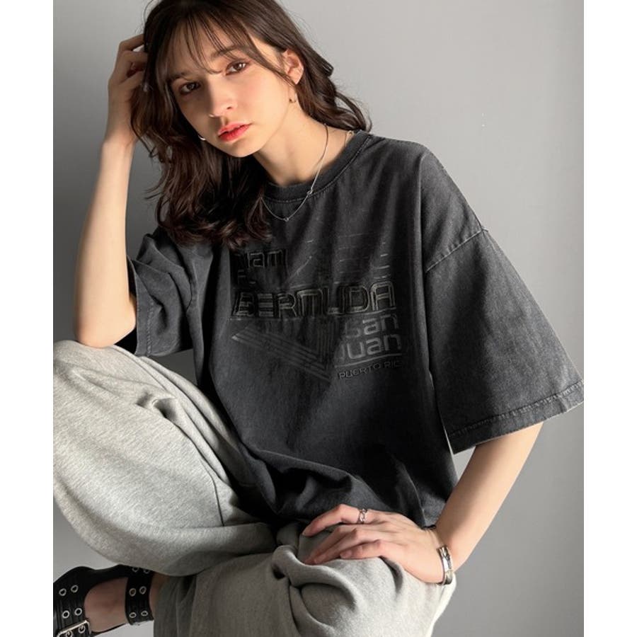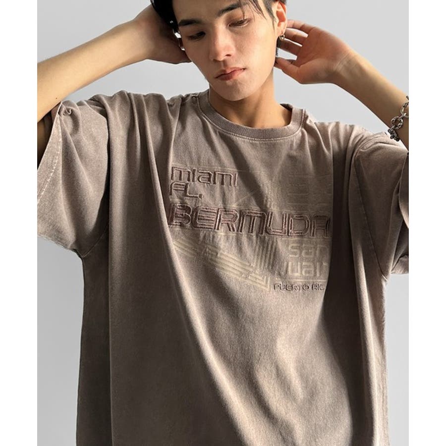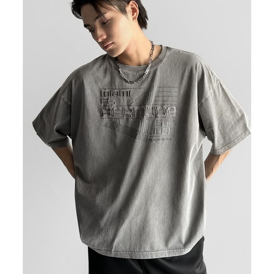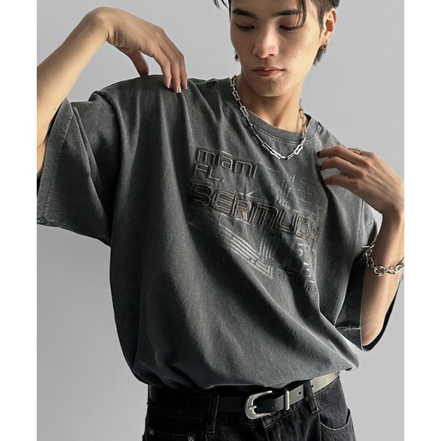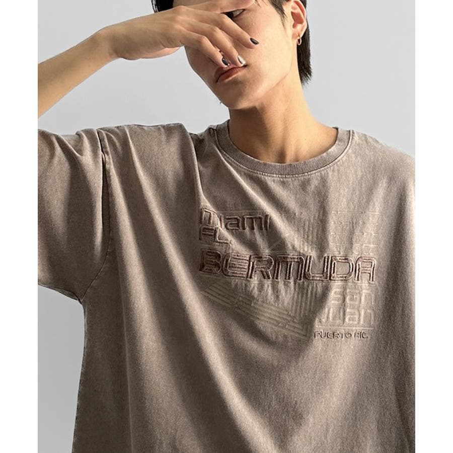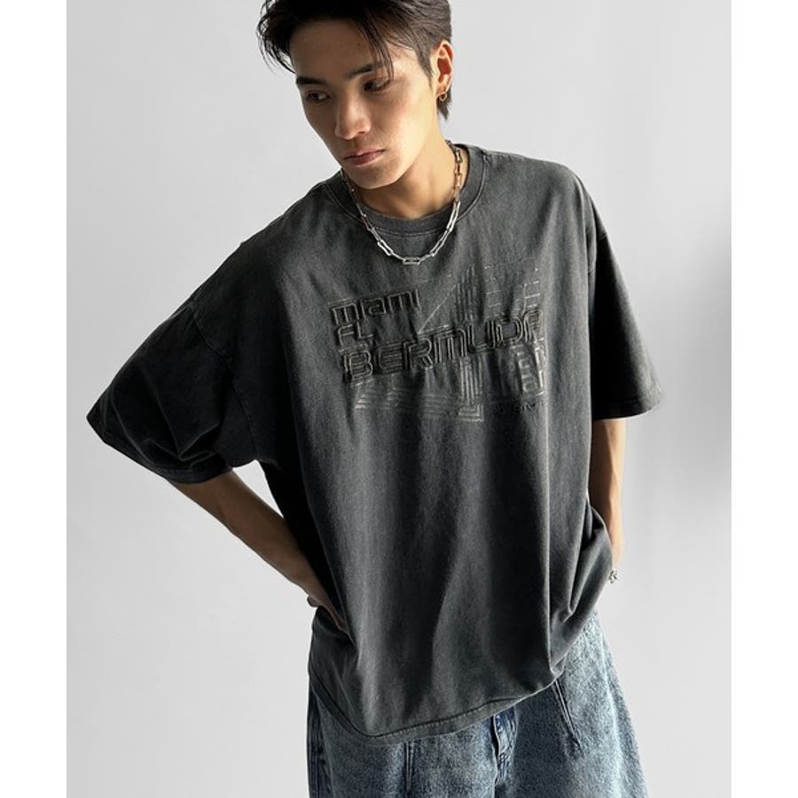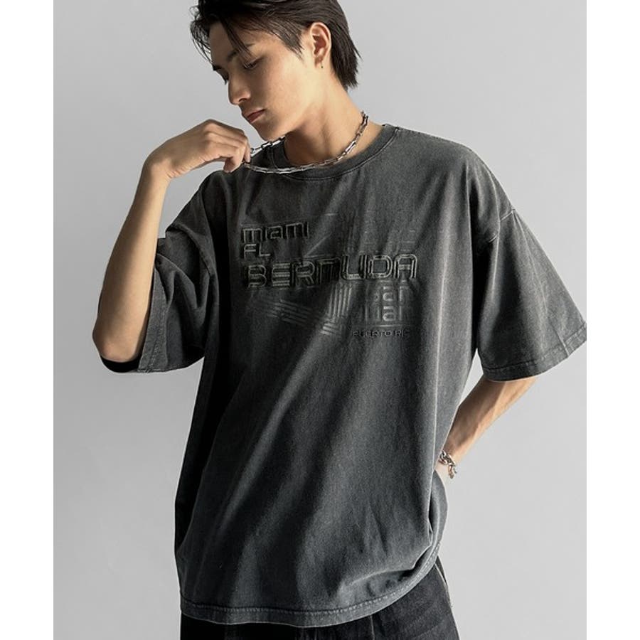 古着風の掠れロゴプリントと立体感のある刺繍を施し、