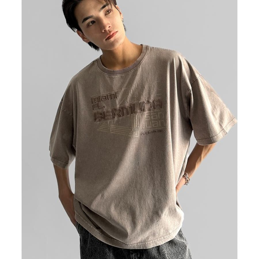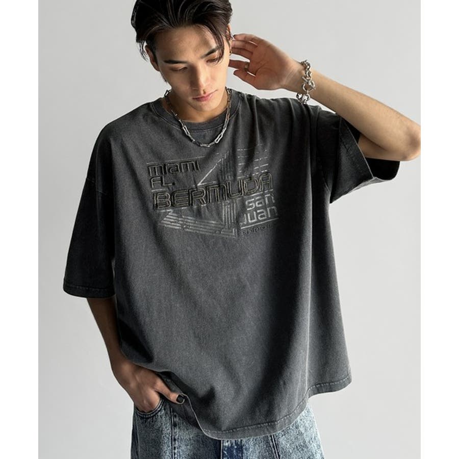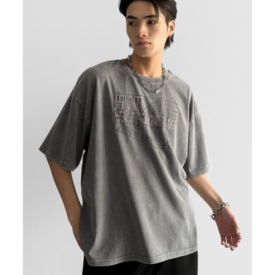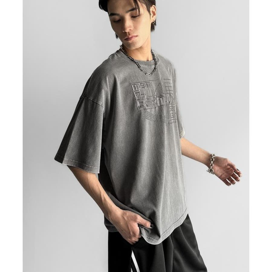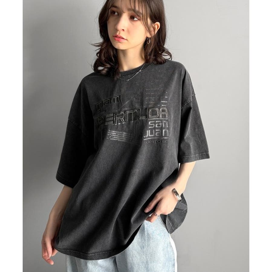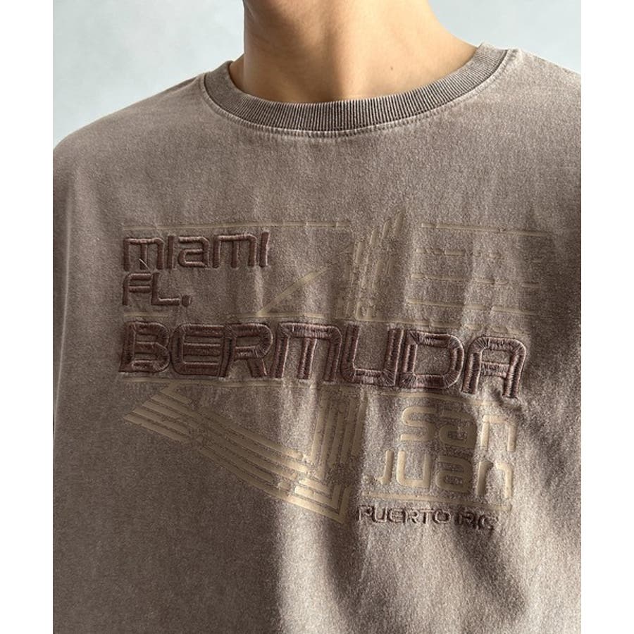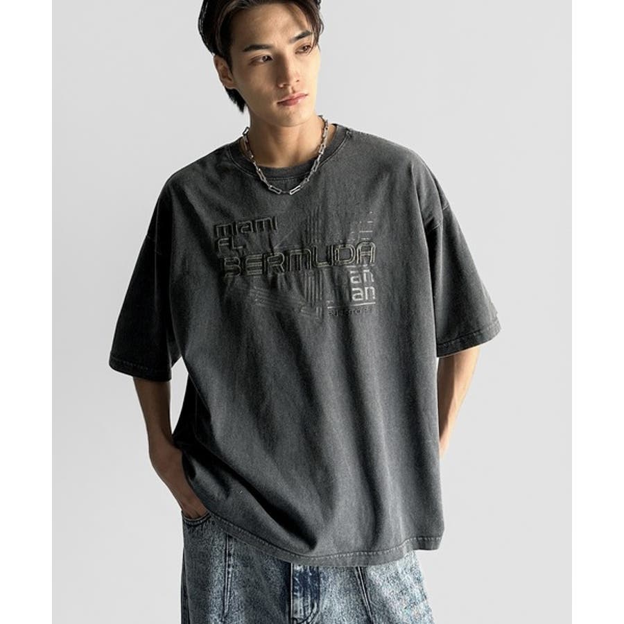 古着風の掠れロゴプリントと立体感のある刺繍を施し、