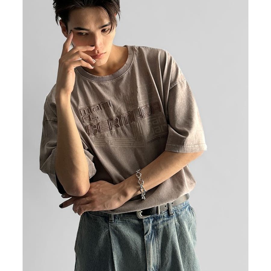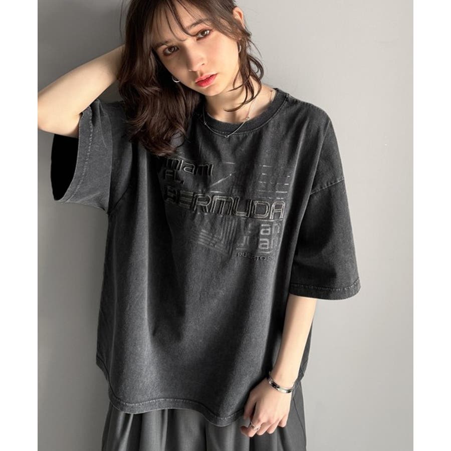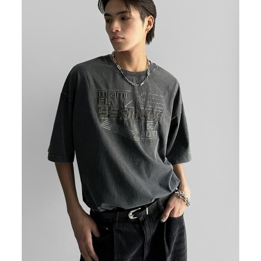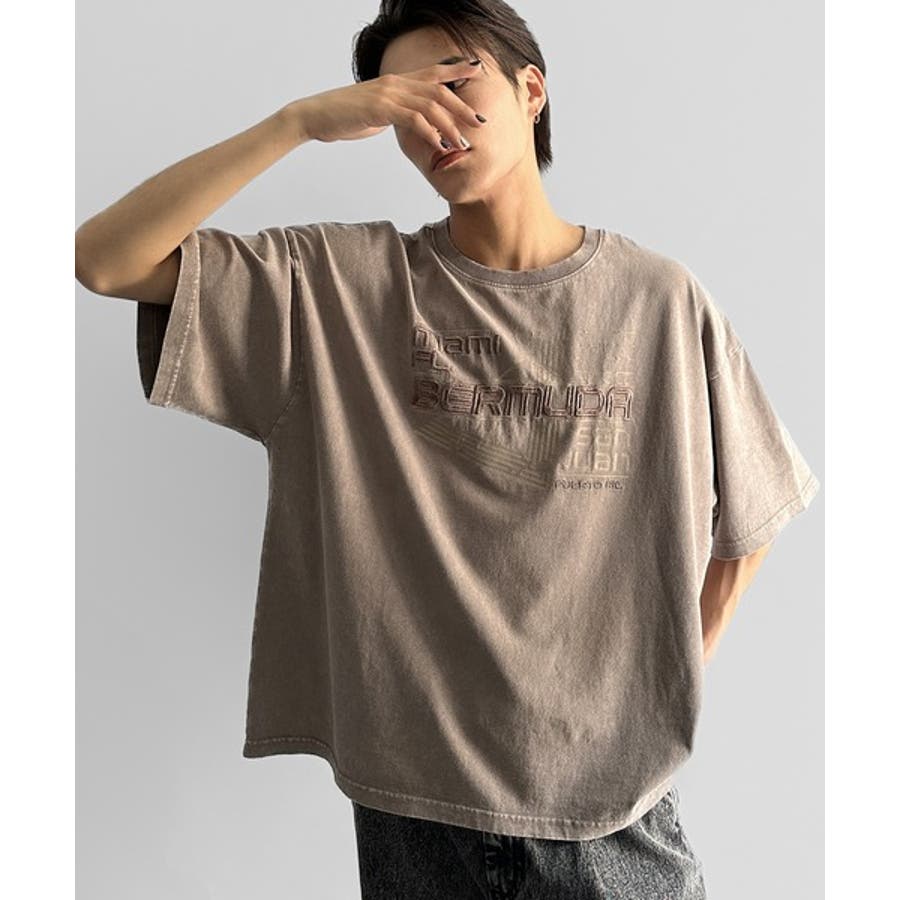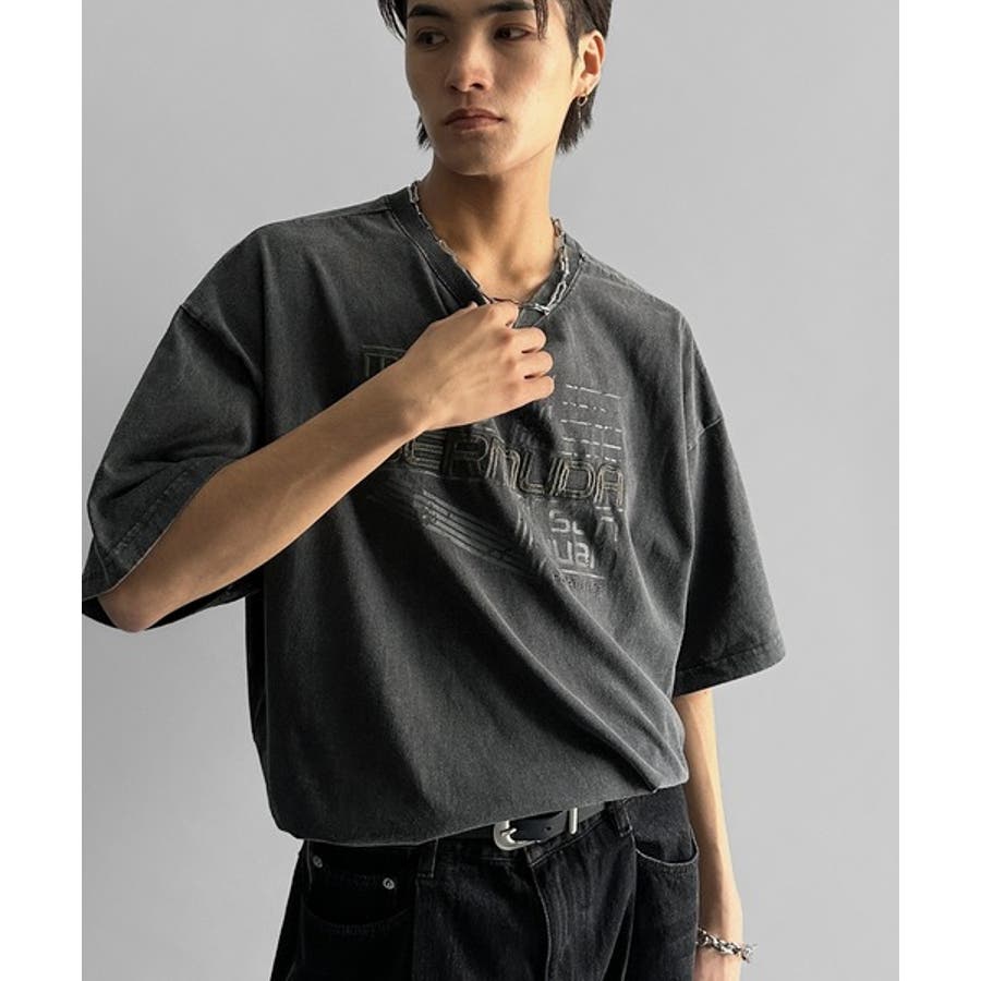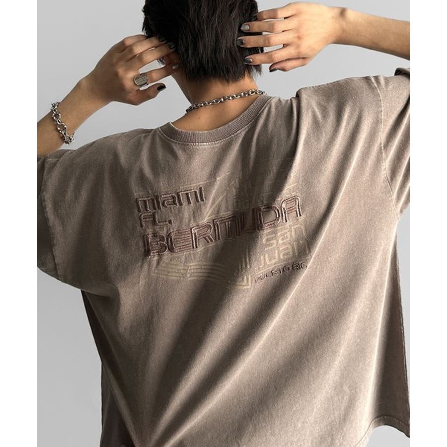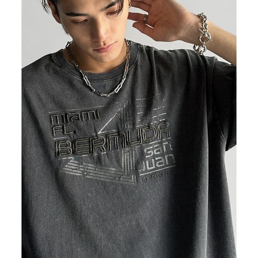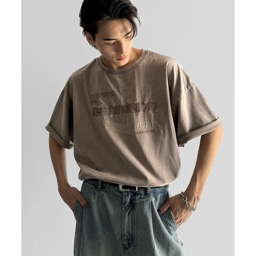 古着風の掠れロゴプリントと立体感のある刺繍を施し、