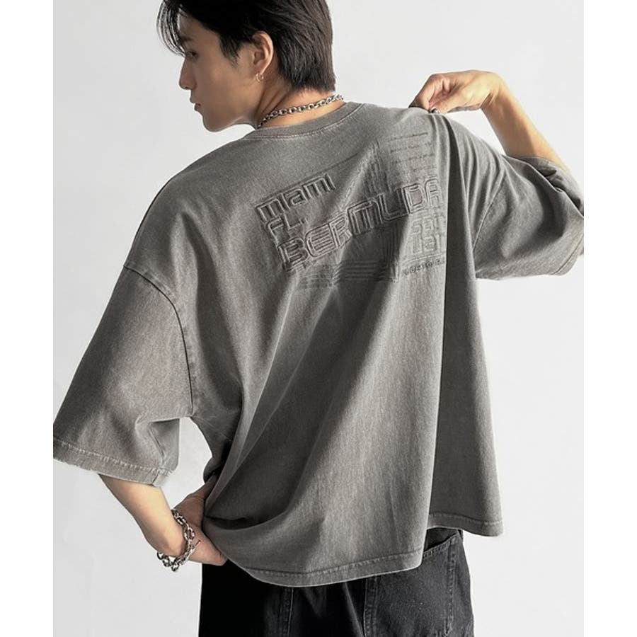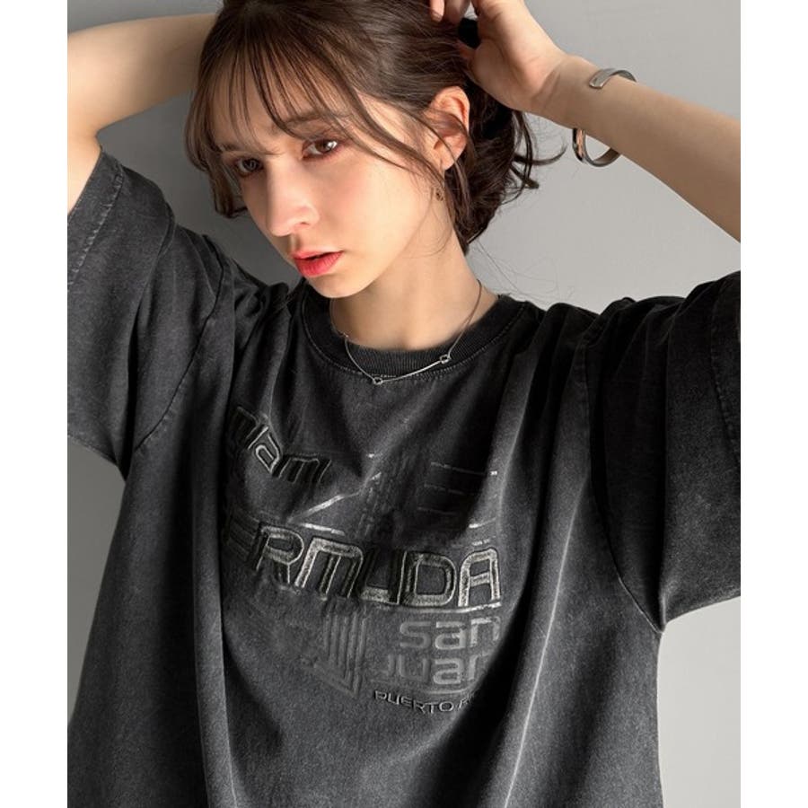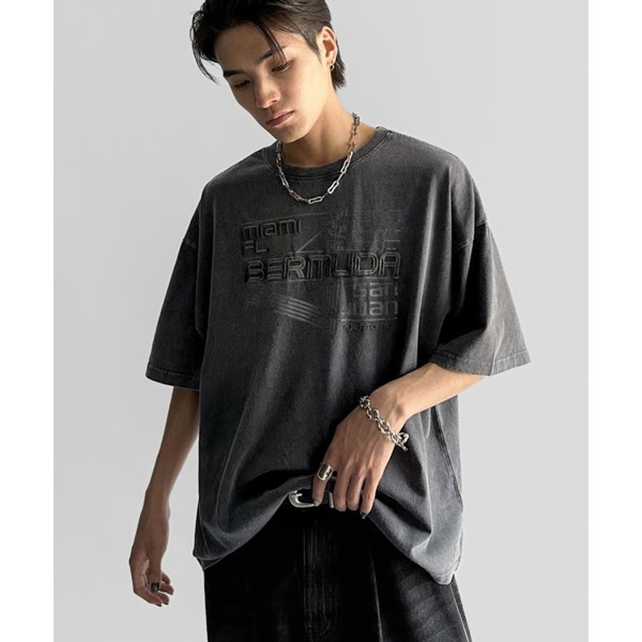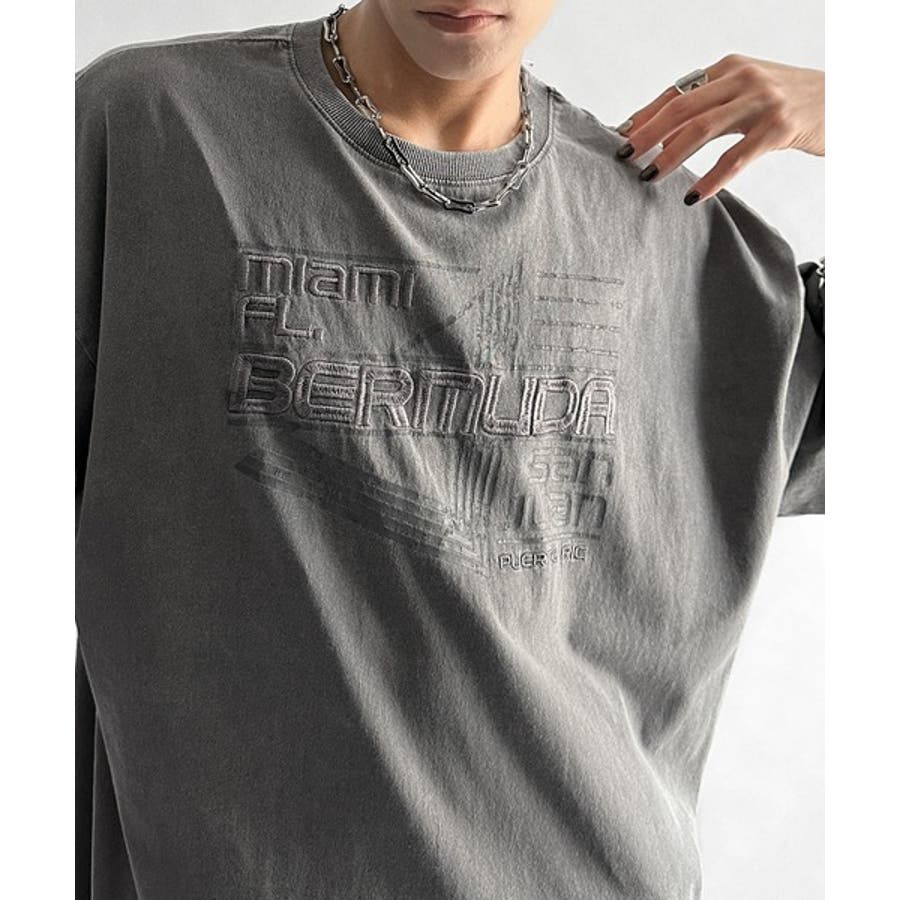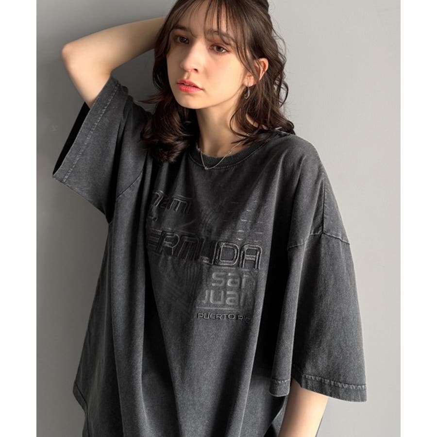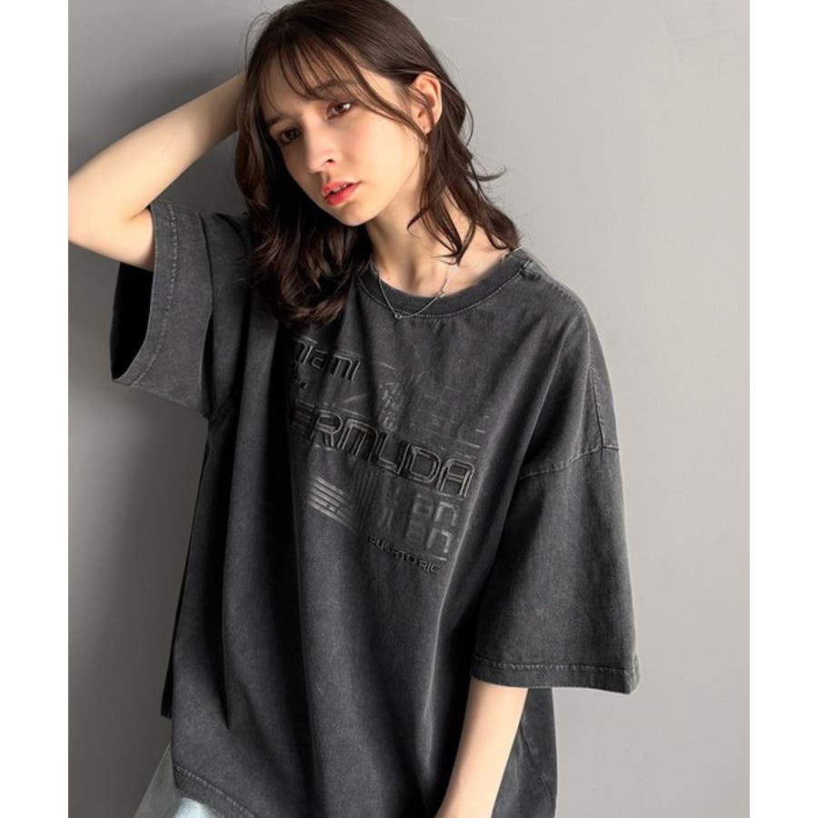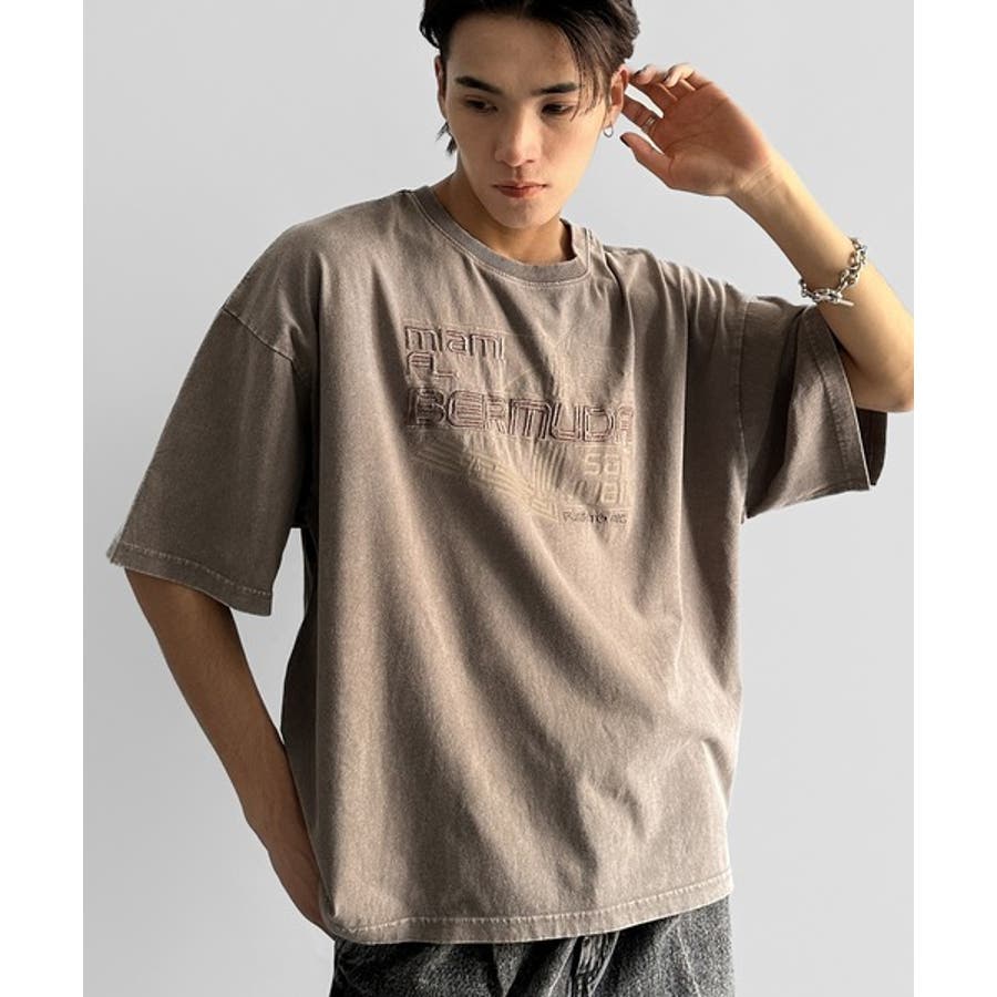 古着風の掠れロゴプリントと立体感のある刺繍を施し、