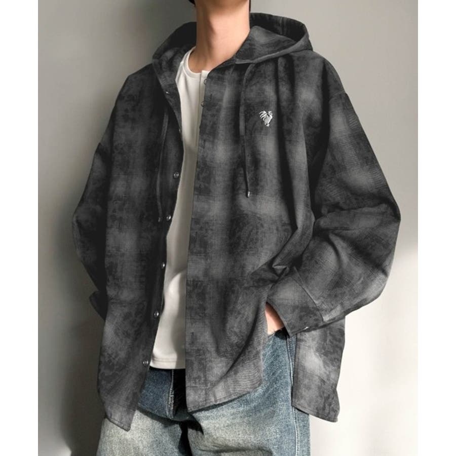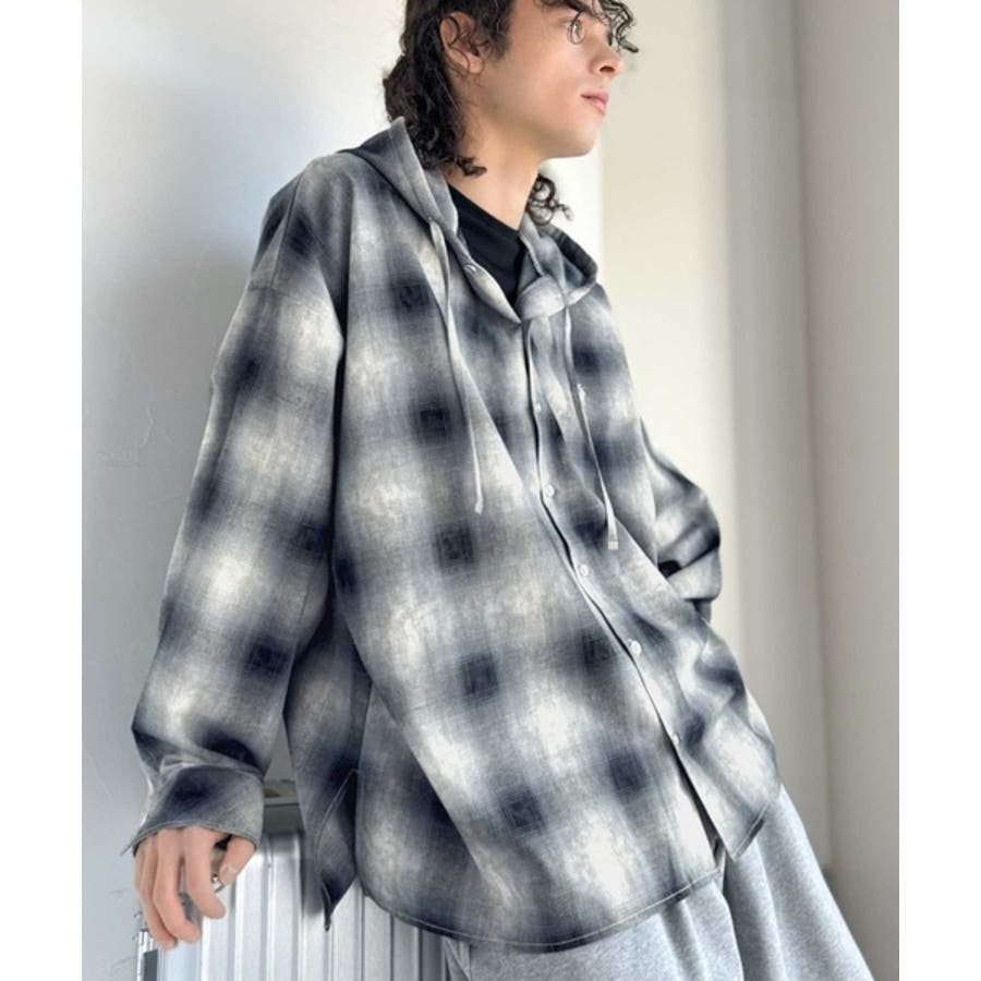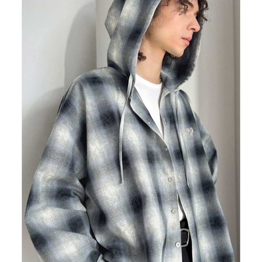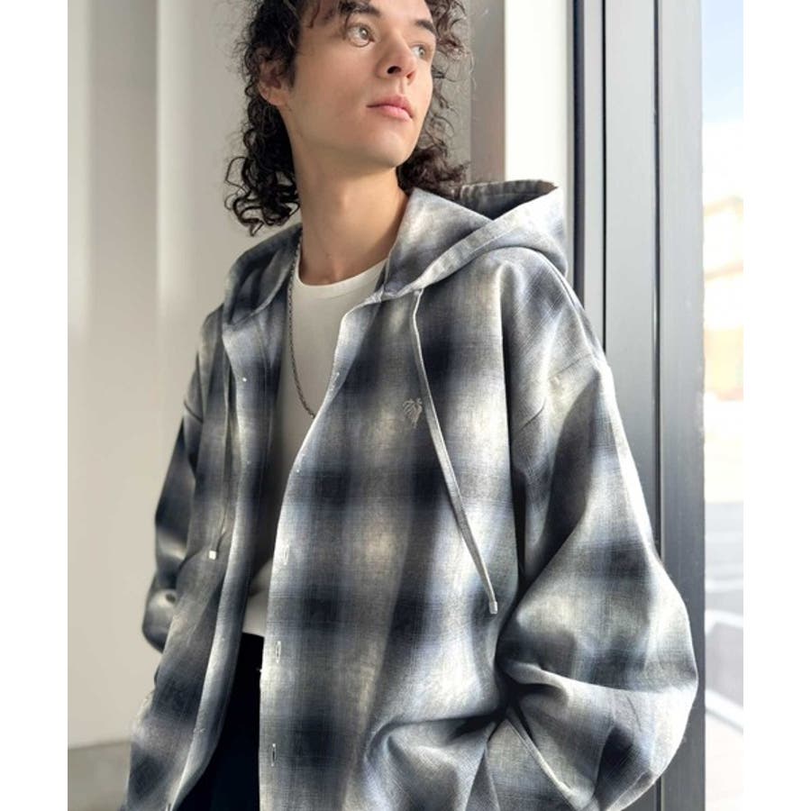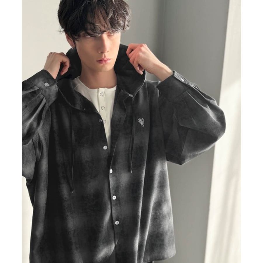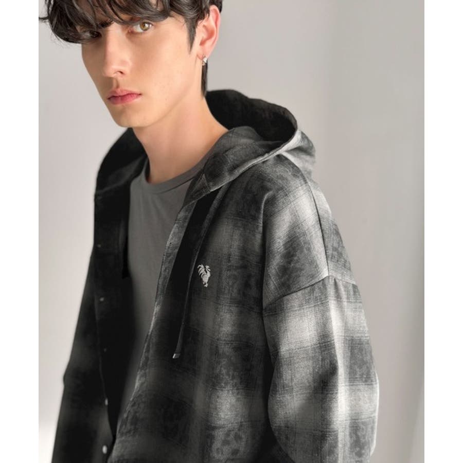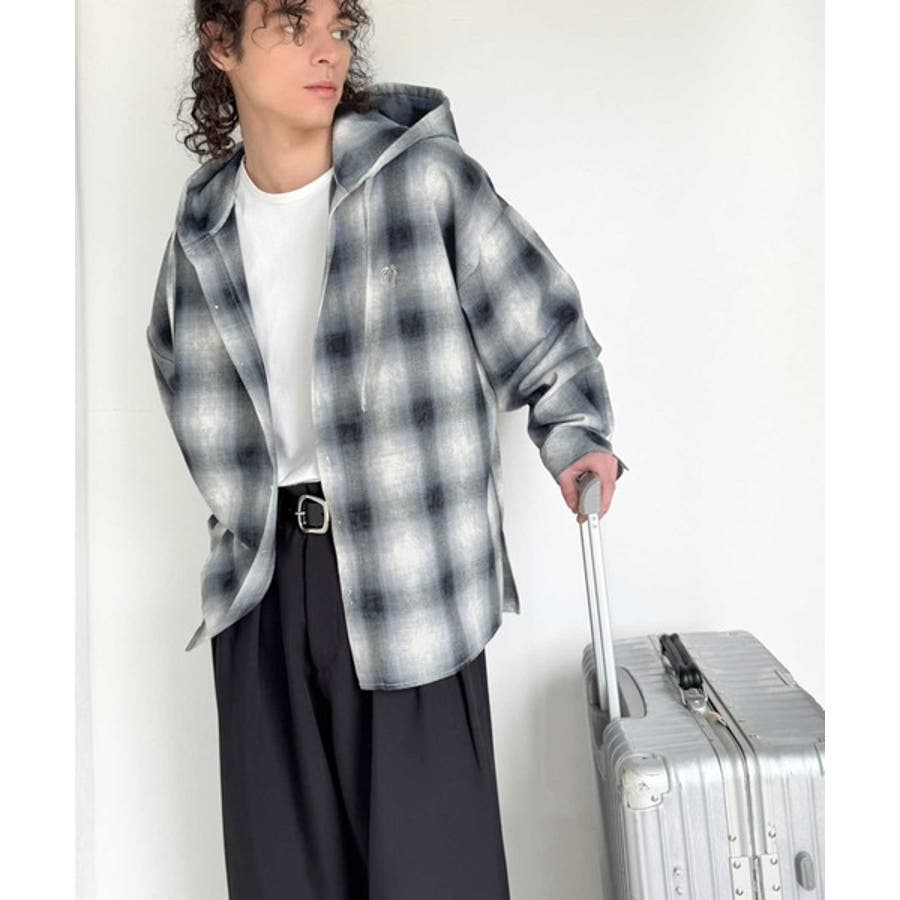 程よくゆとりのあるシルエットのトレンド、フード付きシャツパーカー。