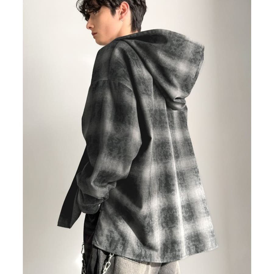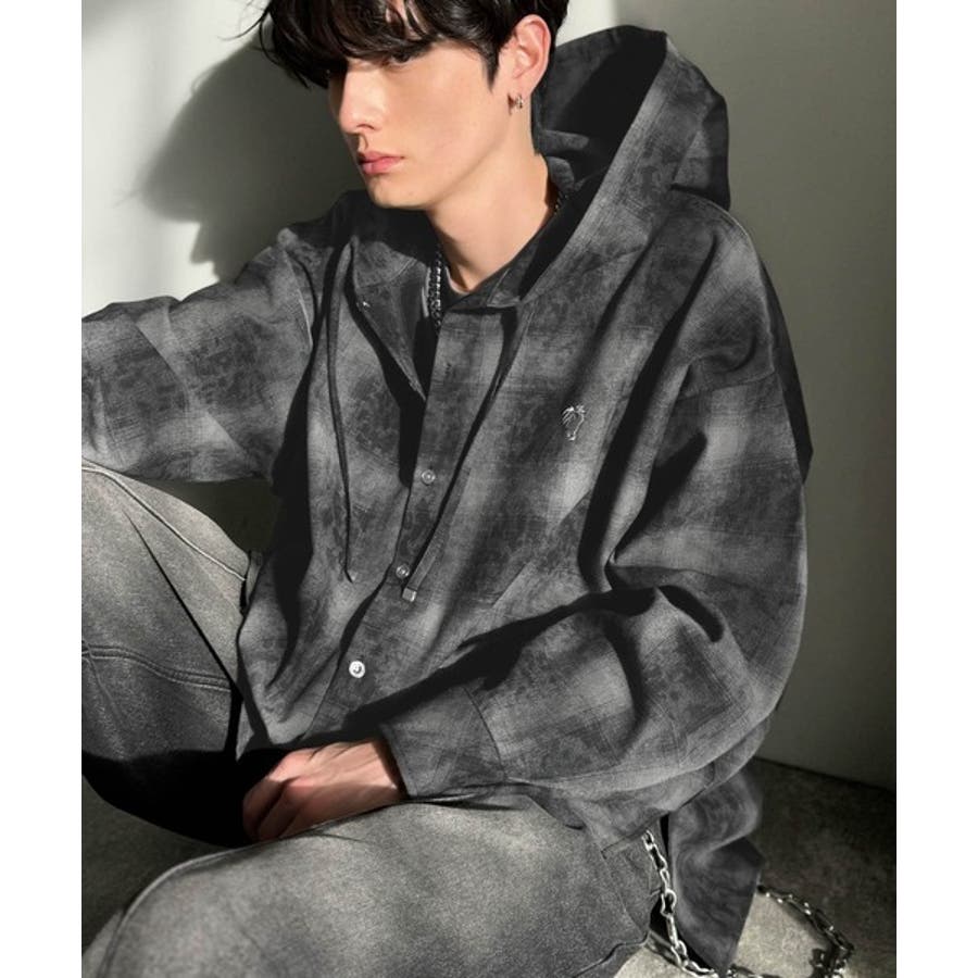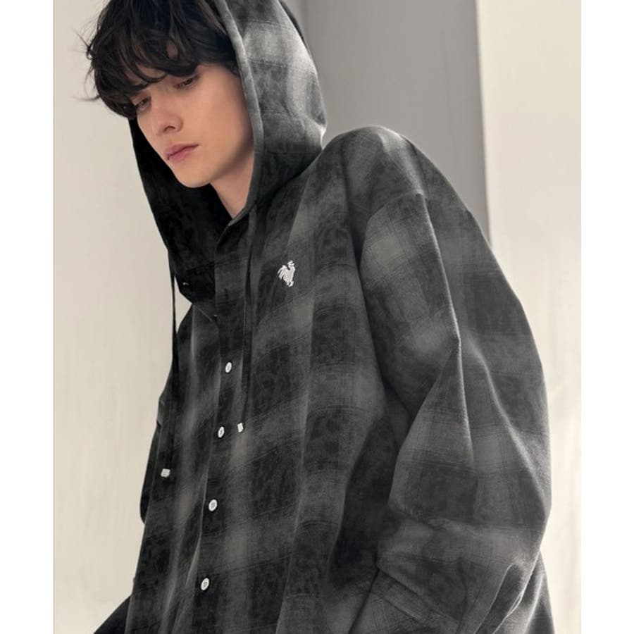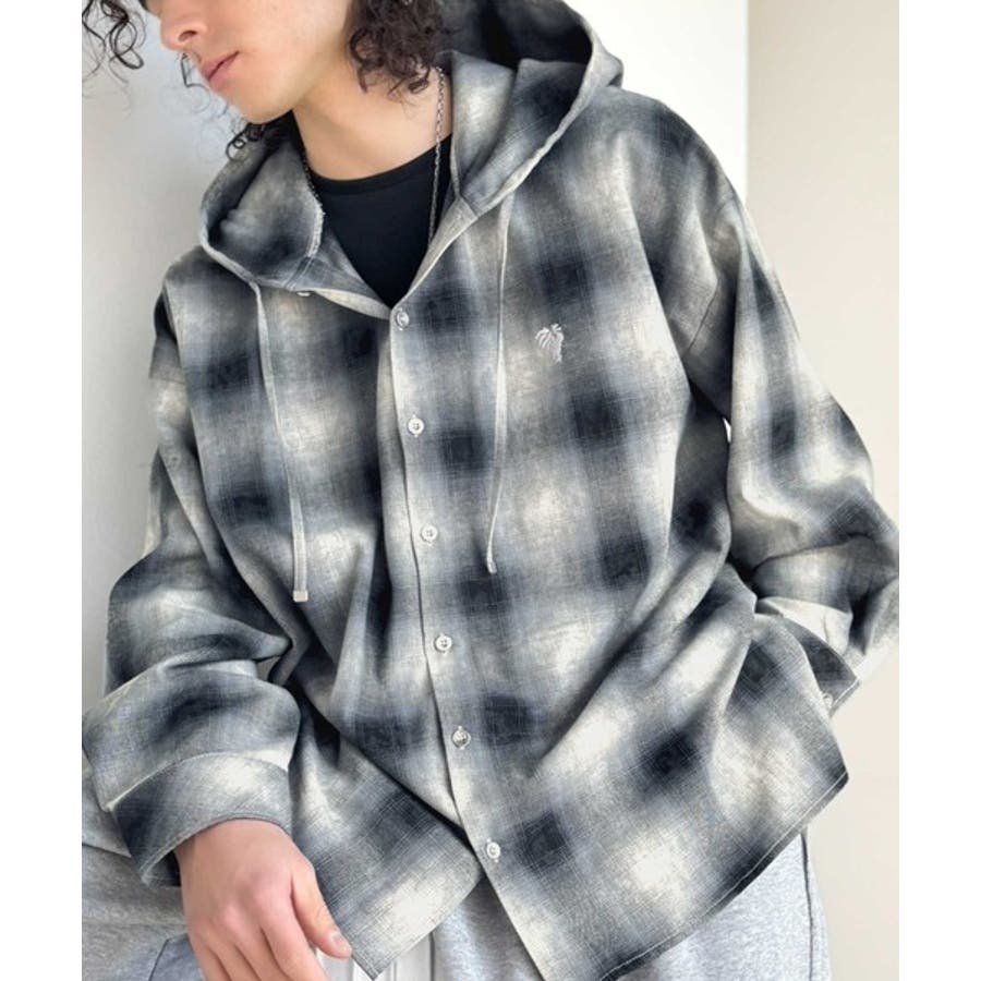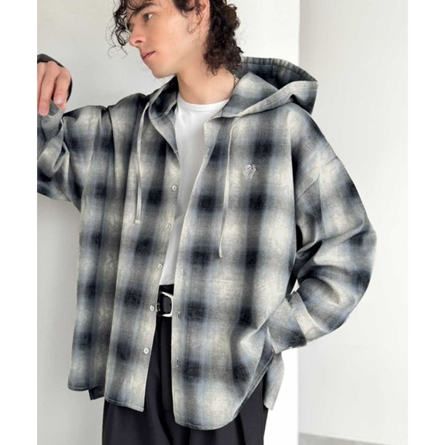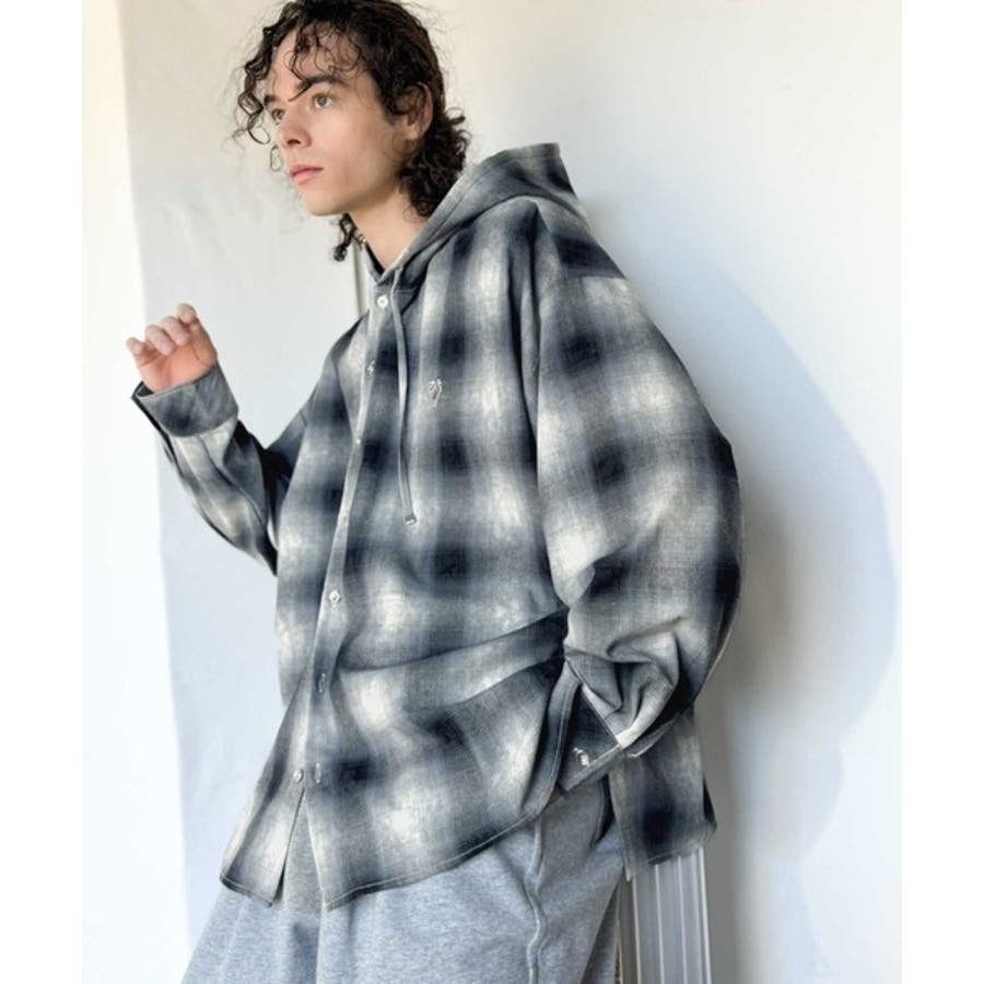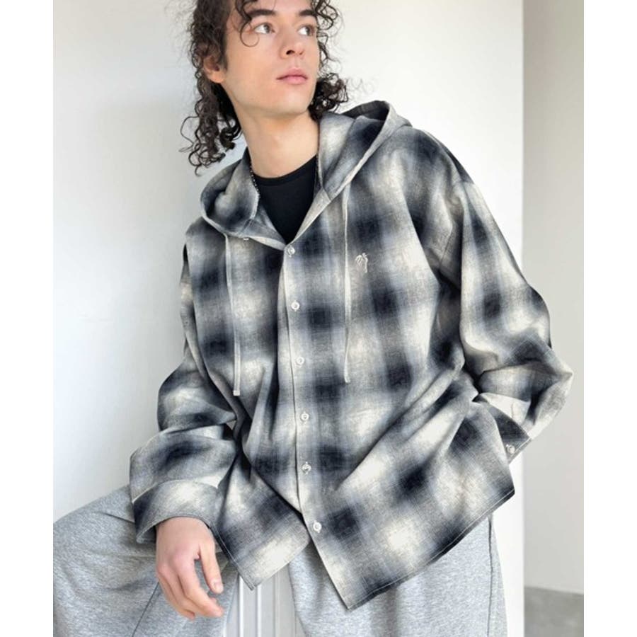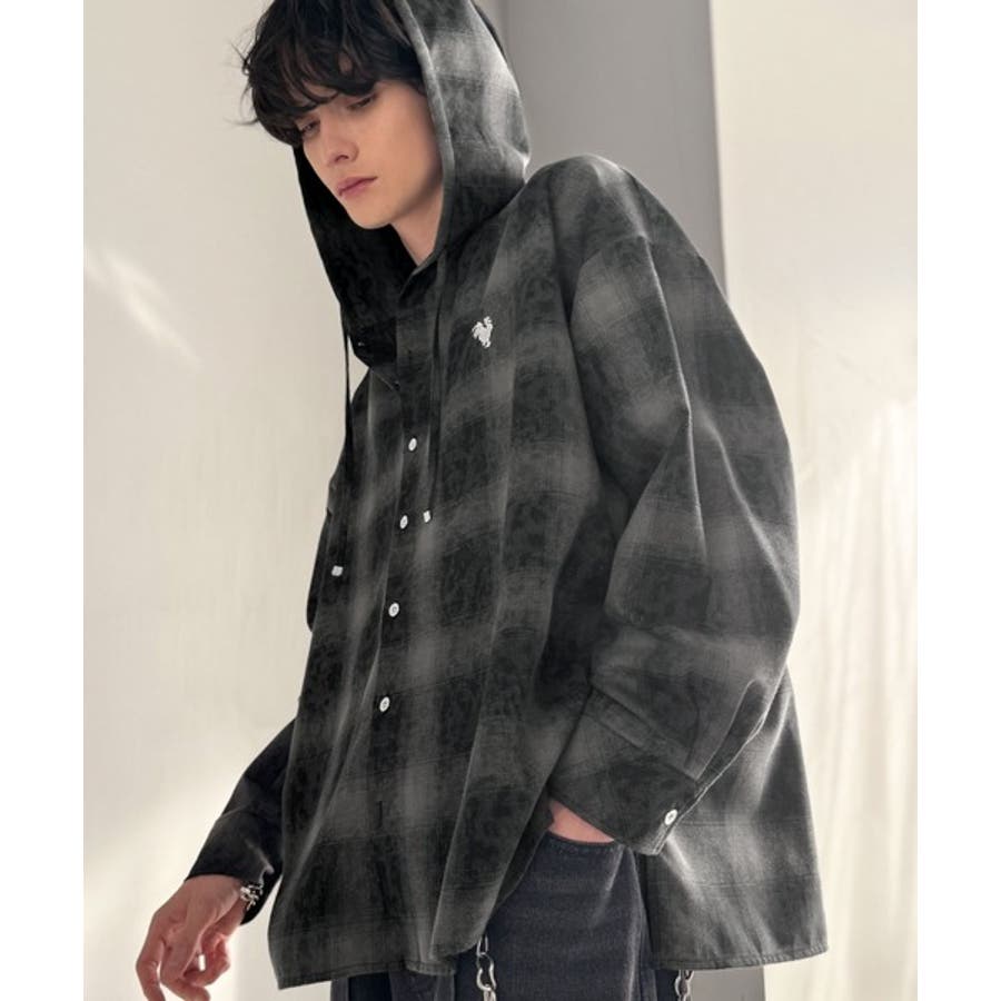 程よくゆとりのあるシルエットのトレンド、フード付きシャツパーカー。