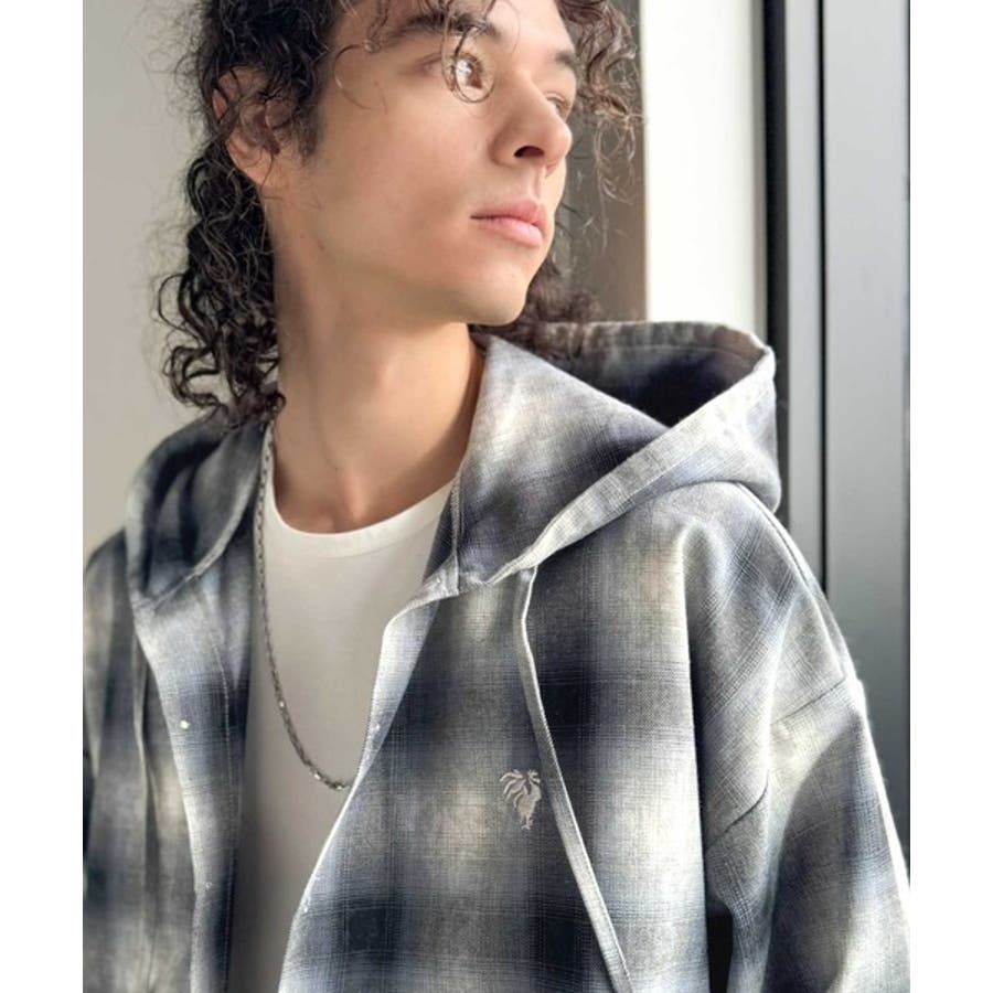 ヴィンテージ風チェック柄に胸刺繍をあしらい、一枚で存在感のあるデザインに。
