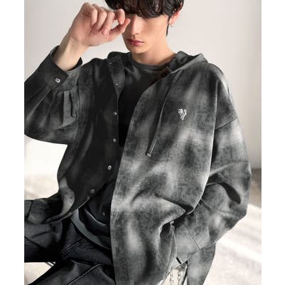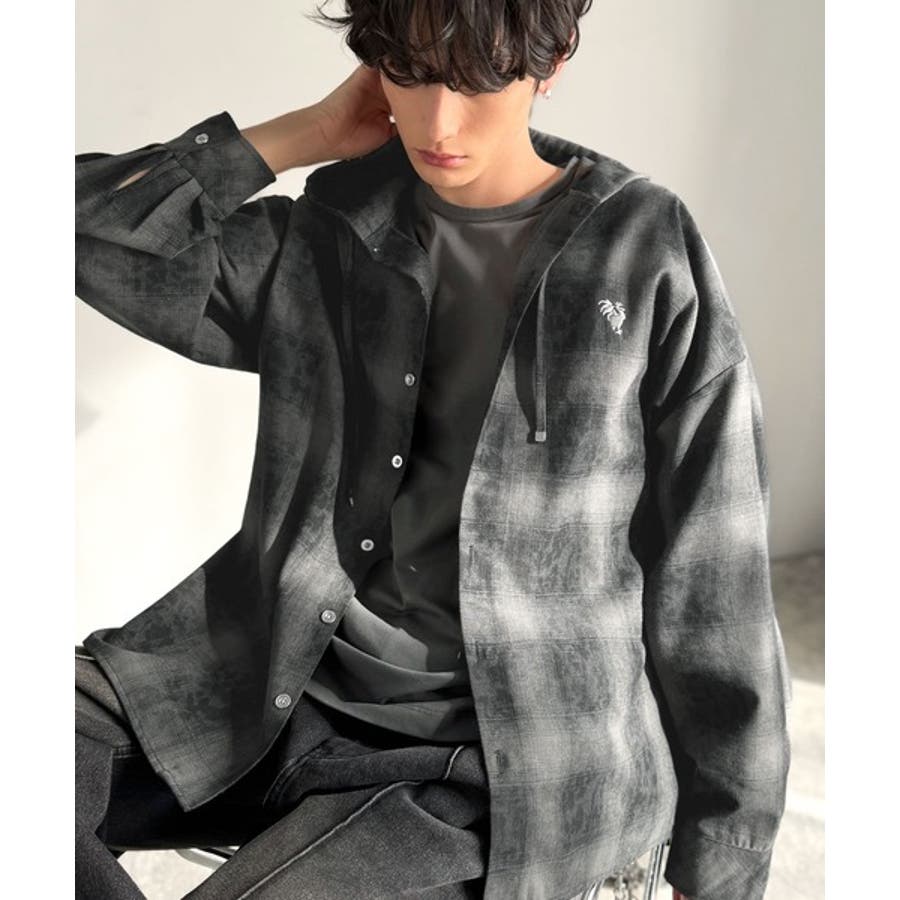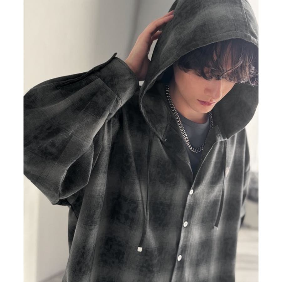 程よくゆとりを持たせたシルエットのフード付きシャツパーカー。