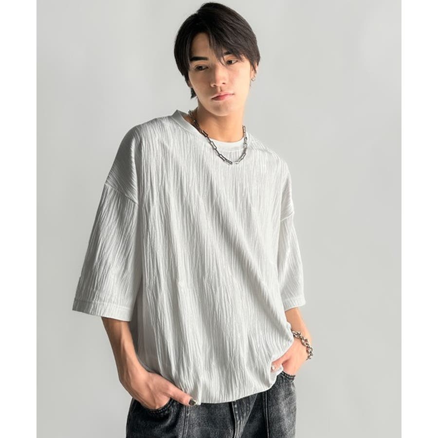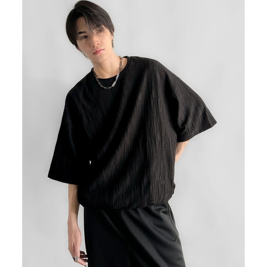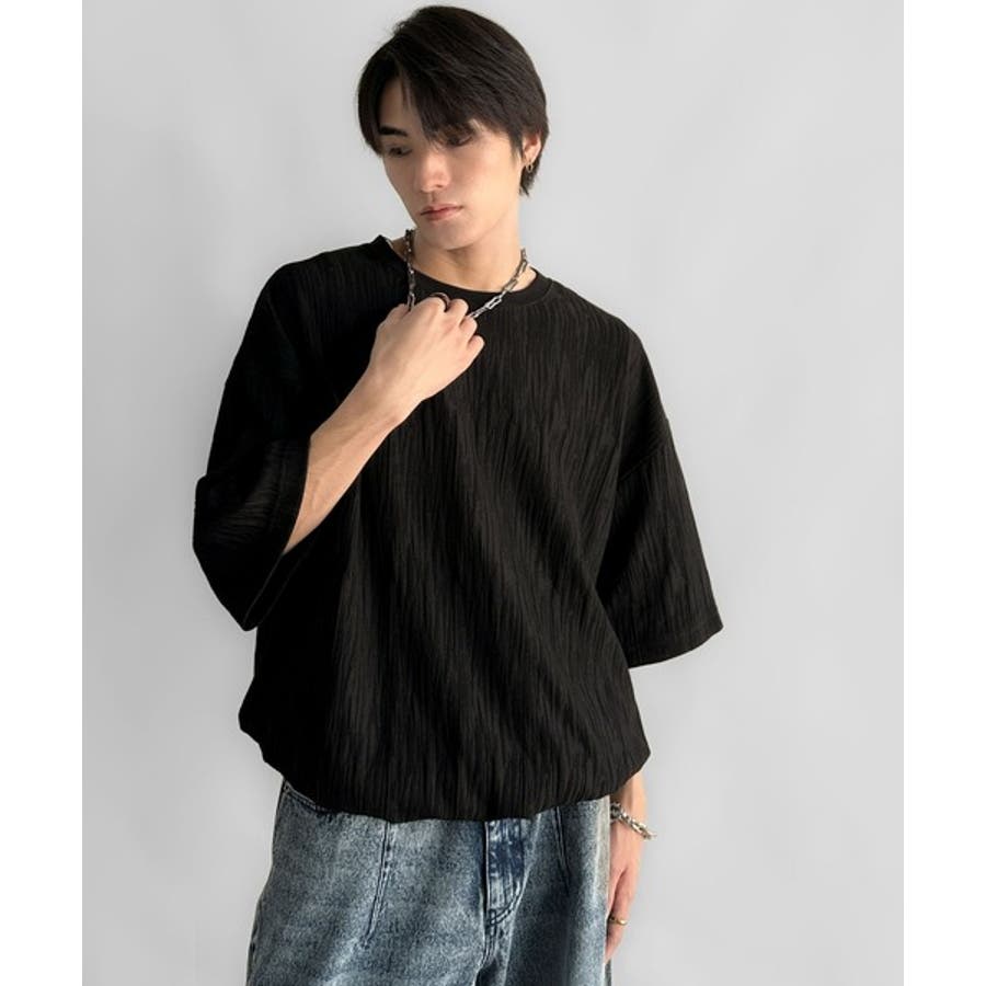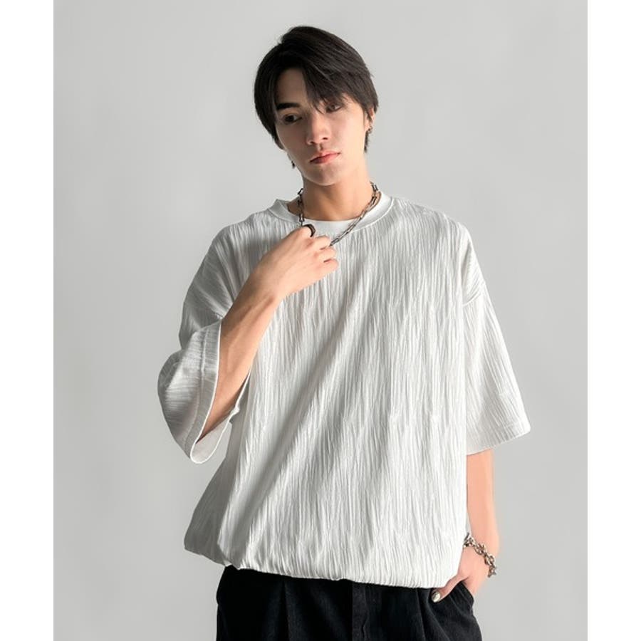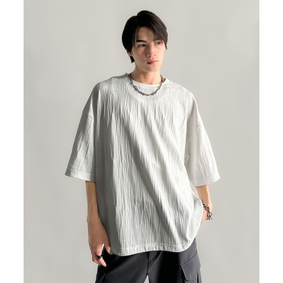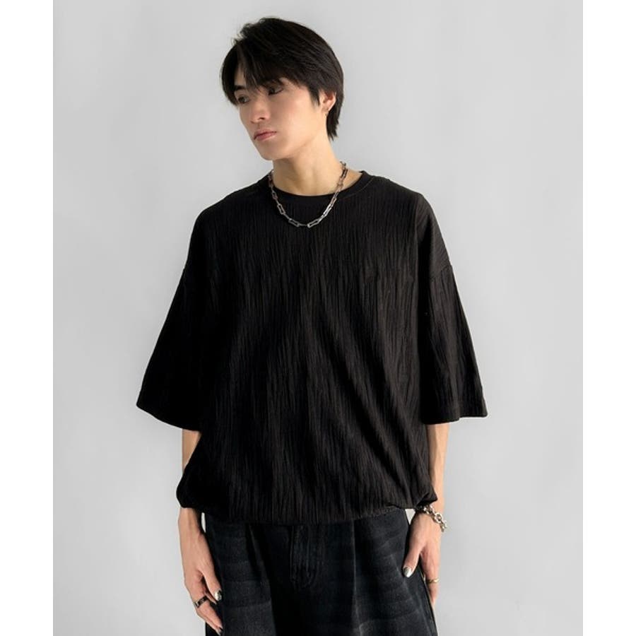 《JaVaジャバコラボ》ドロスト付リンクスジャカードオーバーサイズTシャツ