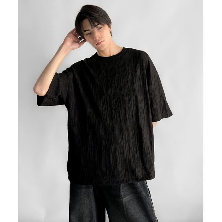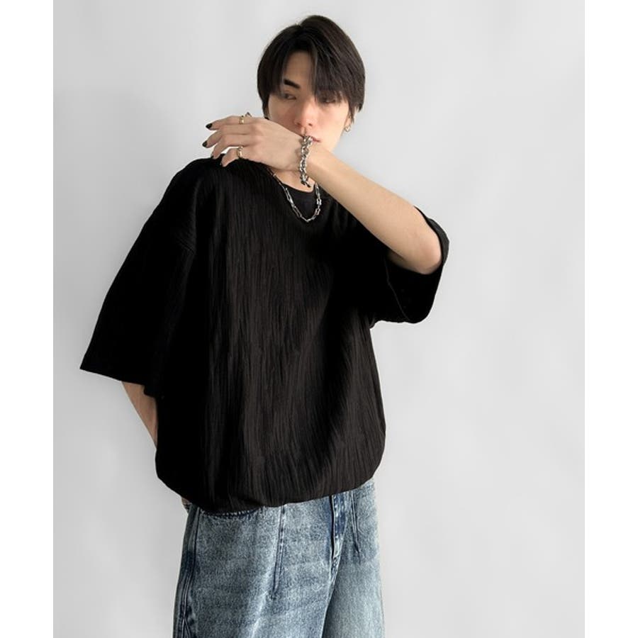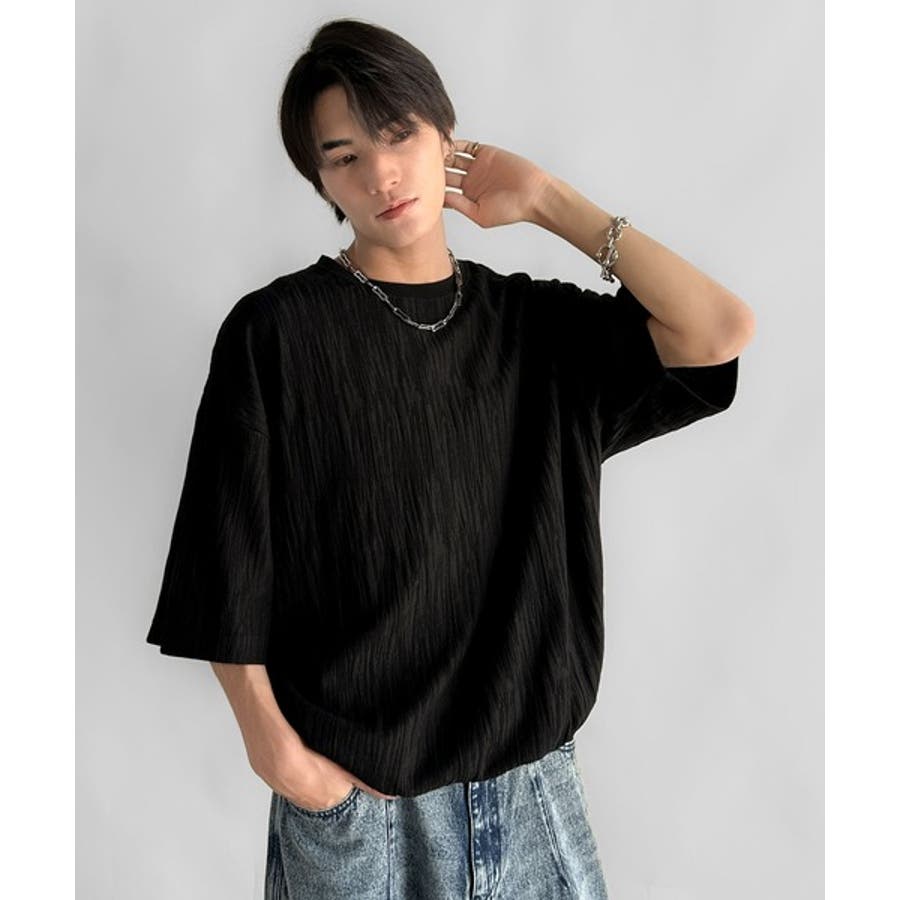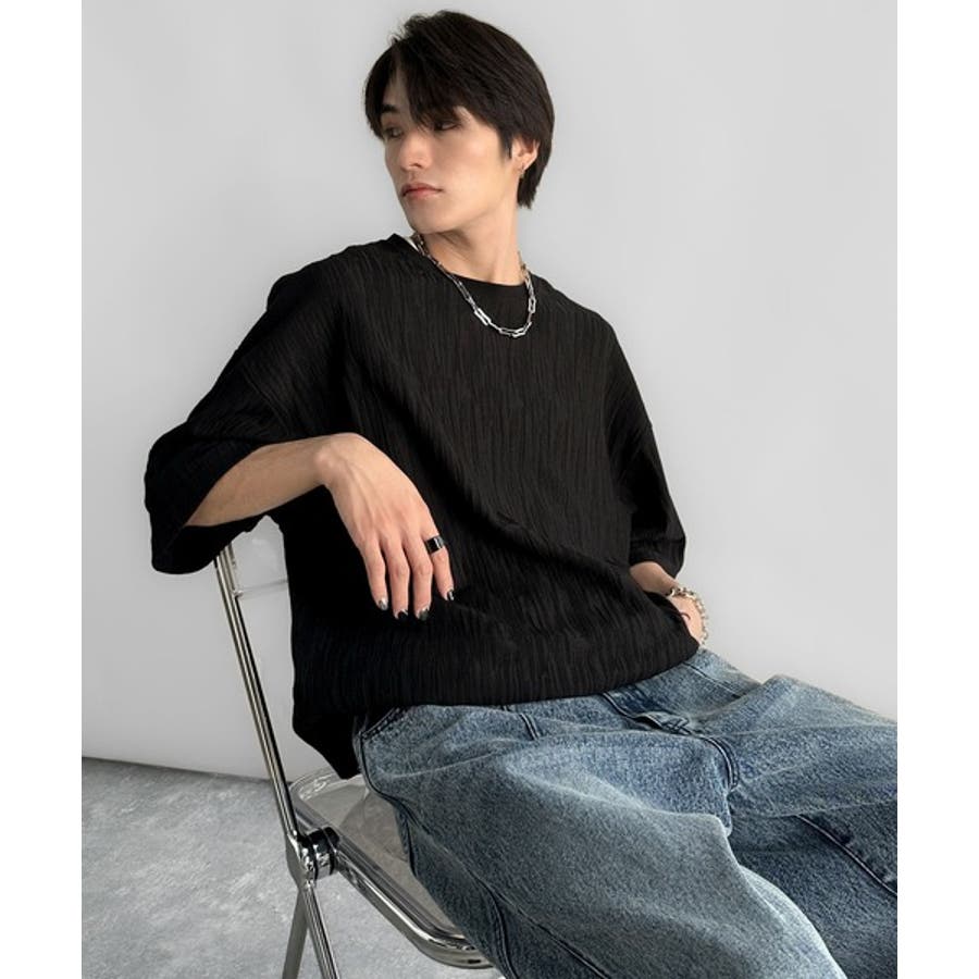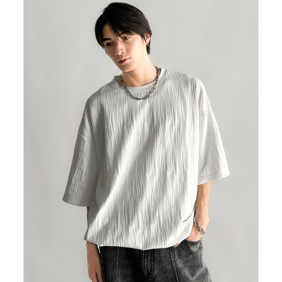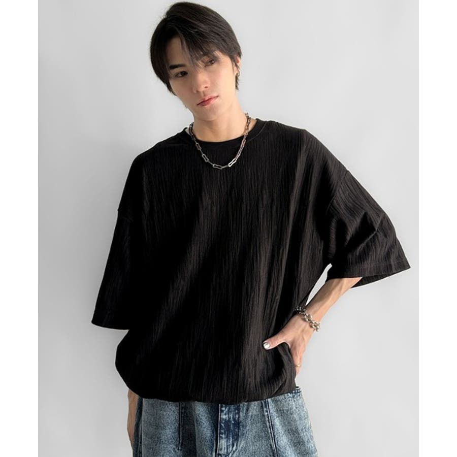 《JaVaジャバコラボ》ドロスト付リンクスジャカードオーバーサイズTシャツ