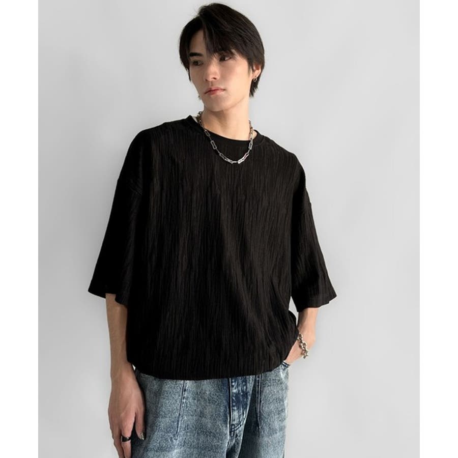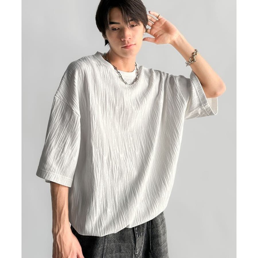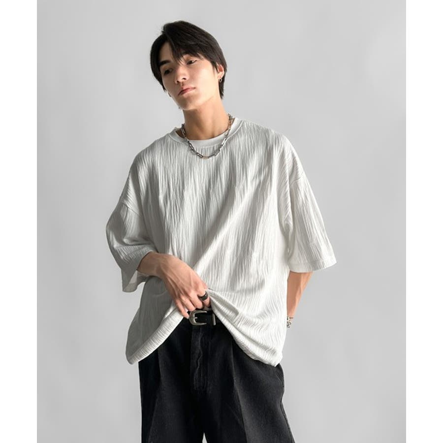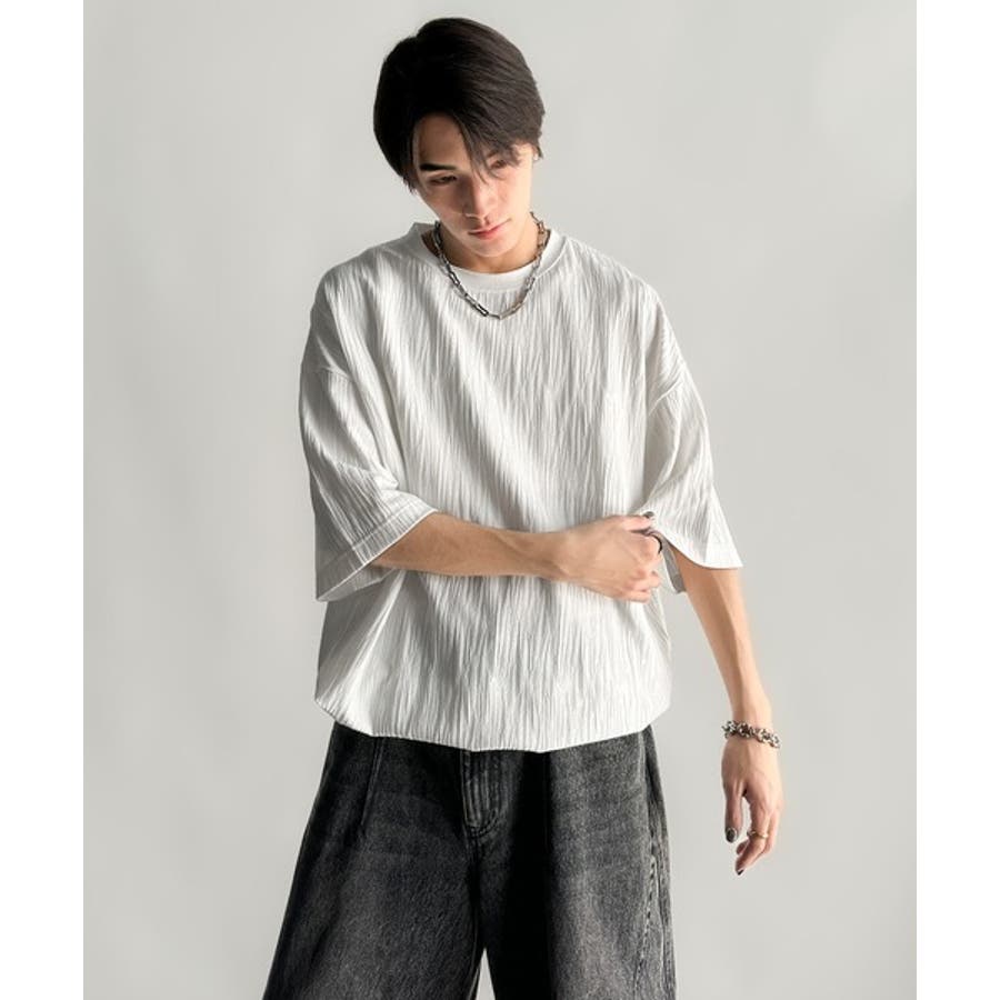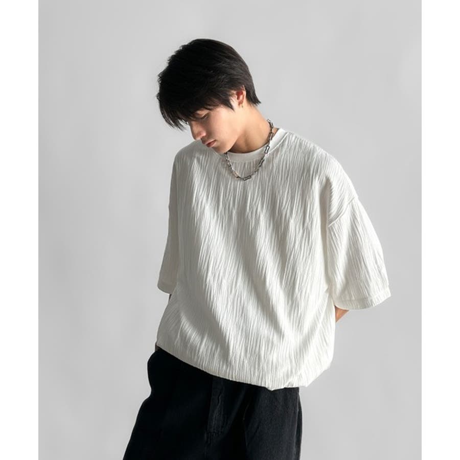 立体感のあるリンクスジャカード生地が、着こなしに奥行きをプラス。。