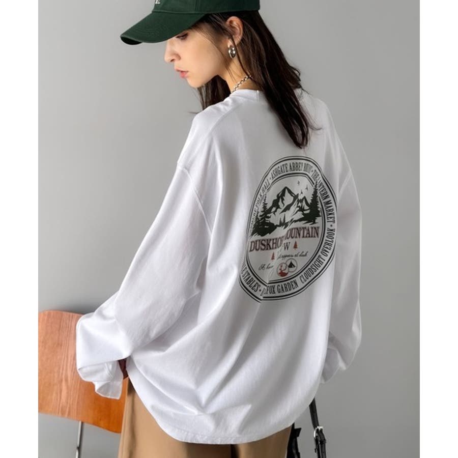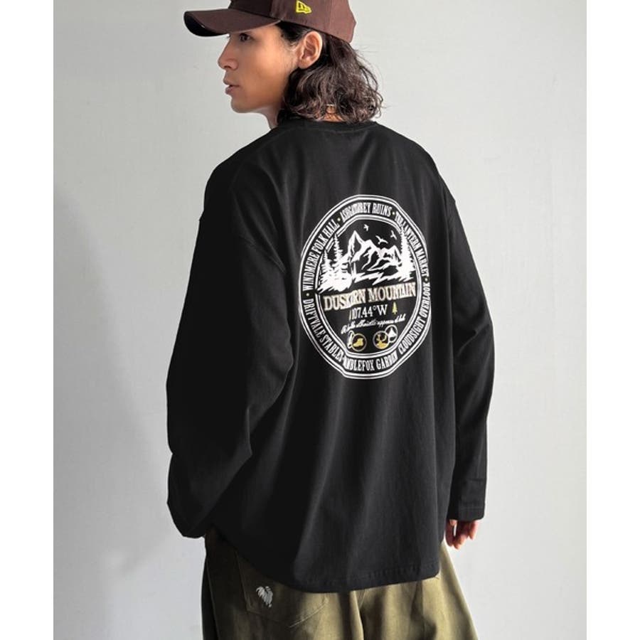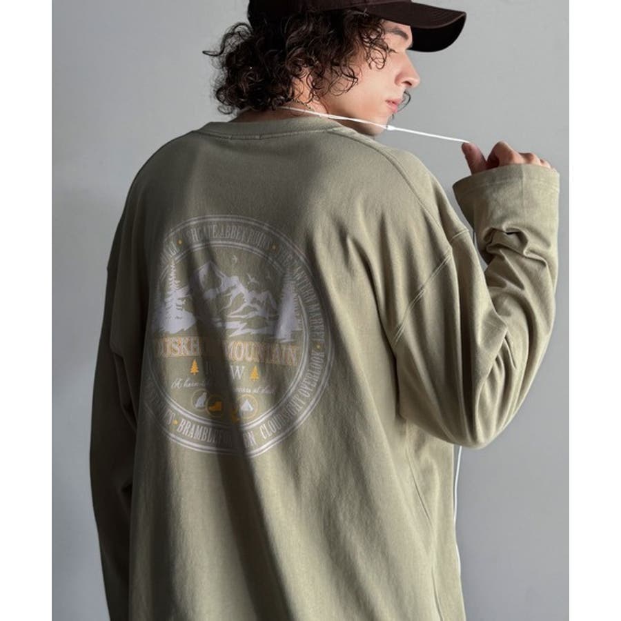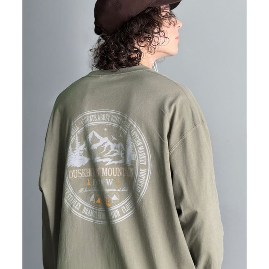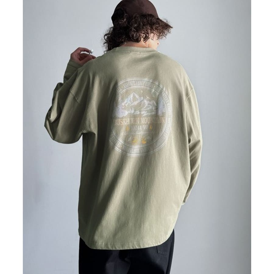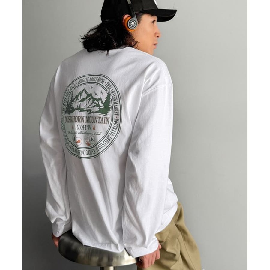 フロントとバックに山岳をモチーフにしたグラフィックプリントを施した一枚。