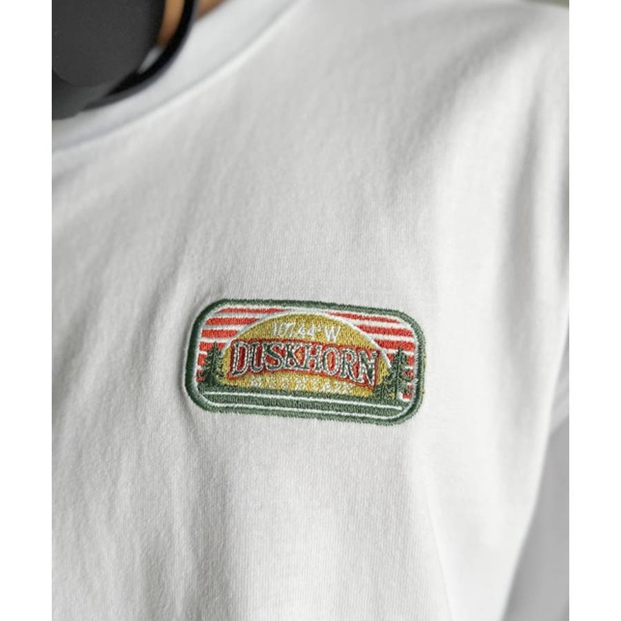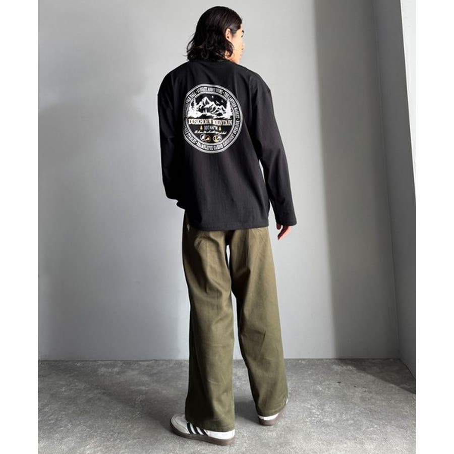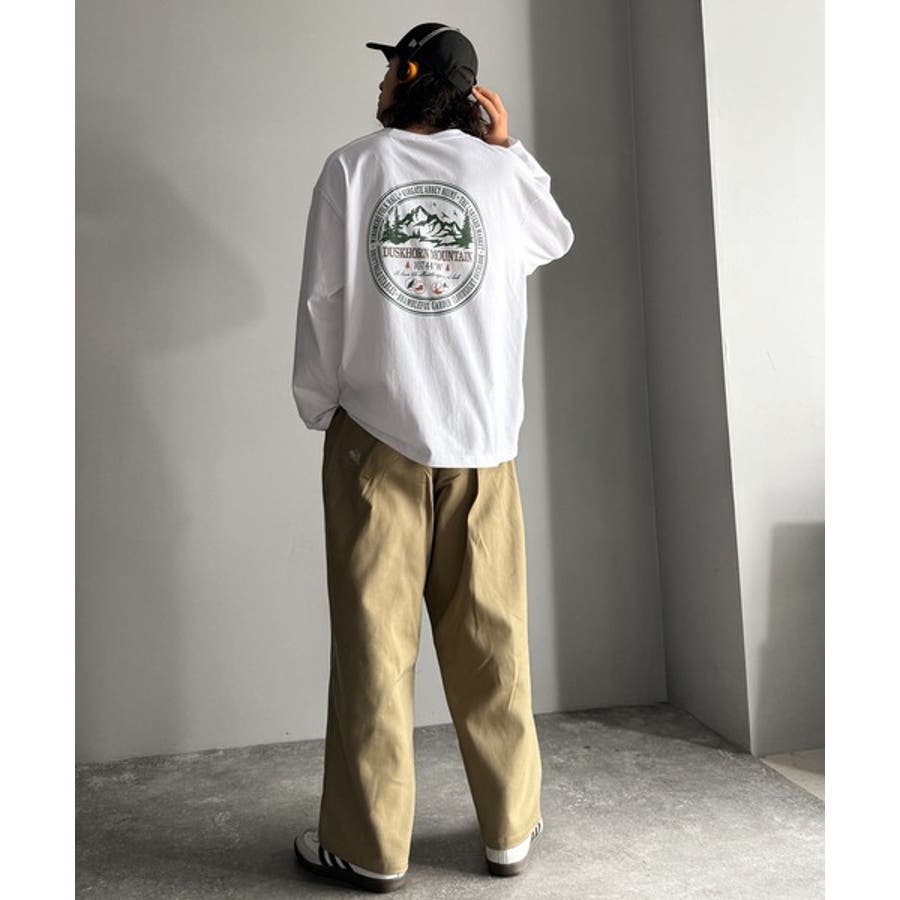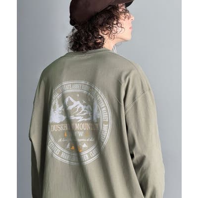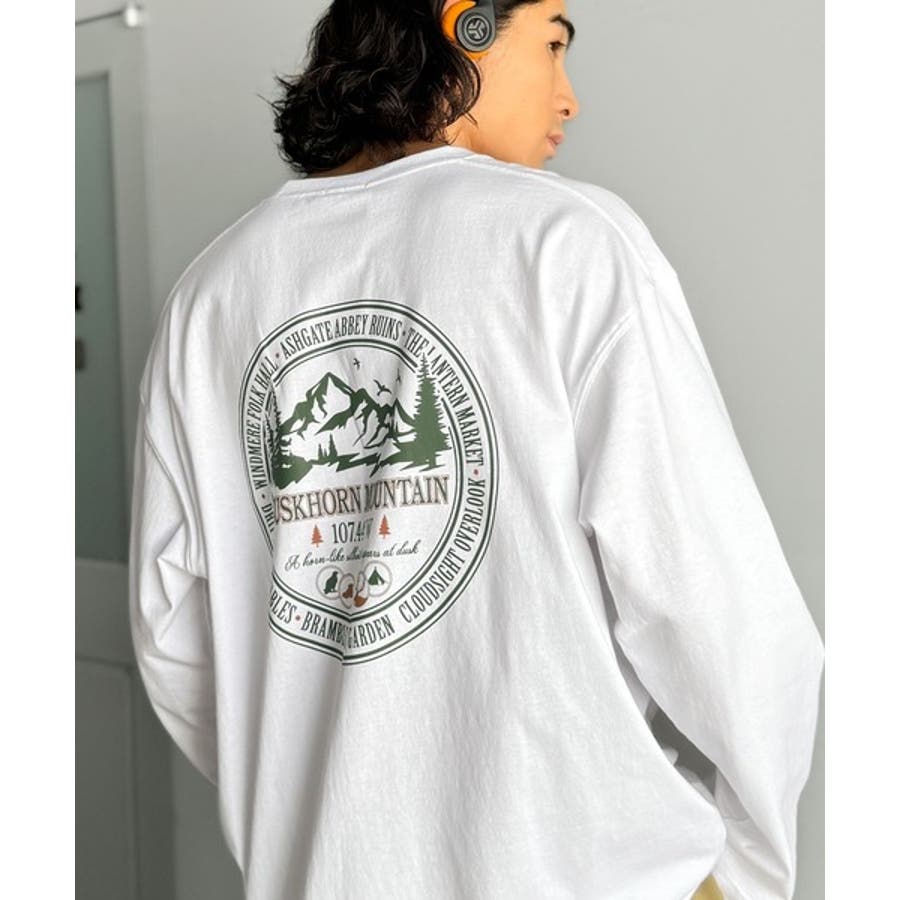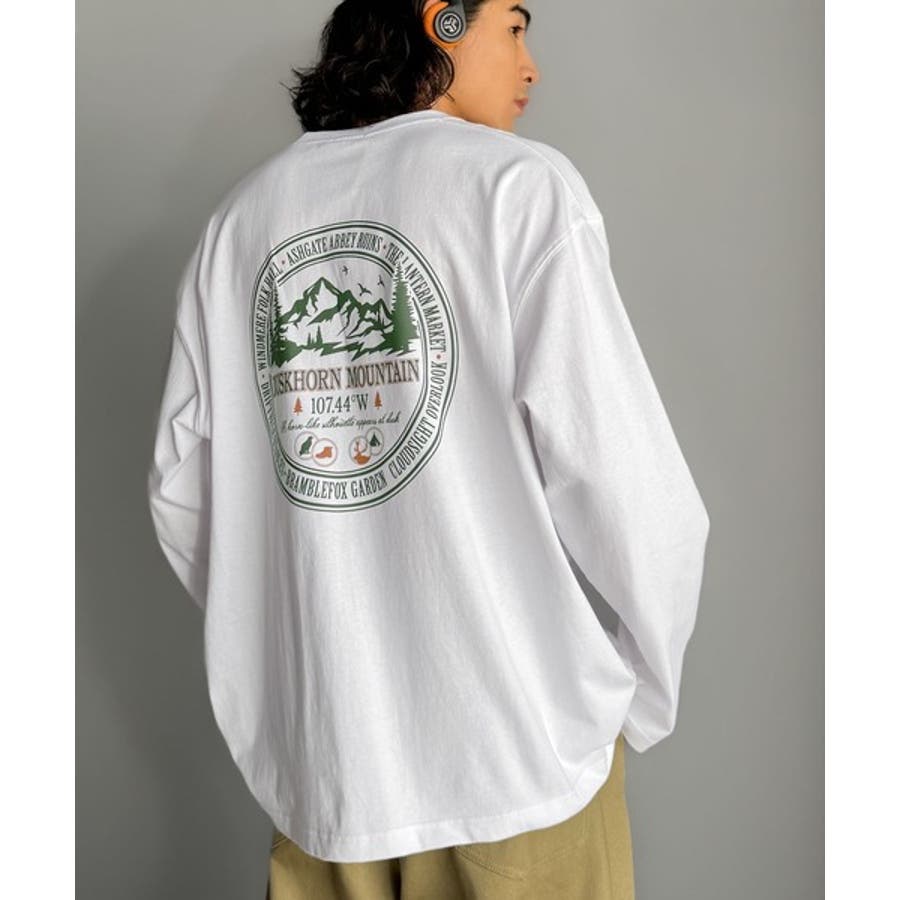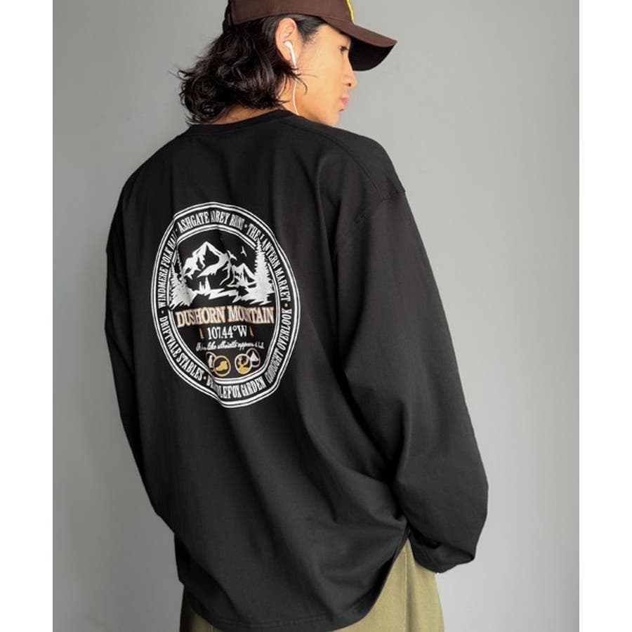 フロントとバックに山岳をモチーフにしたグラフィックプリントを施した一枚。