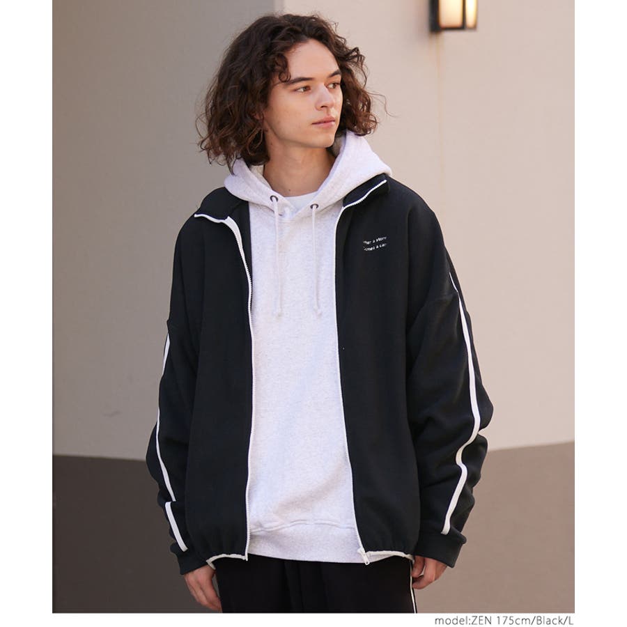ジャケット メンズ ジップ フリース 刺繍 ワンポイント バイカラー 前開き オーバーシルエット 長袖 カジュアル アウター トラックジャケット ZIP ジップアップ 英字 ビッグシルエット オーバーサイズ レイヤード ゆったり 暖かい 冬 コカ COCA coca COCA coca