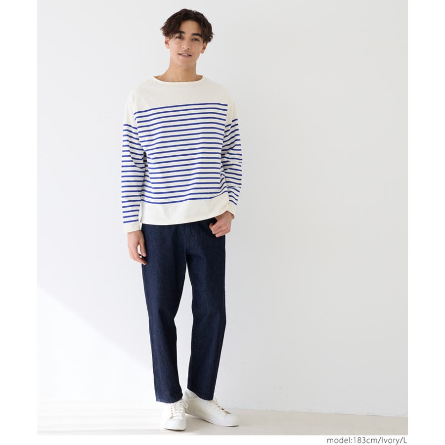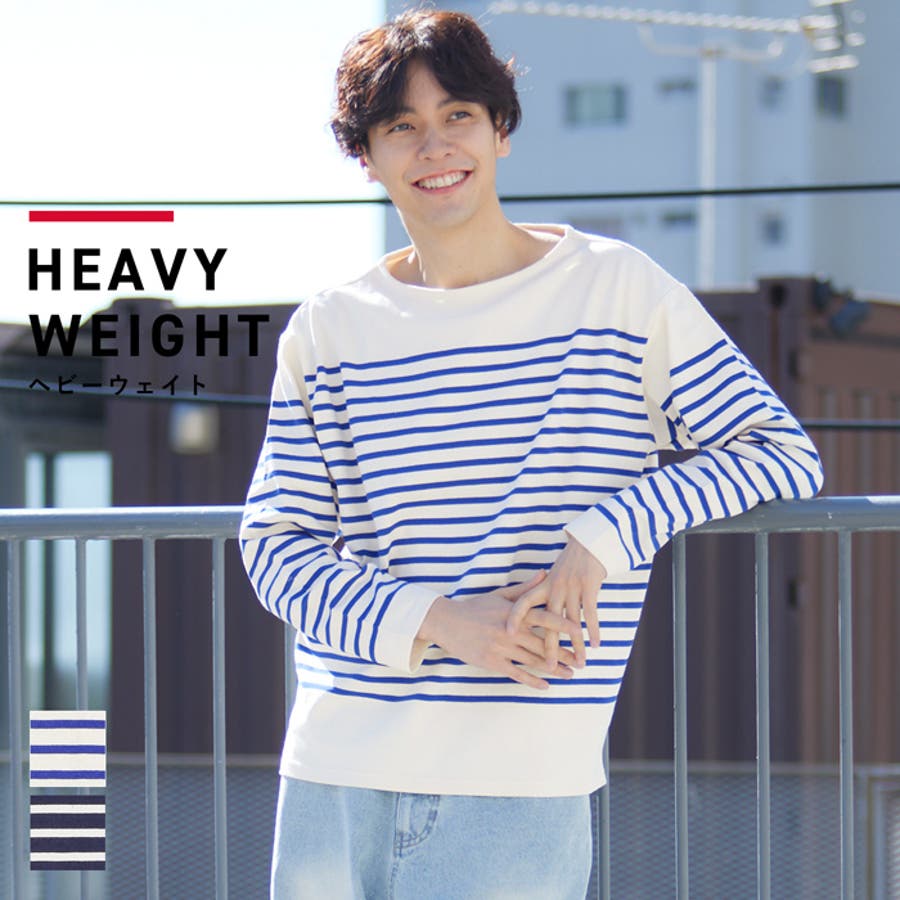 ヘビーウェイトパネルボーダーボートネックロンT メンズ