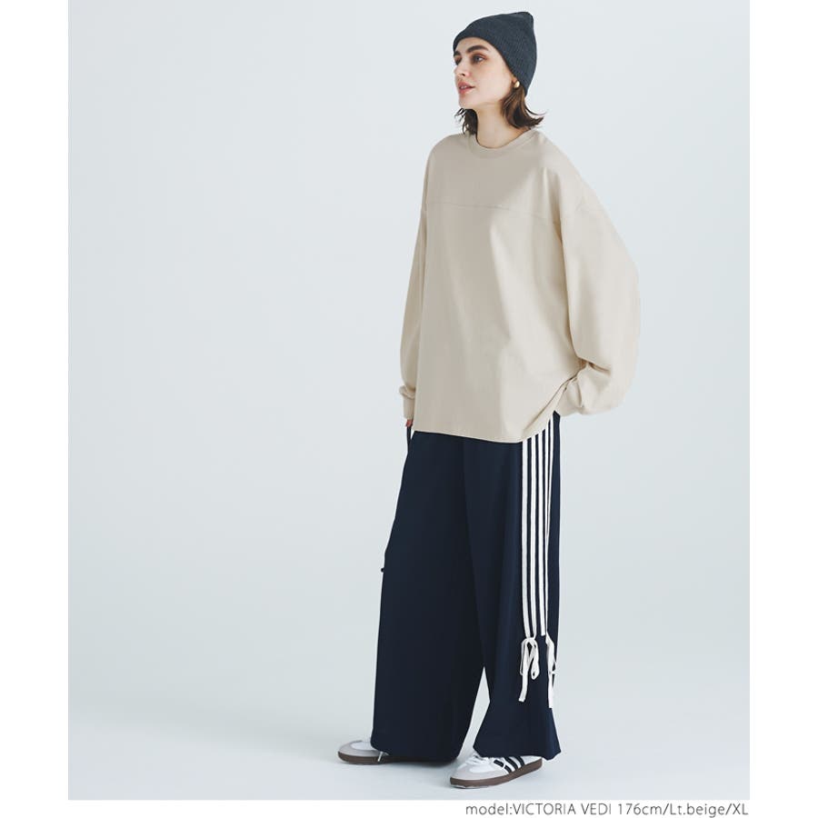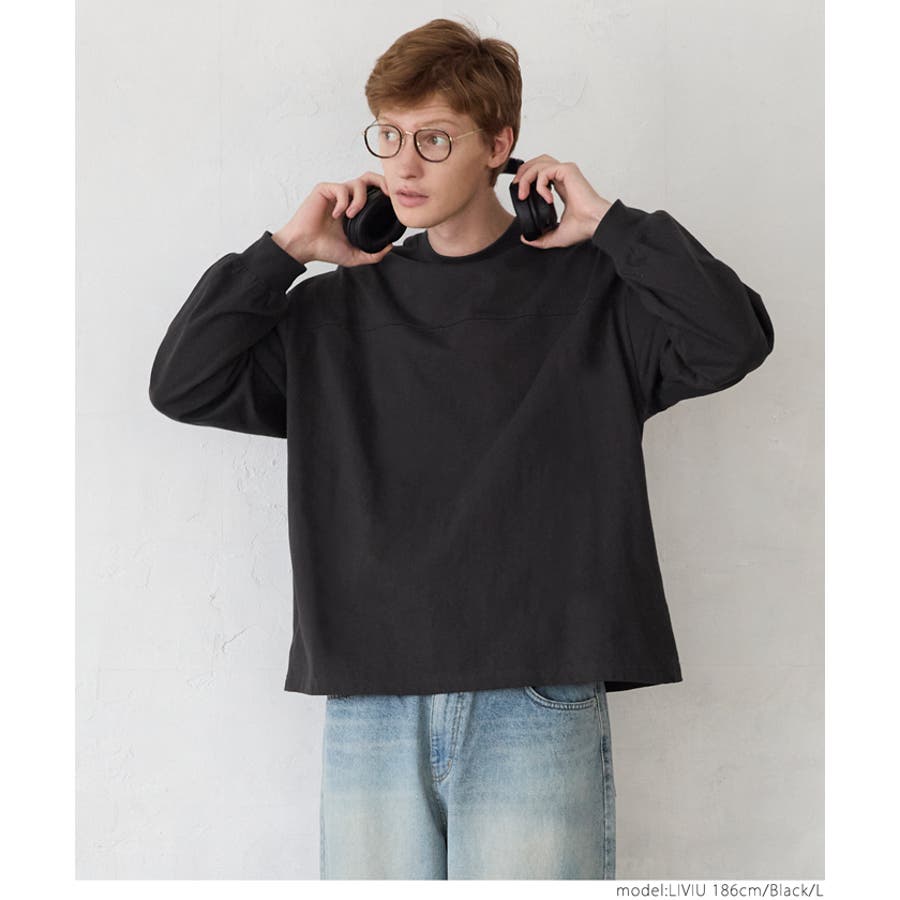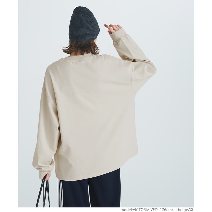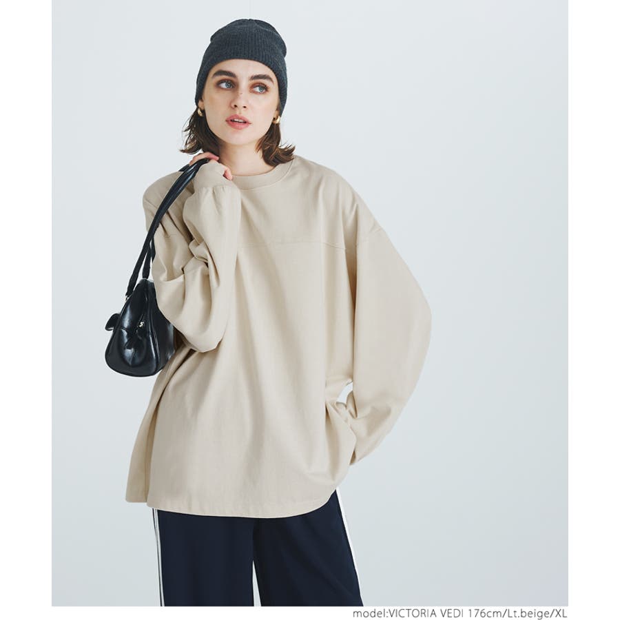 トップス プルオーバー 袖リブ ビッグサイズ ドロップショルダー ミディアム丈 コットン 丸首 透けない ゆったりシルエット 24aw コカ COCA coca COCA coca