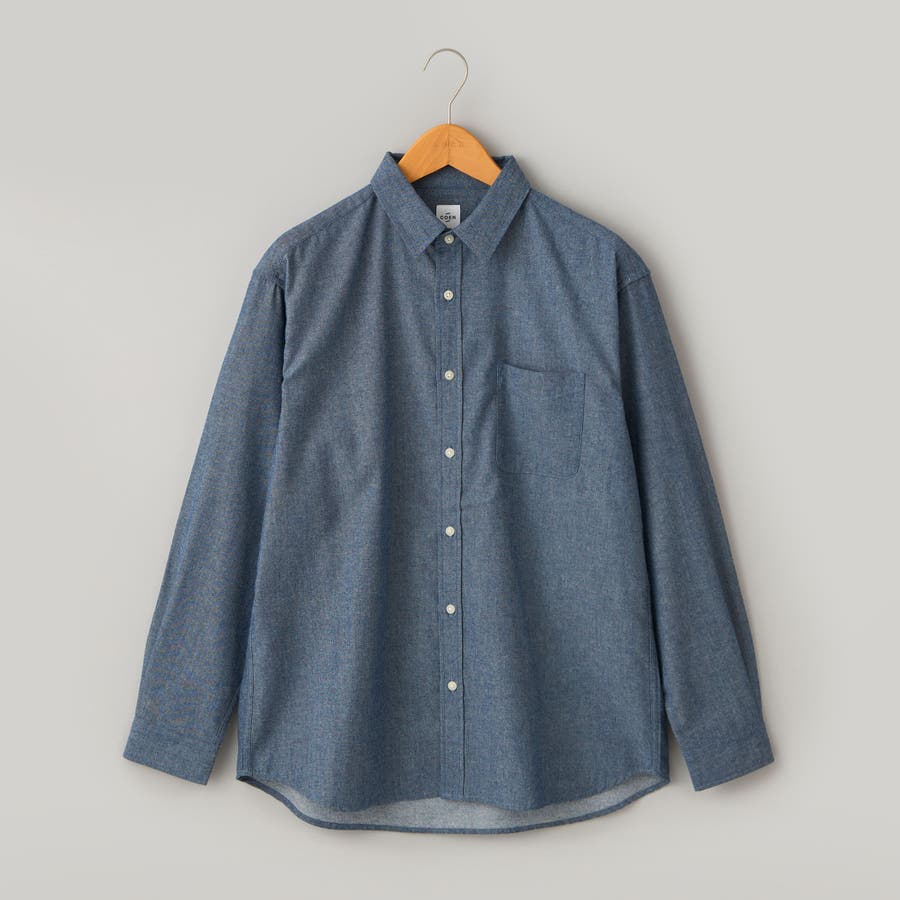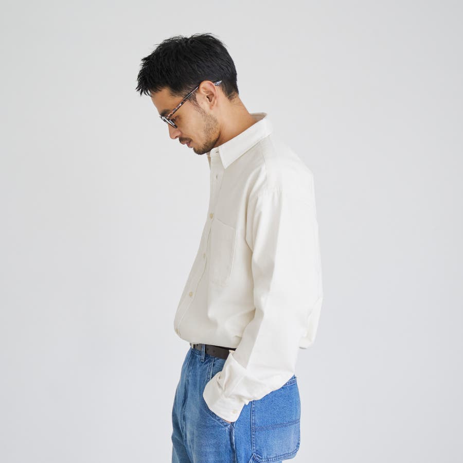 無地でシンプルに仕上げた、USAコットンのフランネルシャツ。