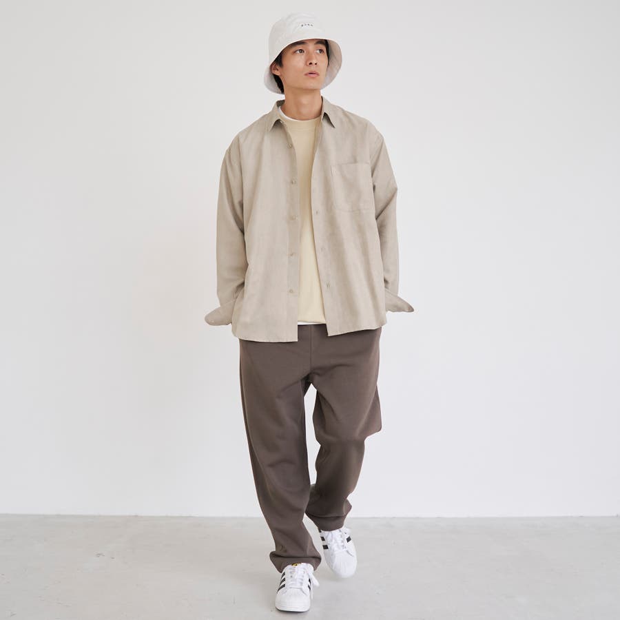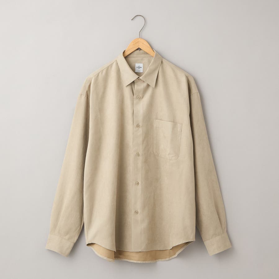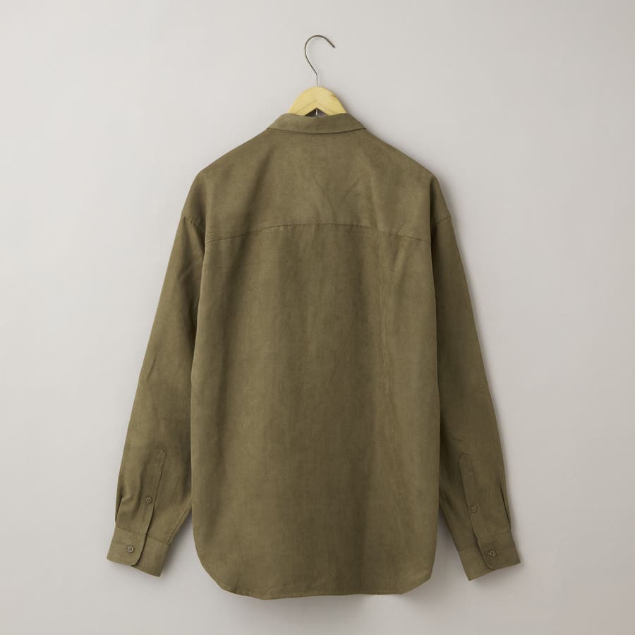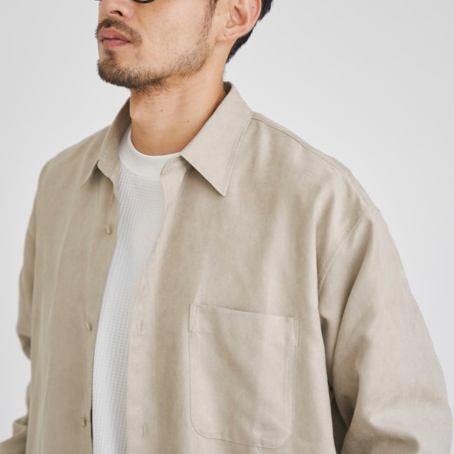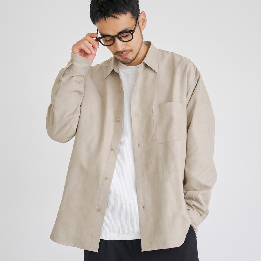 スウェードのような起毛感が特徴のシャツは、1枚取り入れるだけで秋らしいムードに。