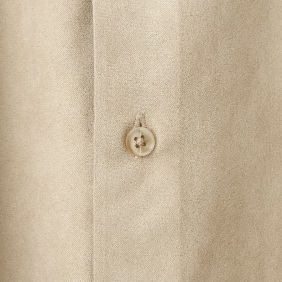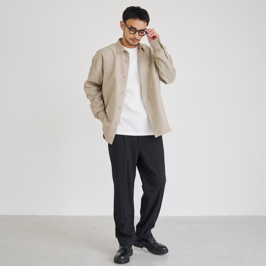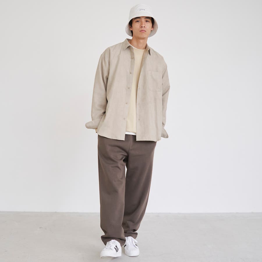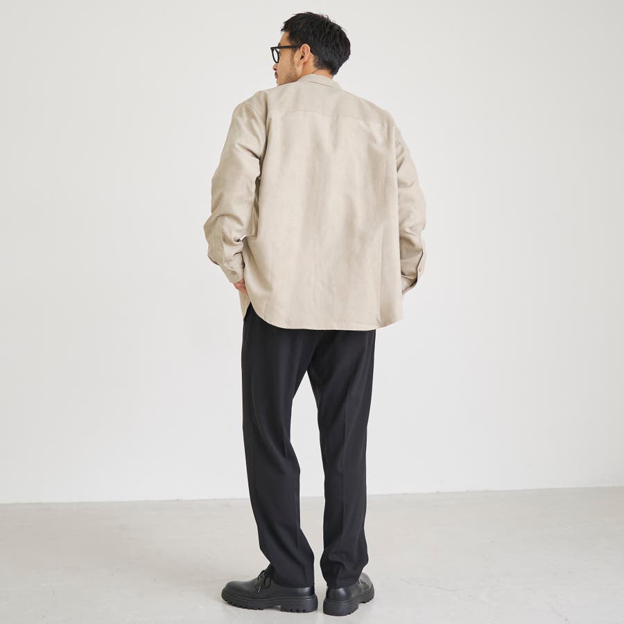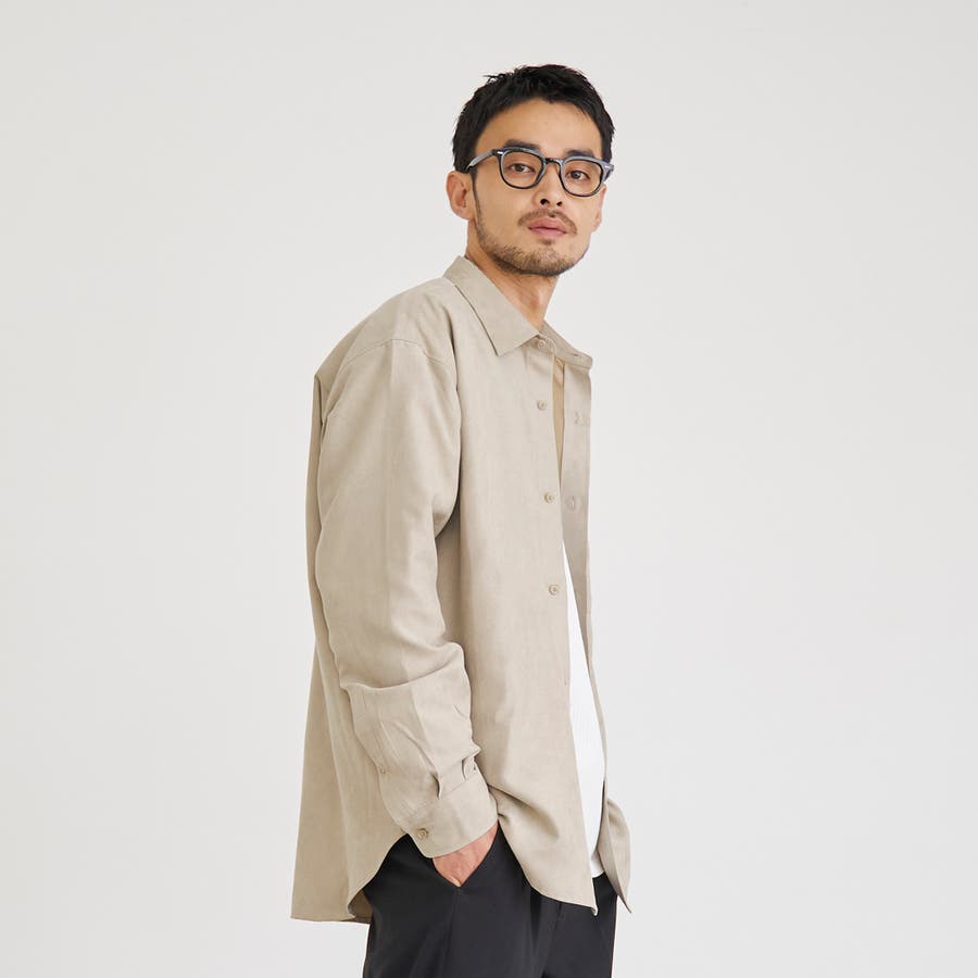 スウェードのような起毛感が特徴のシャツは、1枚取り入れるだけで秋らしいムードに。
