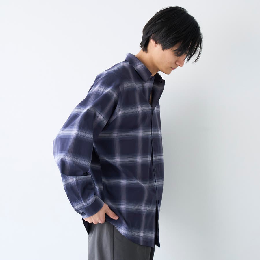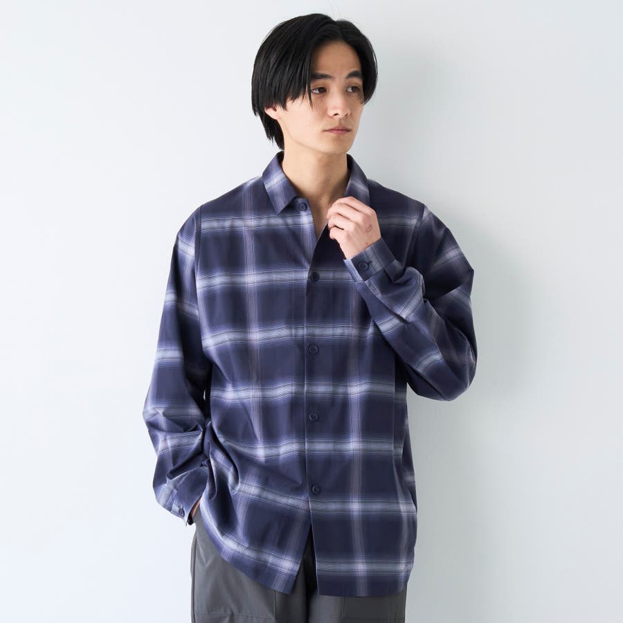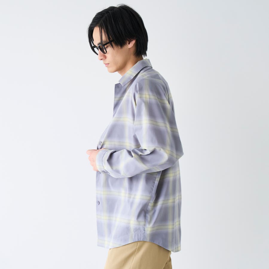 楽はおりオンブレチェックシャツ【ストレッチ、防シワ】