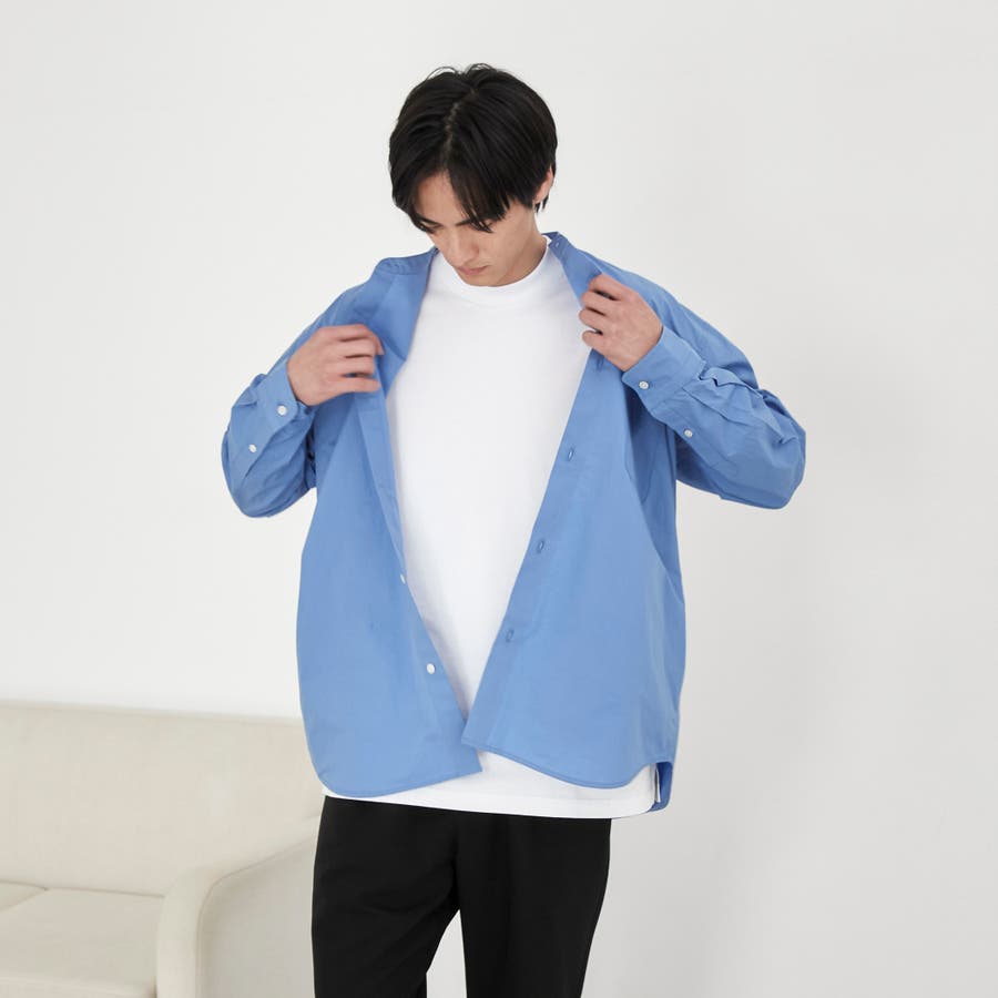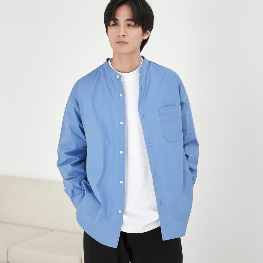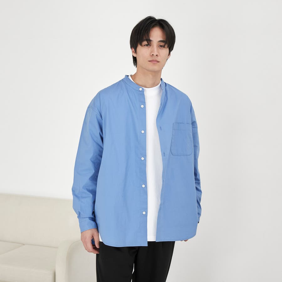 合わせやすさが魅力のバンドカラーを採用した長袖シャツ。
