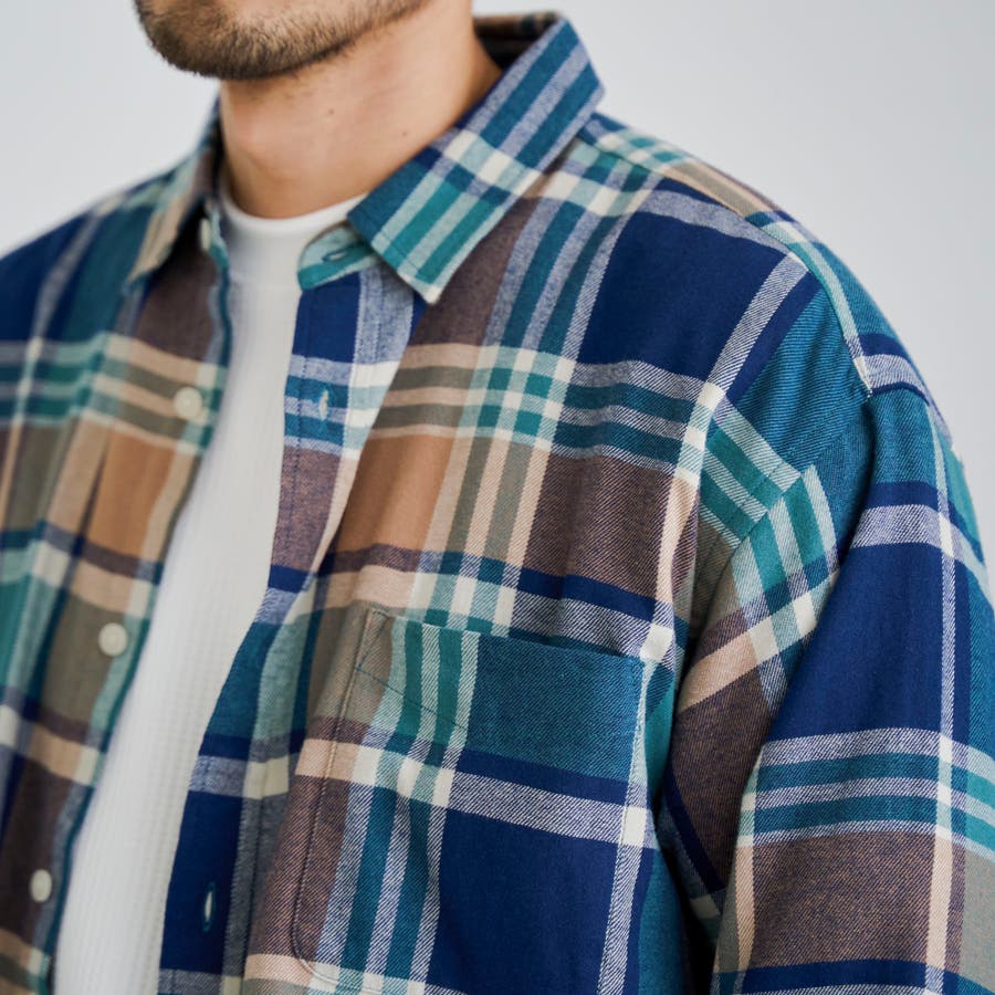 USAコットンを使用した、ふんわりとした肌ざわりが魅力のフランネルチェックシャツ。