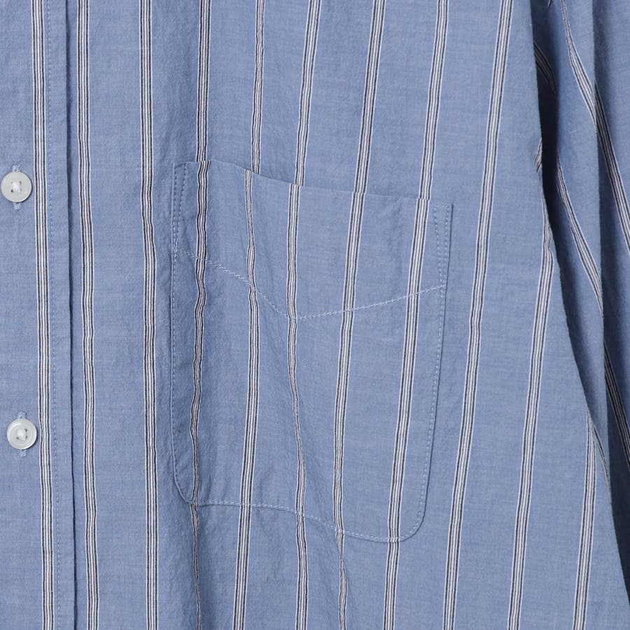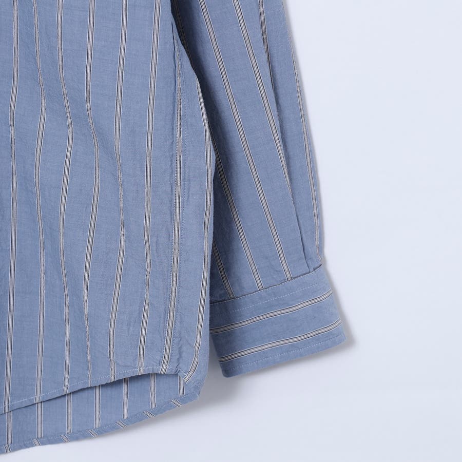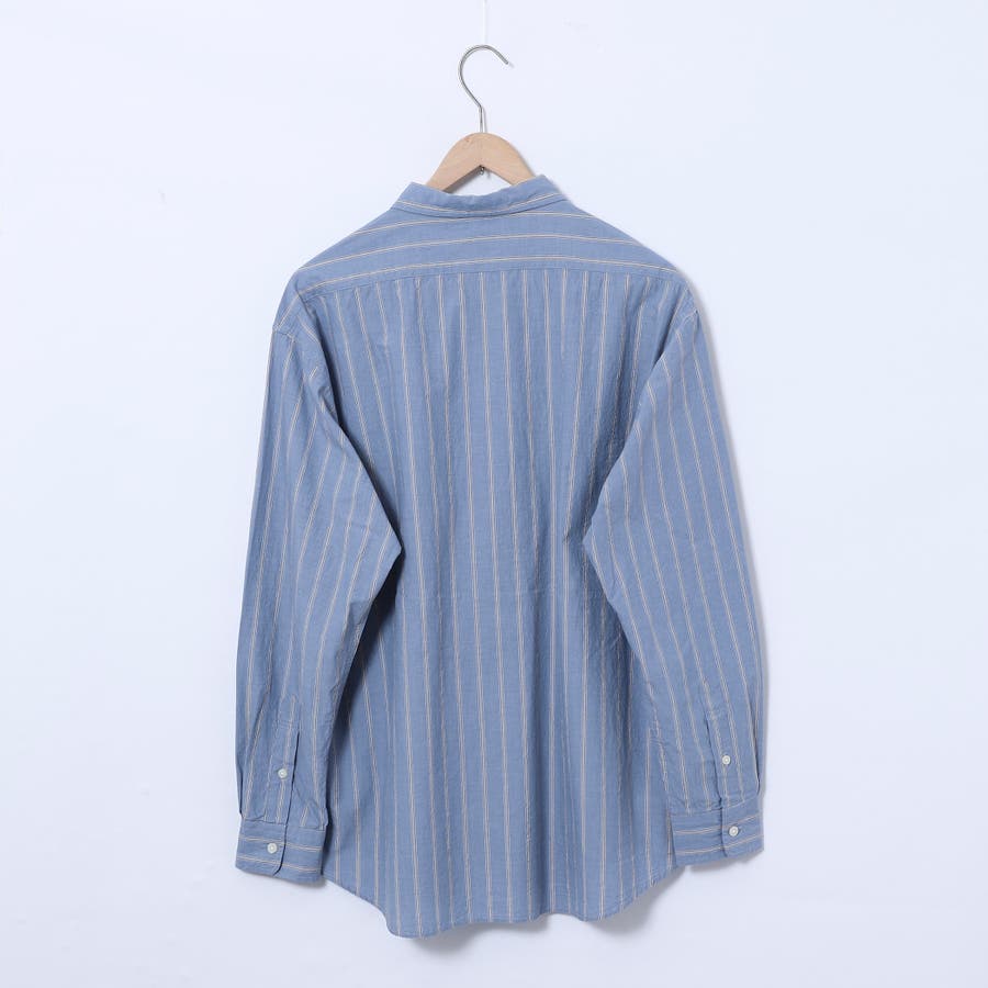 ベーシックなサイズ感ながら程よく肩落ちしたシルエットのバンドカラーシャツです。