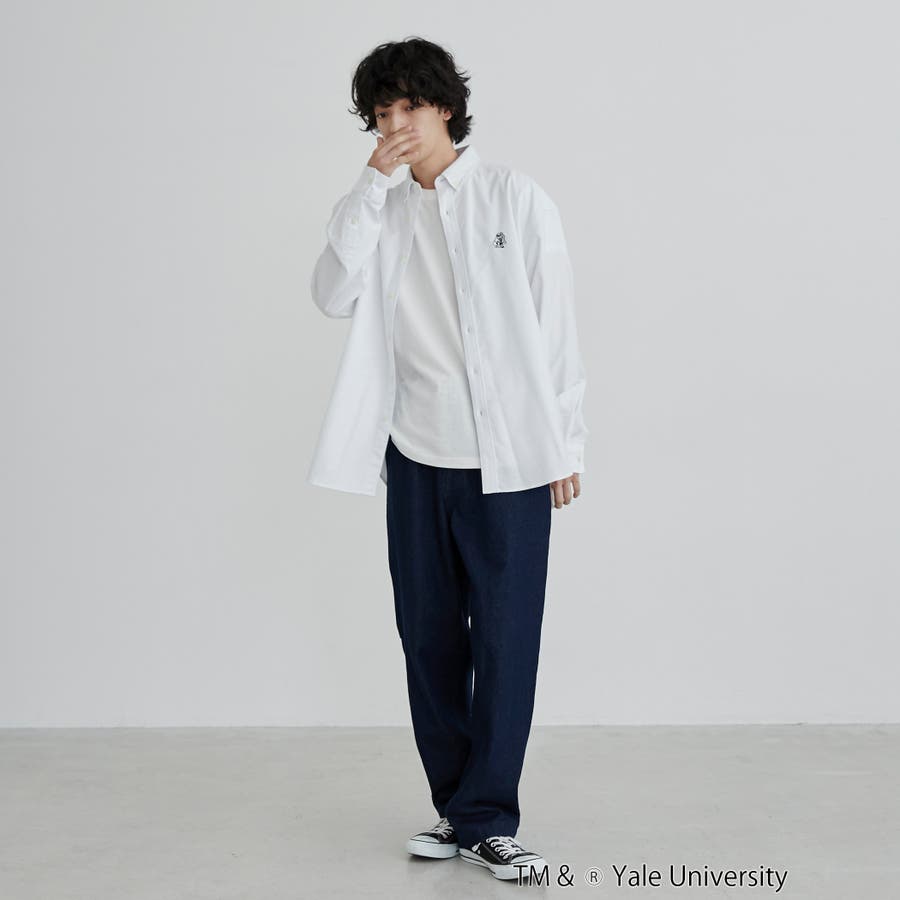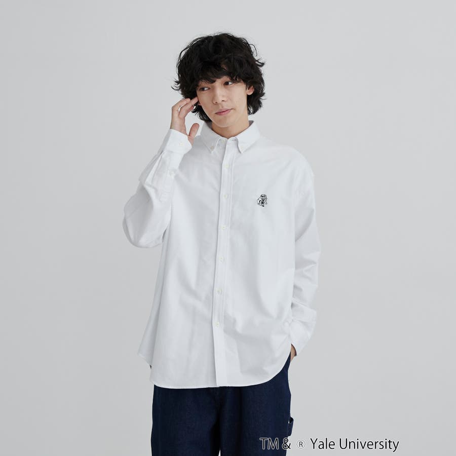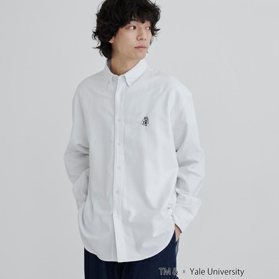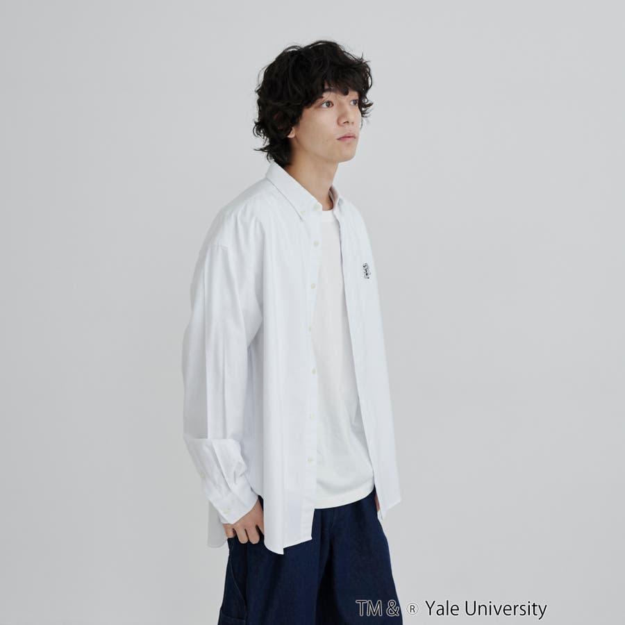 【WHITE】YALE別注ワンポイント刺繍ネルシャツ