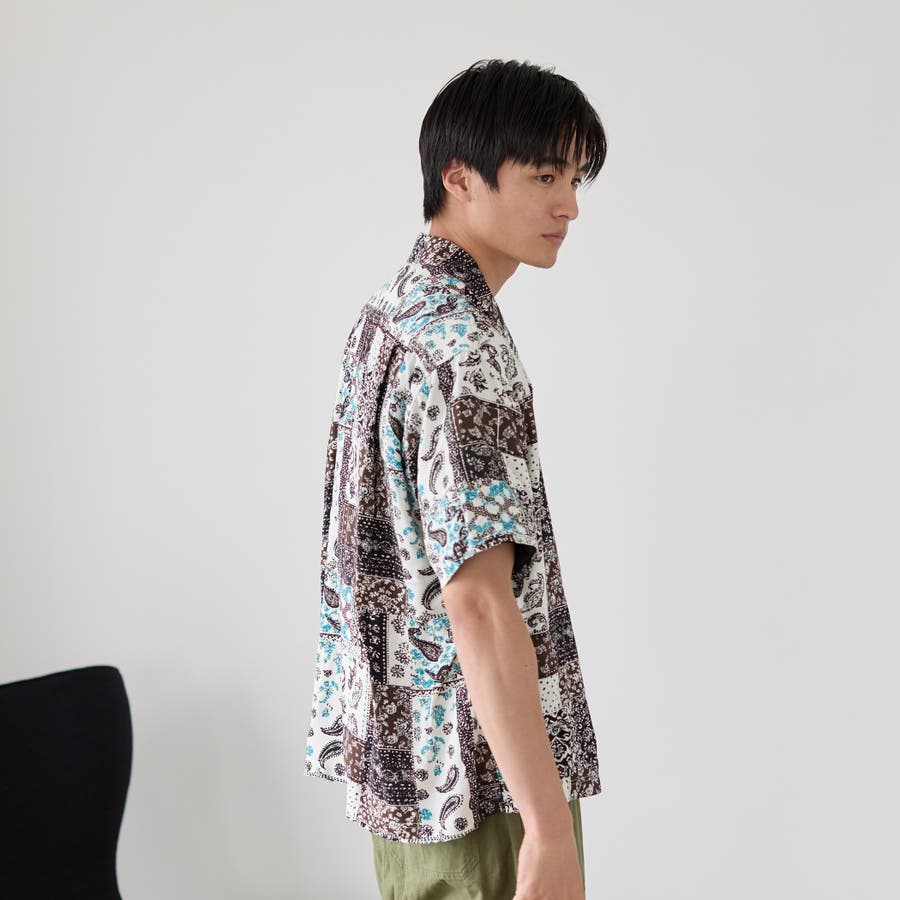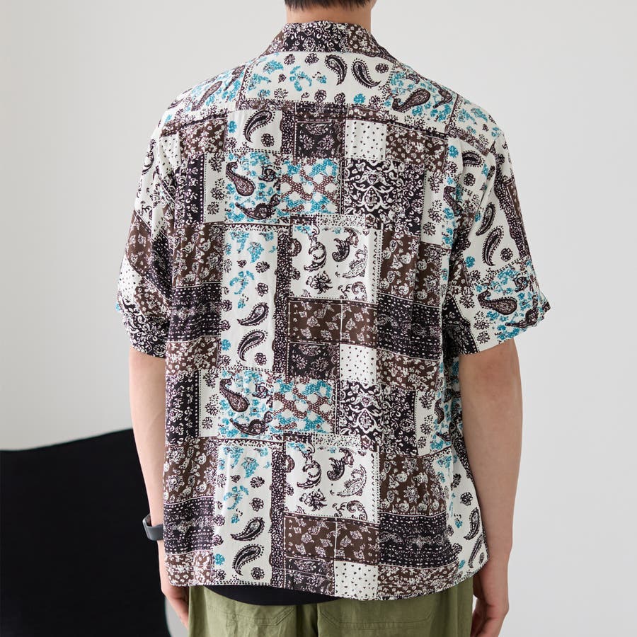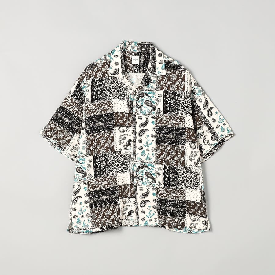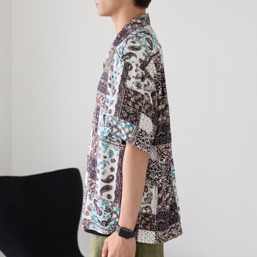 バティックやペイズリーなど、異なる柄を絶妙なバランスで切り替えたようなパネルプリントシャツ。
