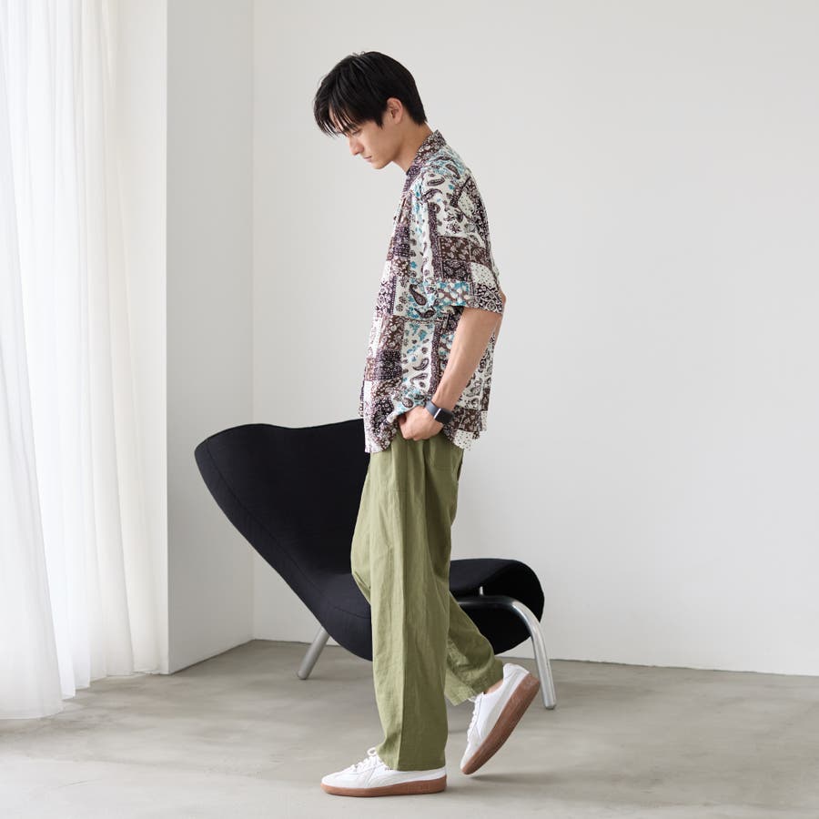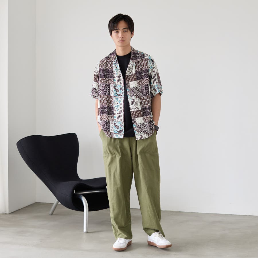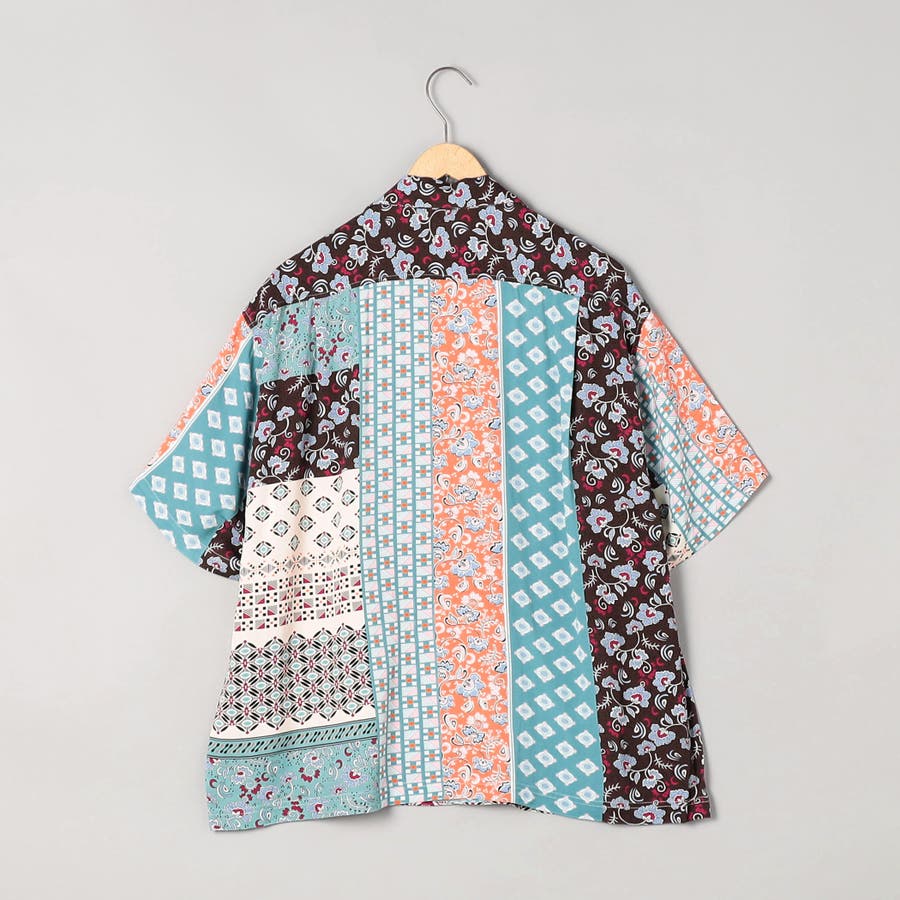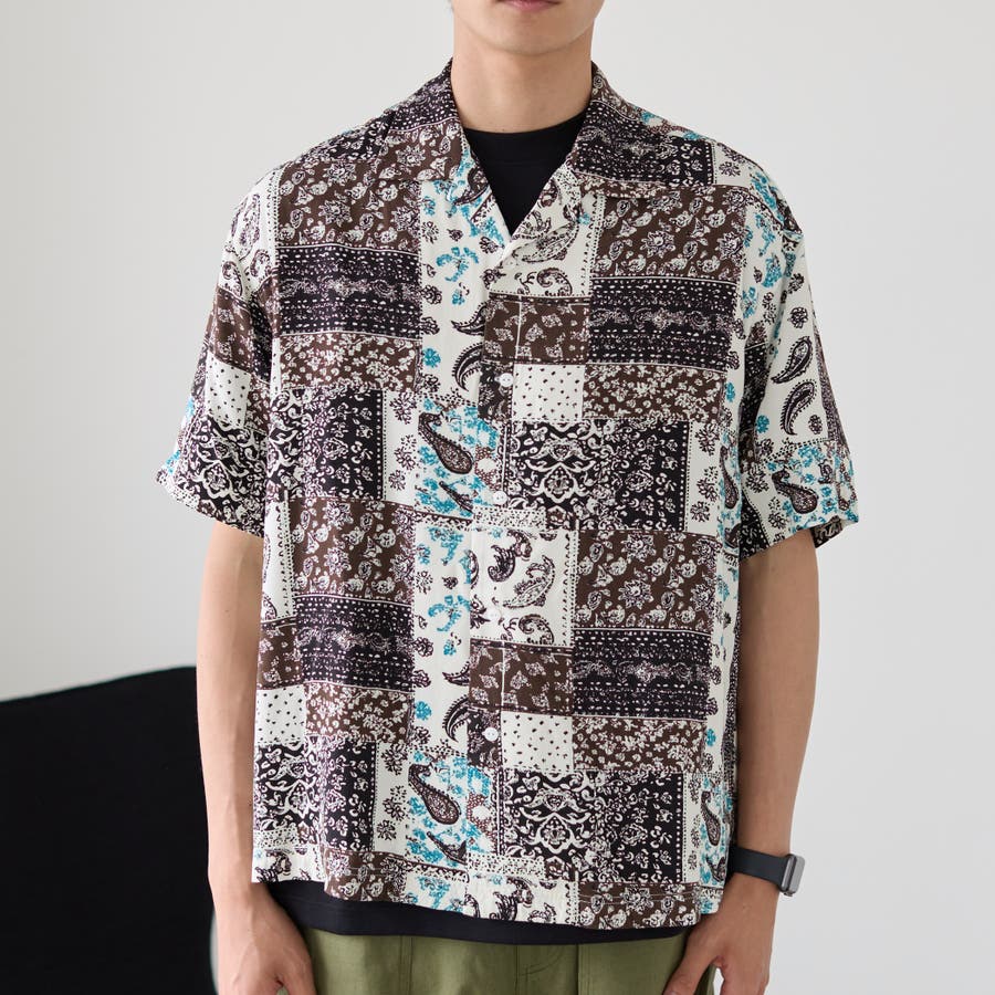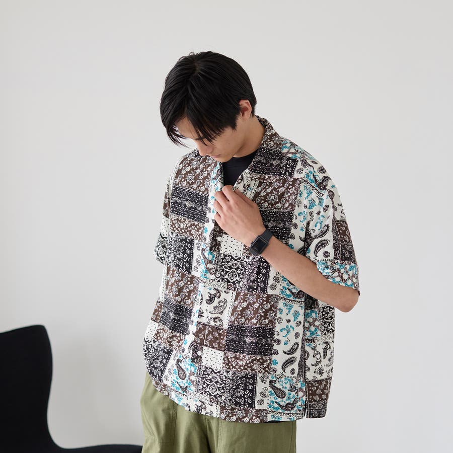 バティックやペイズリーなど、異なる柄を絶妙なバランスで切り替えたようなパネルプリントシャツ。