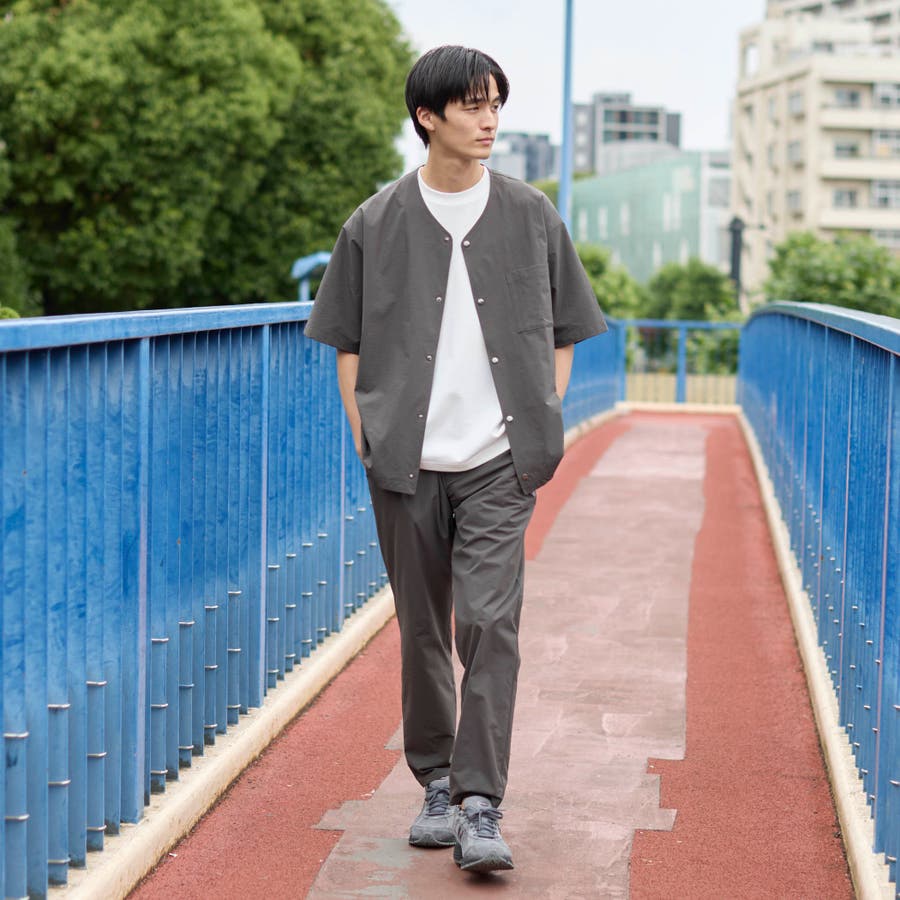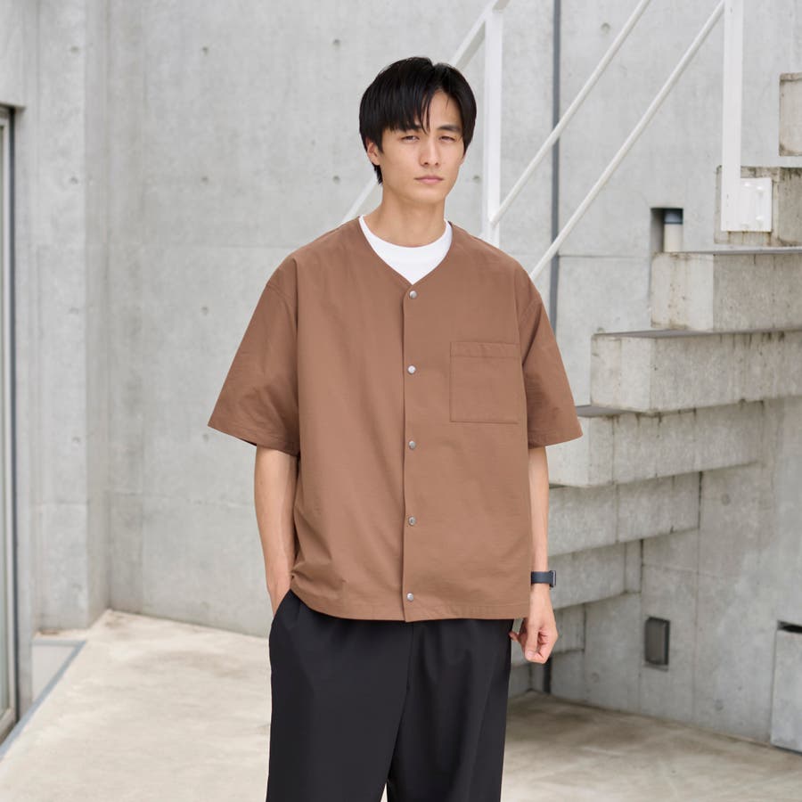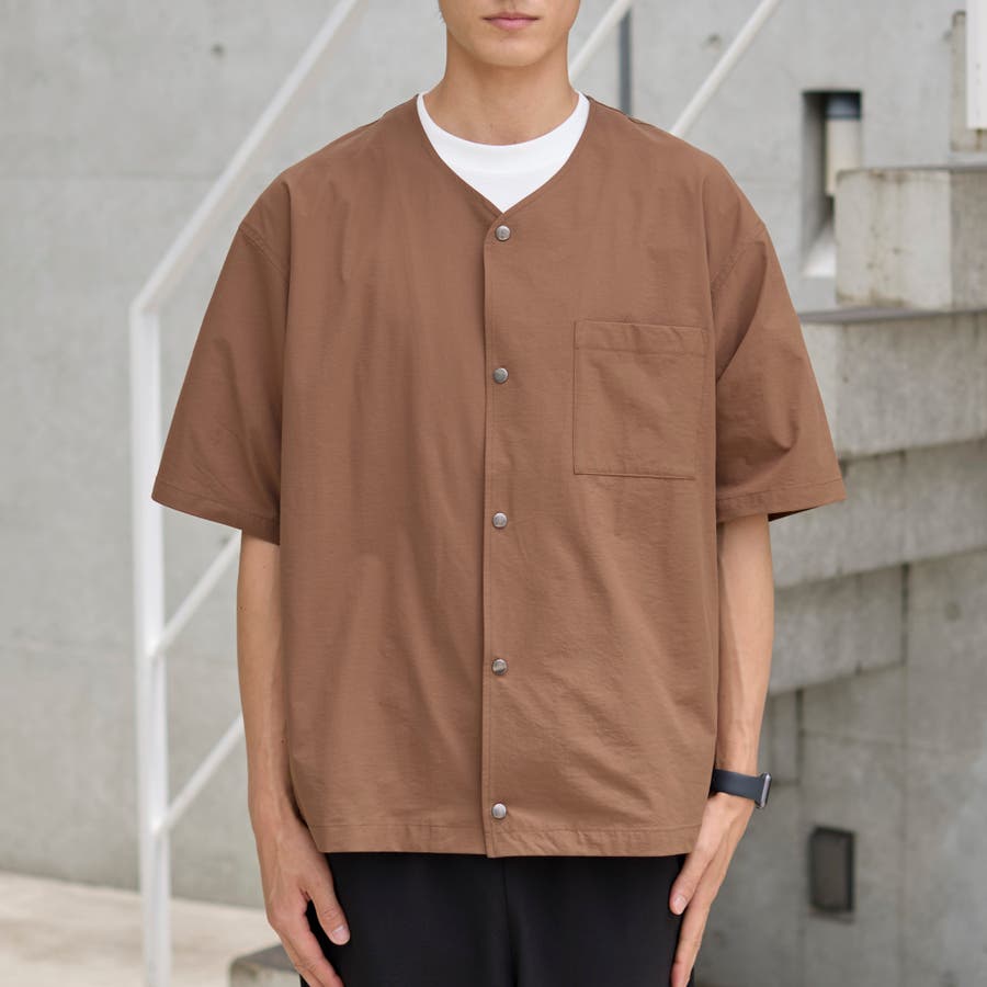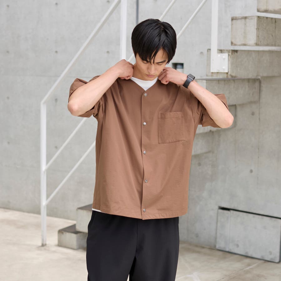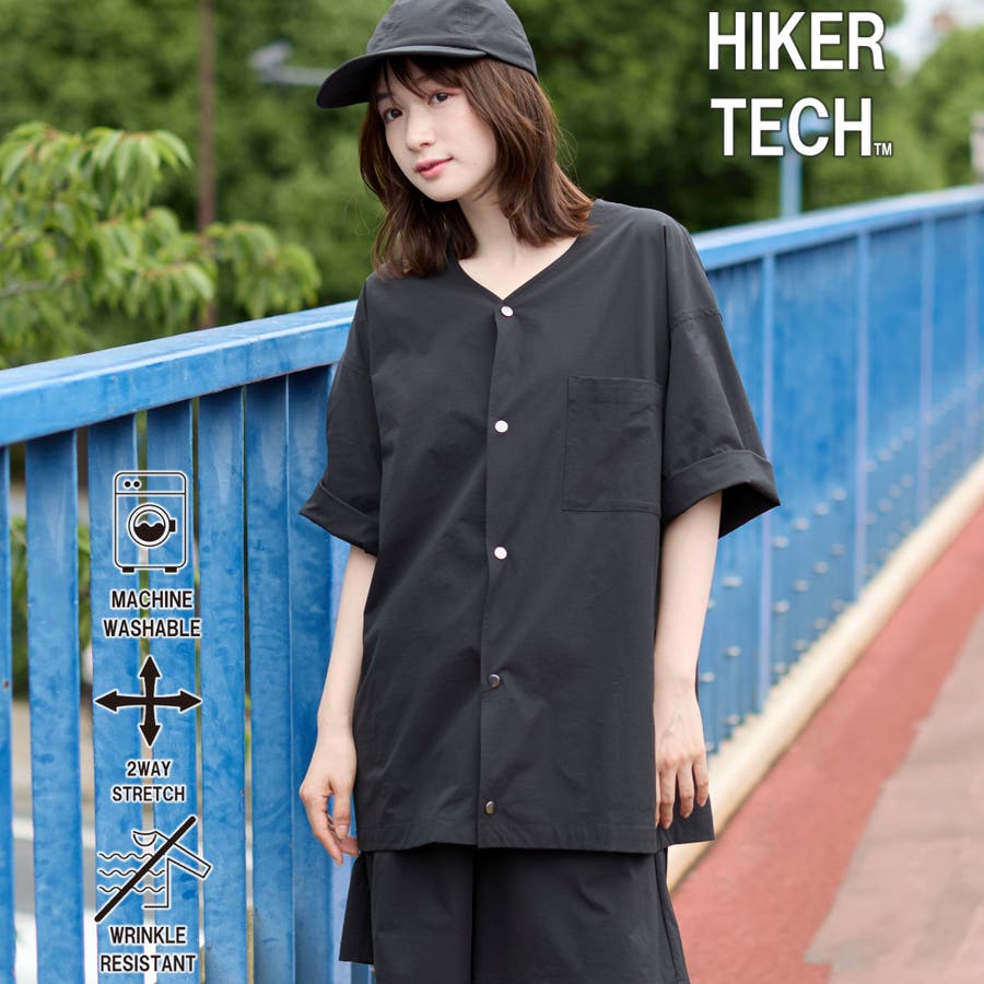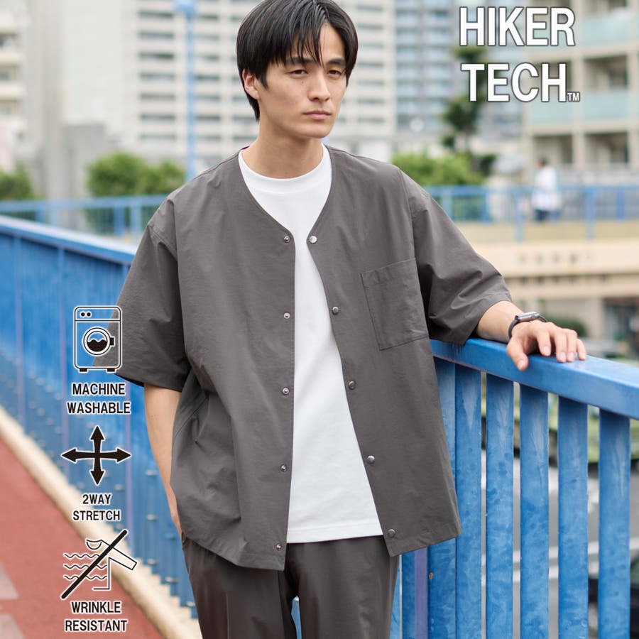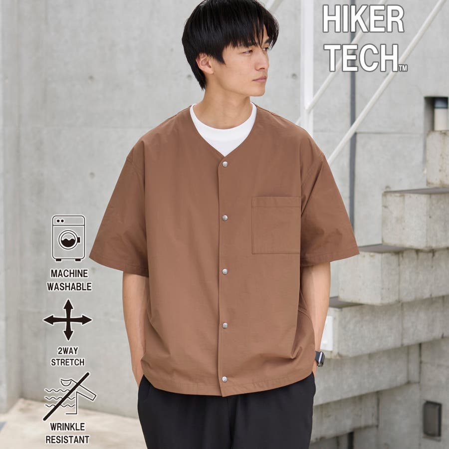 ハイカーテックライトウェイトノーカラーシャツ【洗濯機洗い可 2WAYストレッチ …