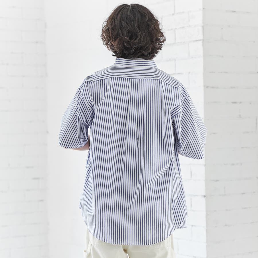 ブロードストライプレギュラーカラーショートスリーブシャツ