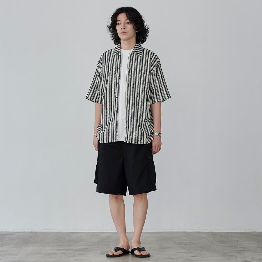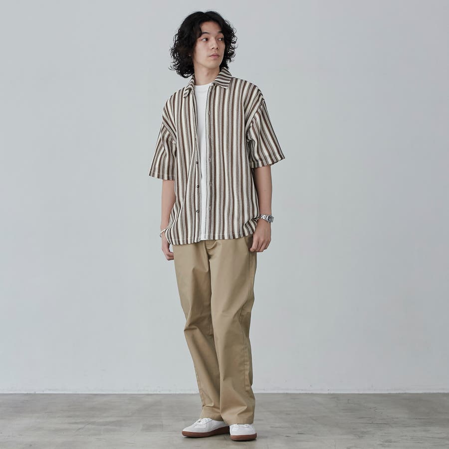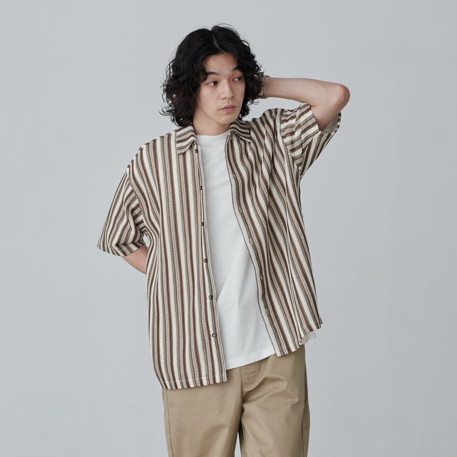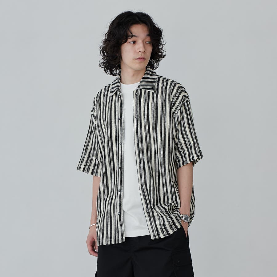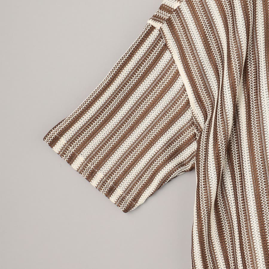 表面感のある編地とストライプ調の柄でシンプルな着こなしになりがちな夏のコーデに持っておくと重宝すること間違いなしです。