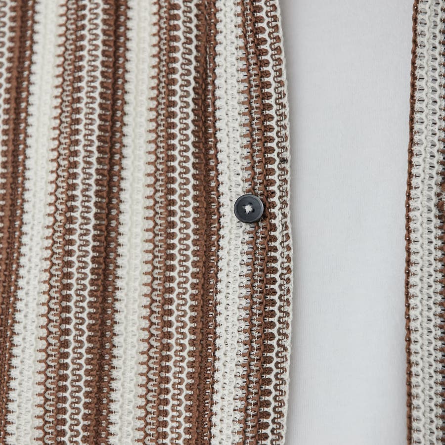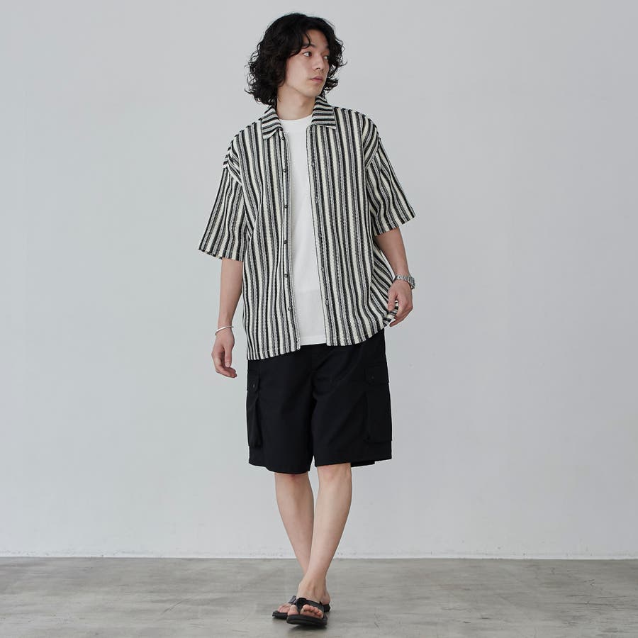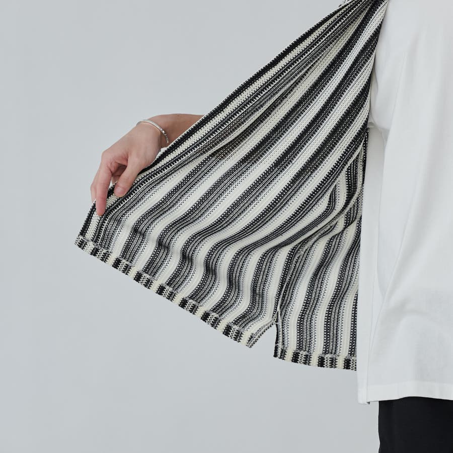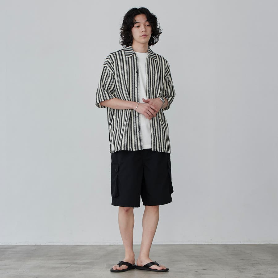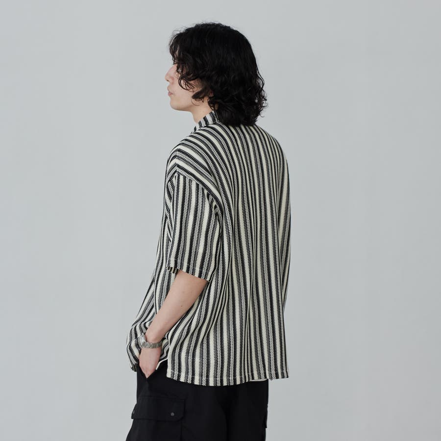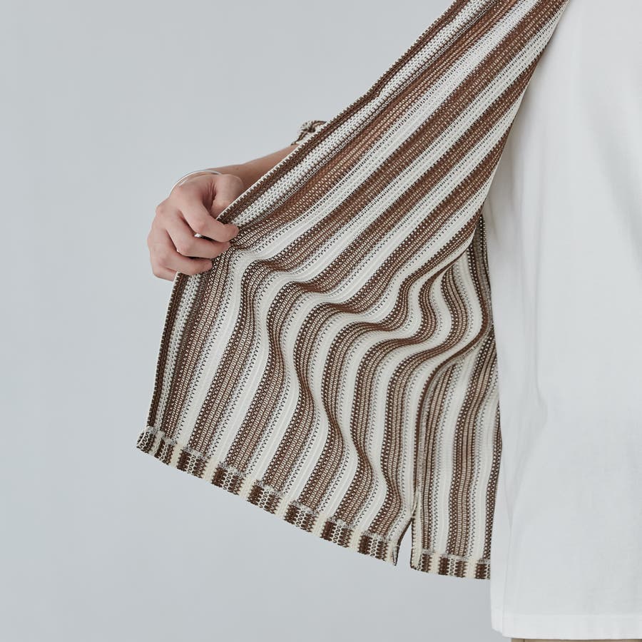 表面感のある編地とストライプ調の柄でシンプルな着こなしになりがちな夏のコーデに持っておくと重宝すること間違いなしです。