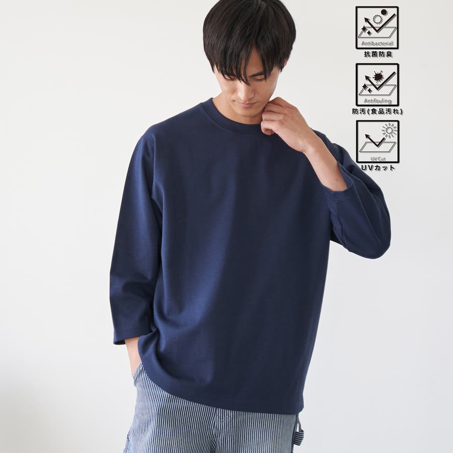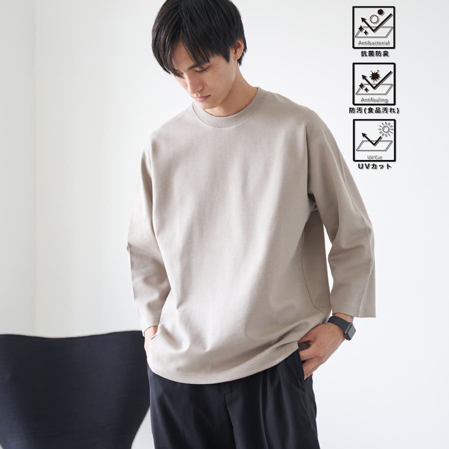 一見シンプルなオーバーサイズTシャツながら、抗菌防臭・防汚(食品汚れ)・UVカットと、日常使いに嬉しい機能がしっかり詰まった高機能アイテム。