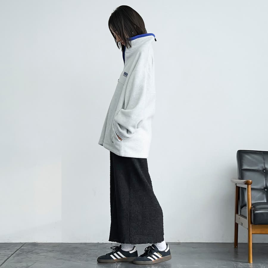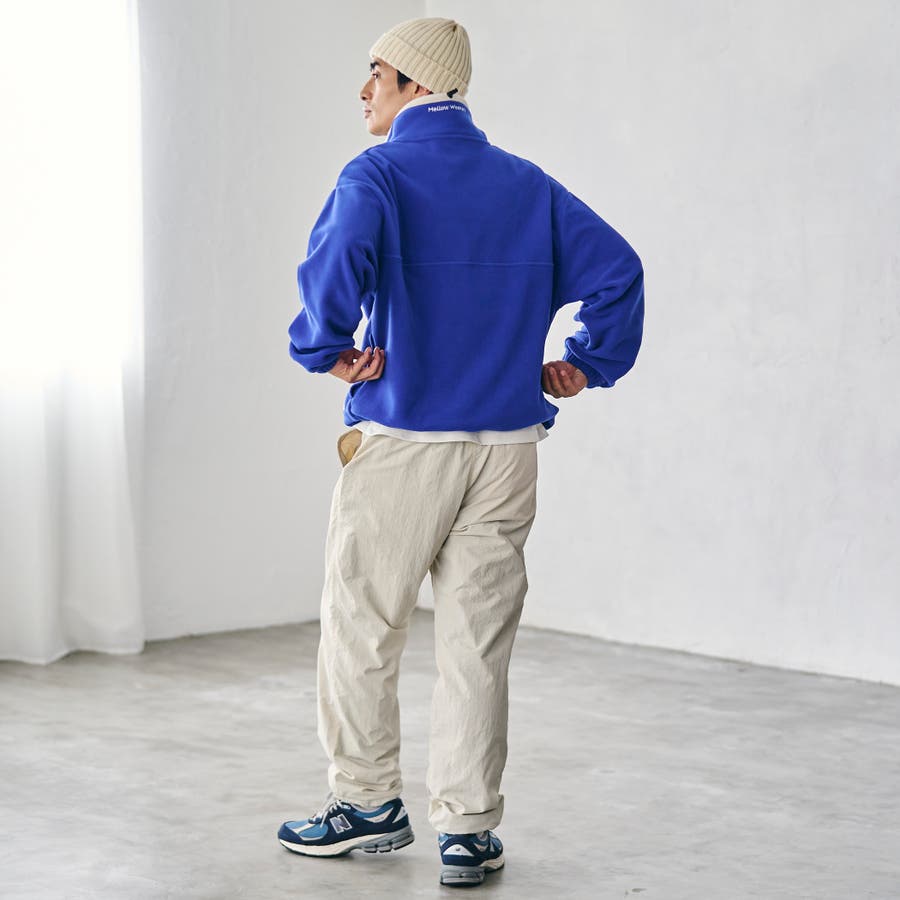 柔らかなフリース素材を使用し、軽やかで暖かく、真冬のレイヤードにも活躍する一枚です。