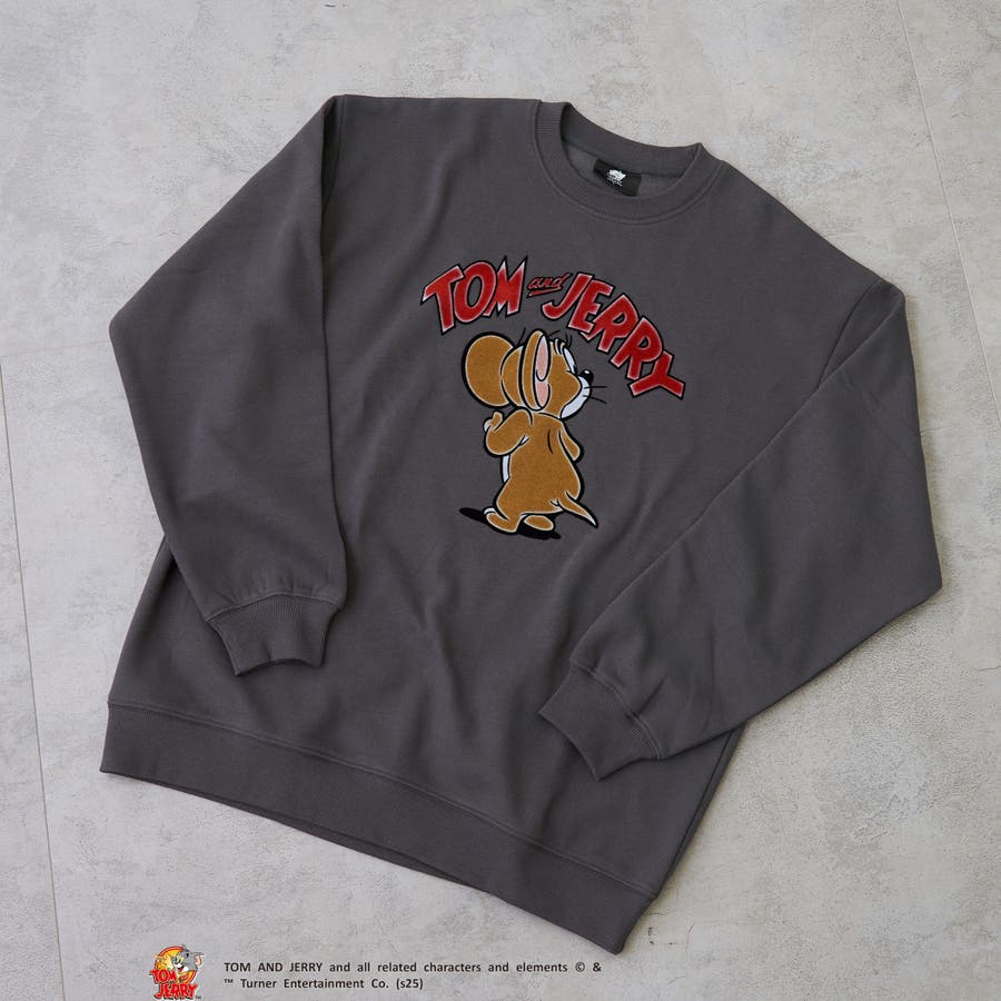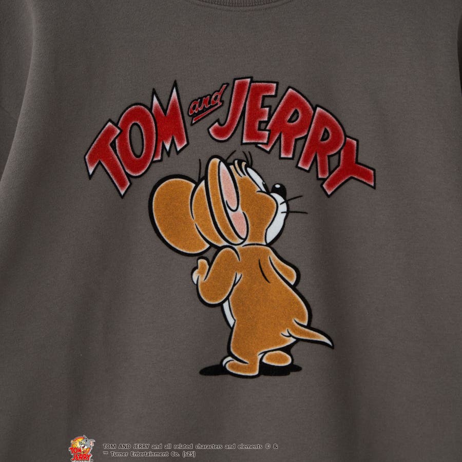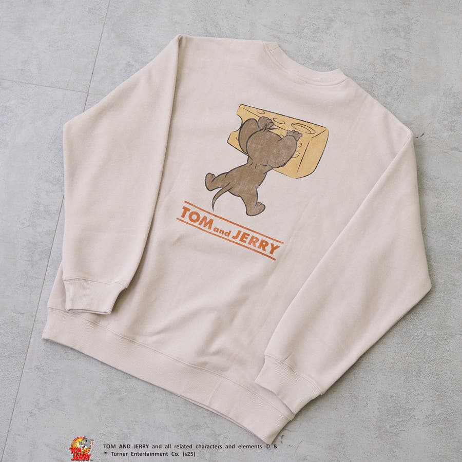 トムとジェリーのデザインプリントが施された、ヴィンテージライクスウェット。