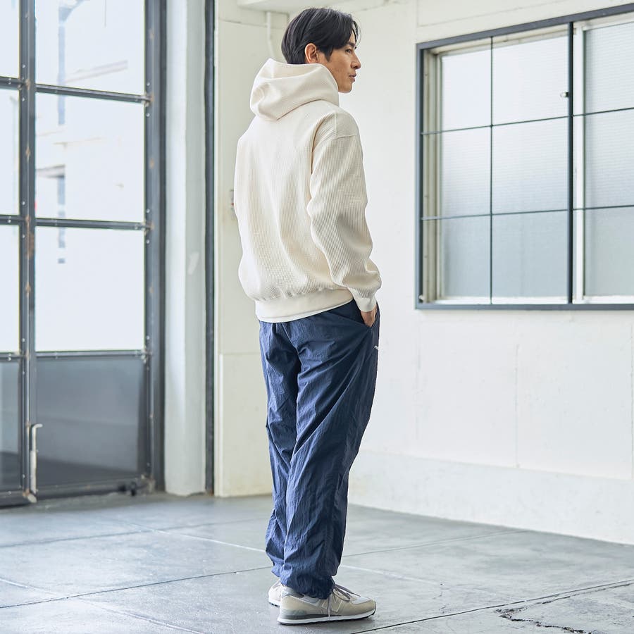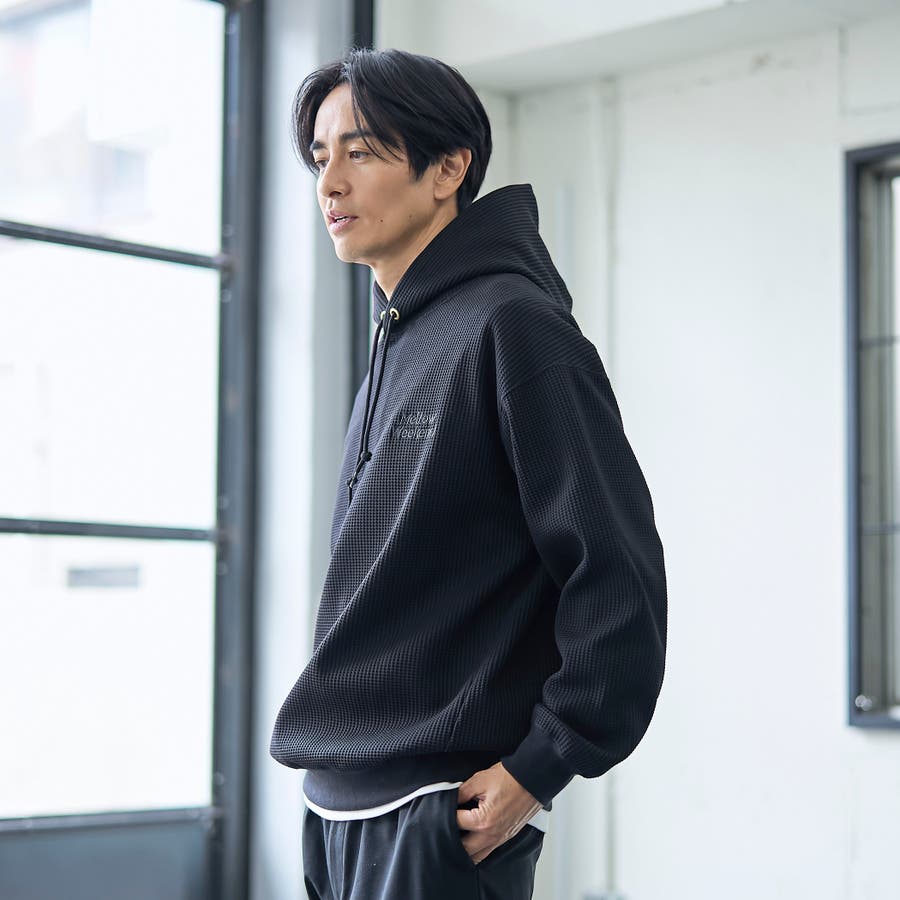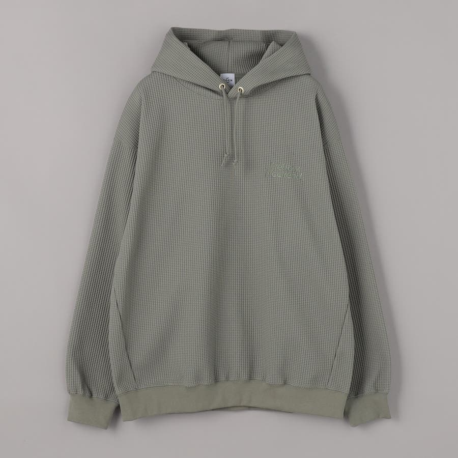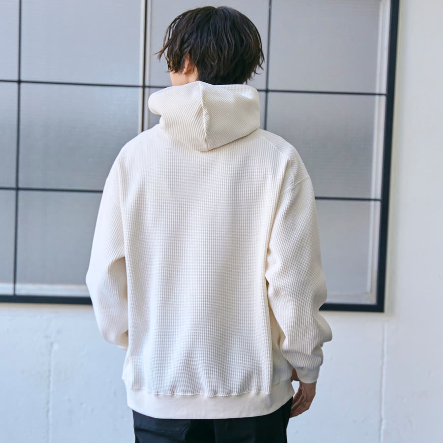 ワッフル素材を僅かに裏起毛させ、柔らく暖かみのある肌触りに仕上げたワッフルパーカー。