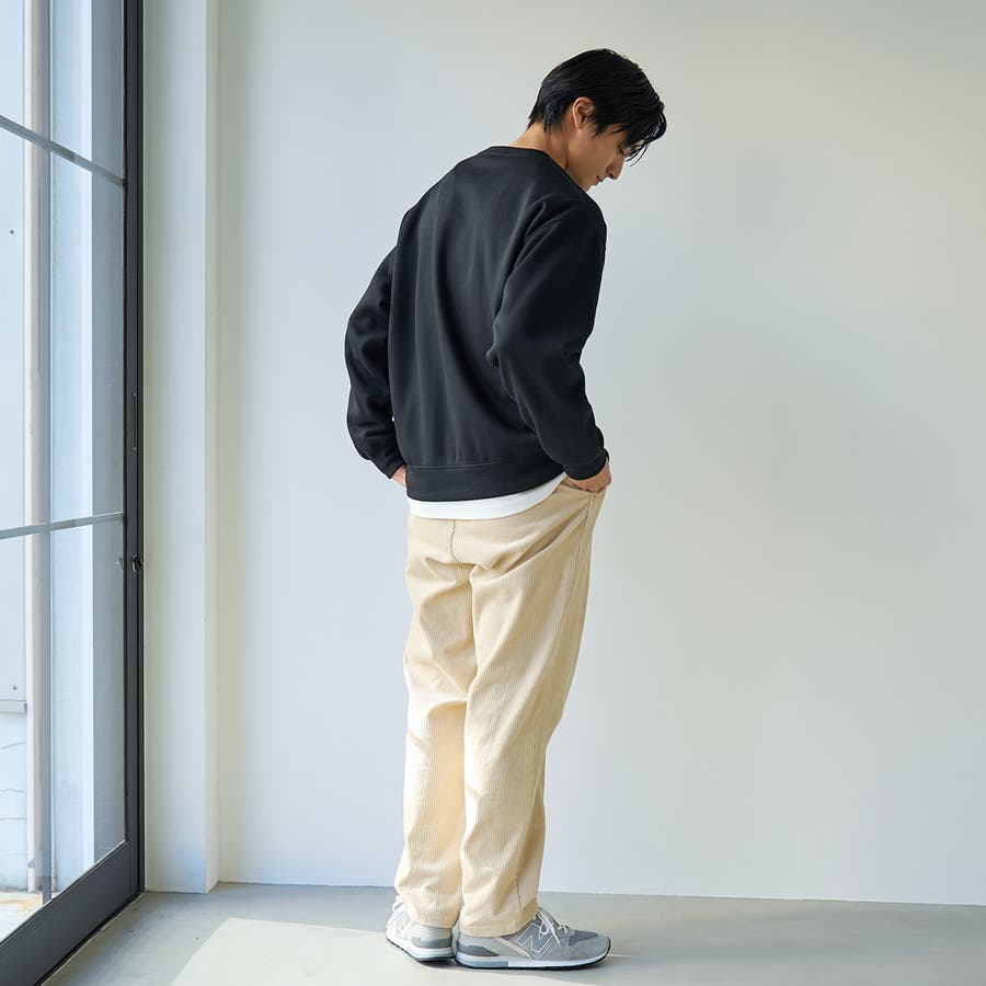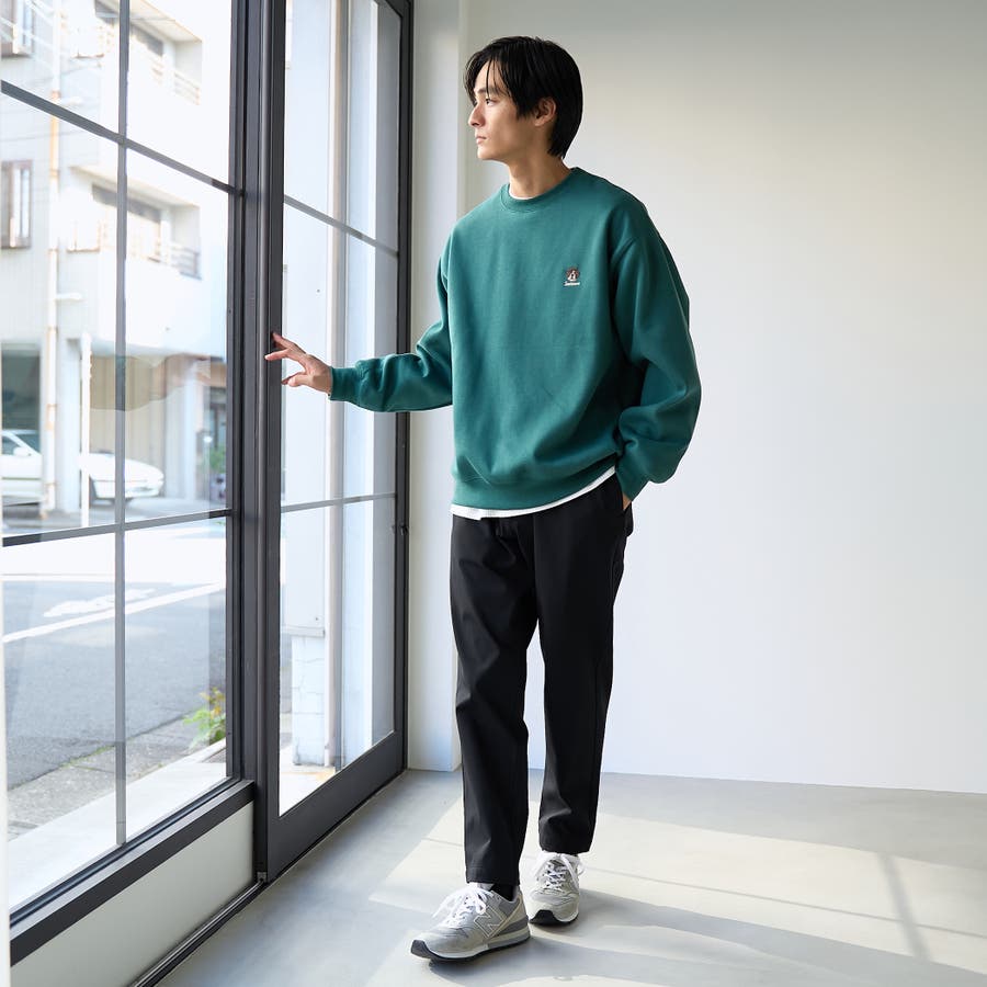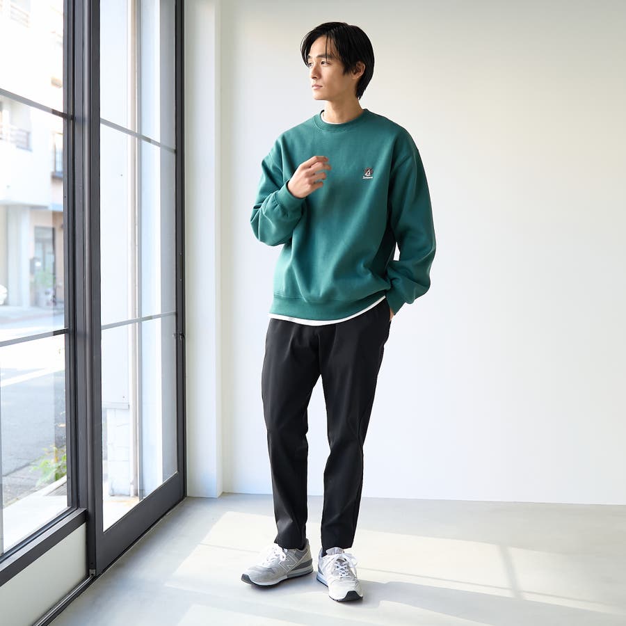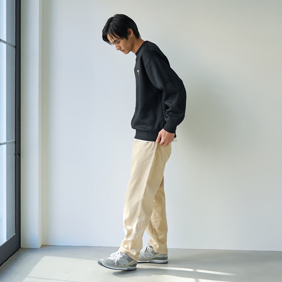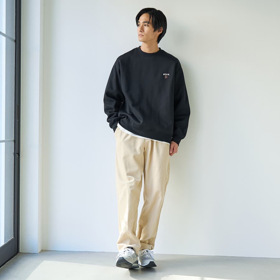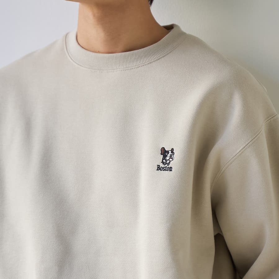 裏起毛で暖かく、ゆったり × さりげない遊び心。犬刺繍が映える大人スウェット