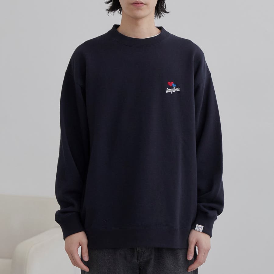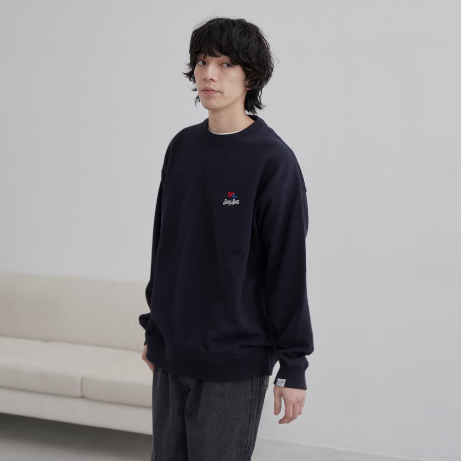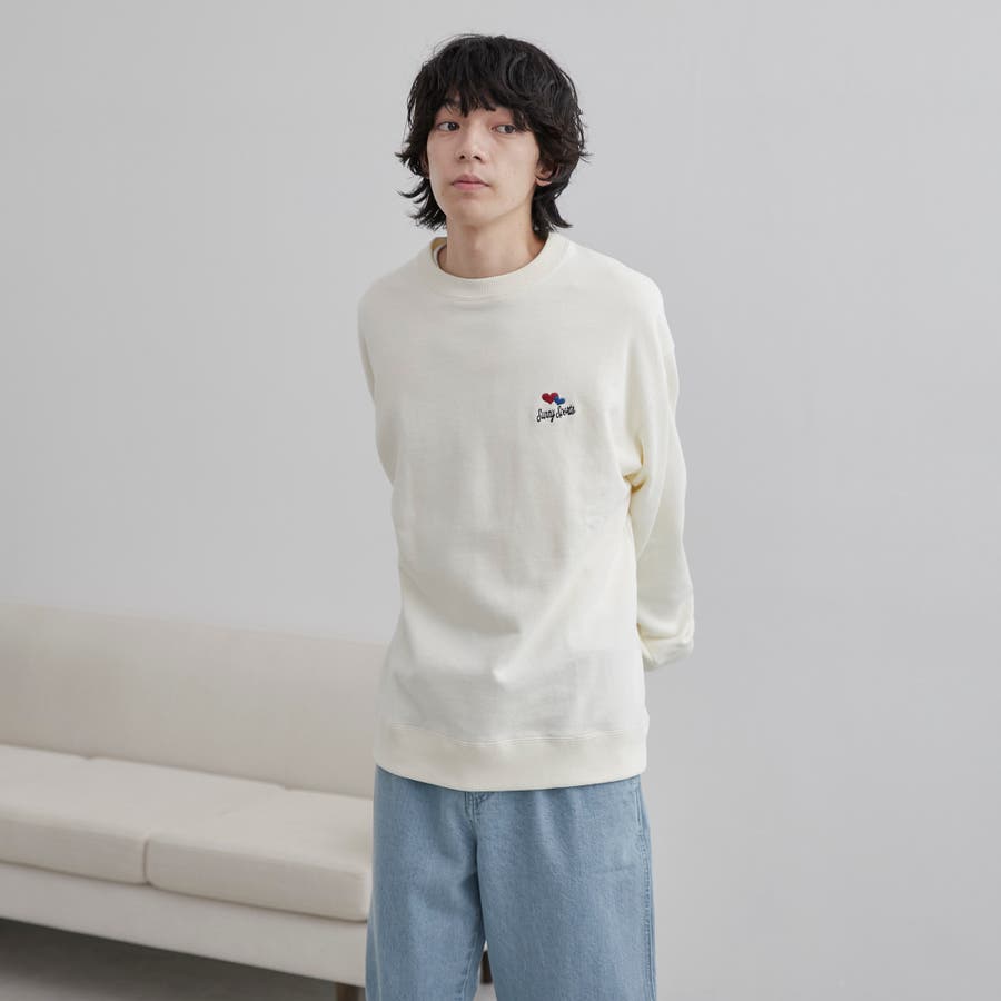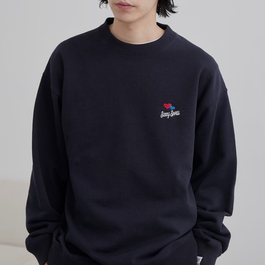 シンプルなボディにハートのチビ刺繍が映えるSUNNYSPORTS別注トレーナー