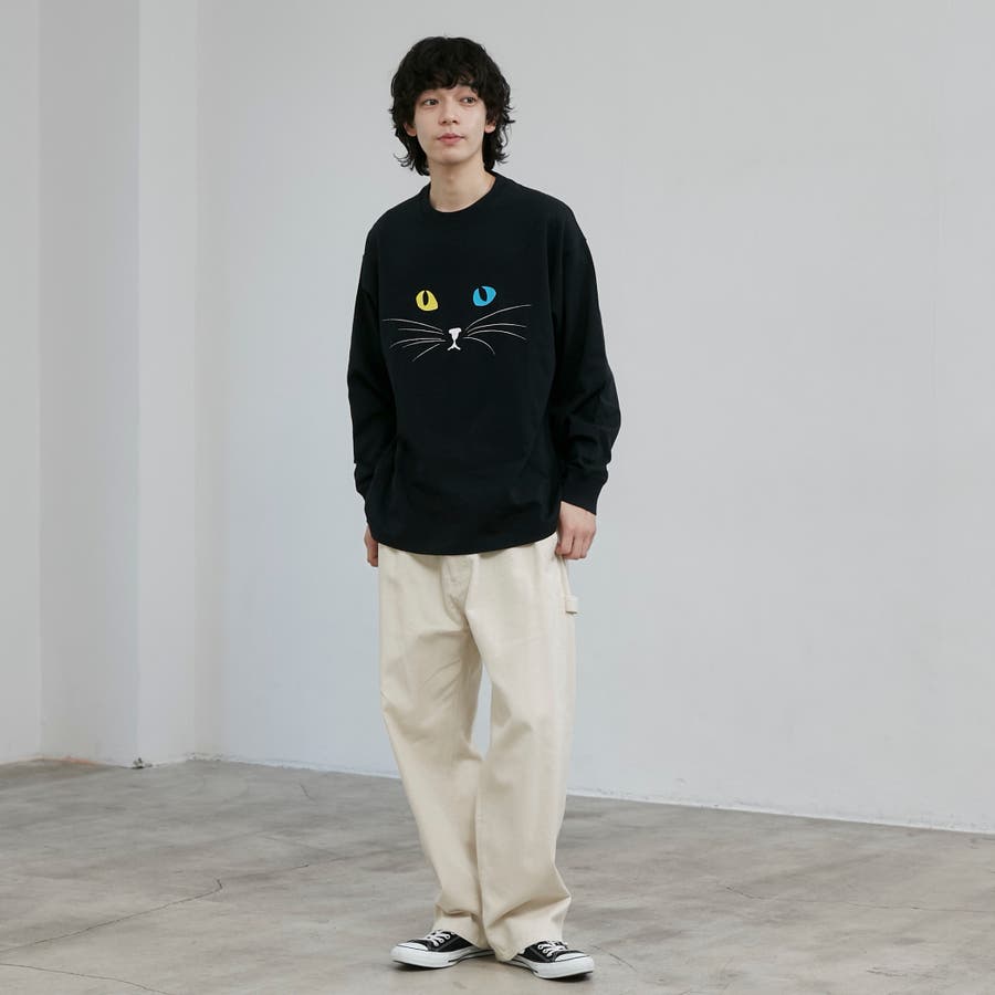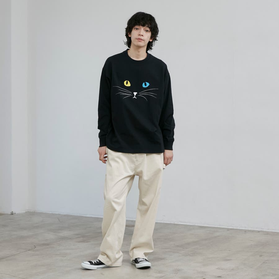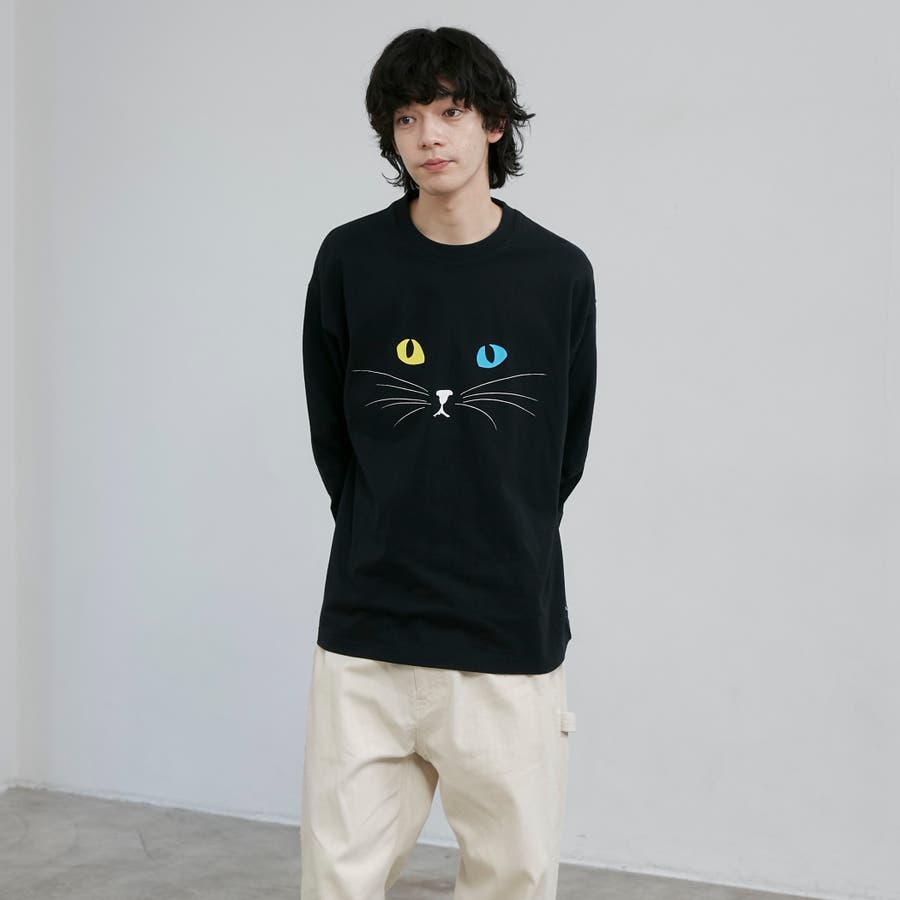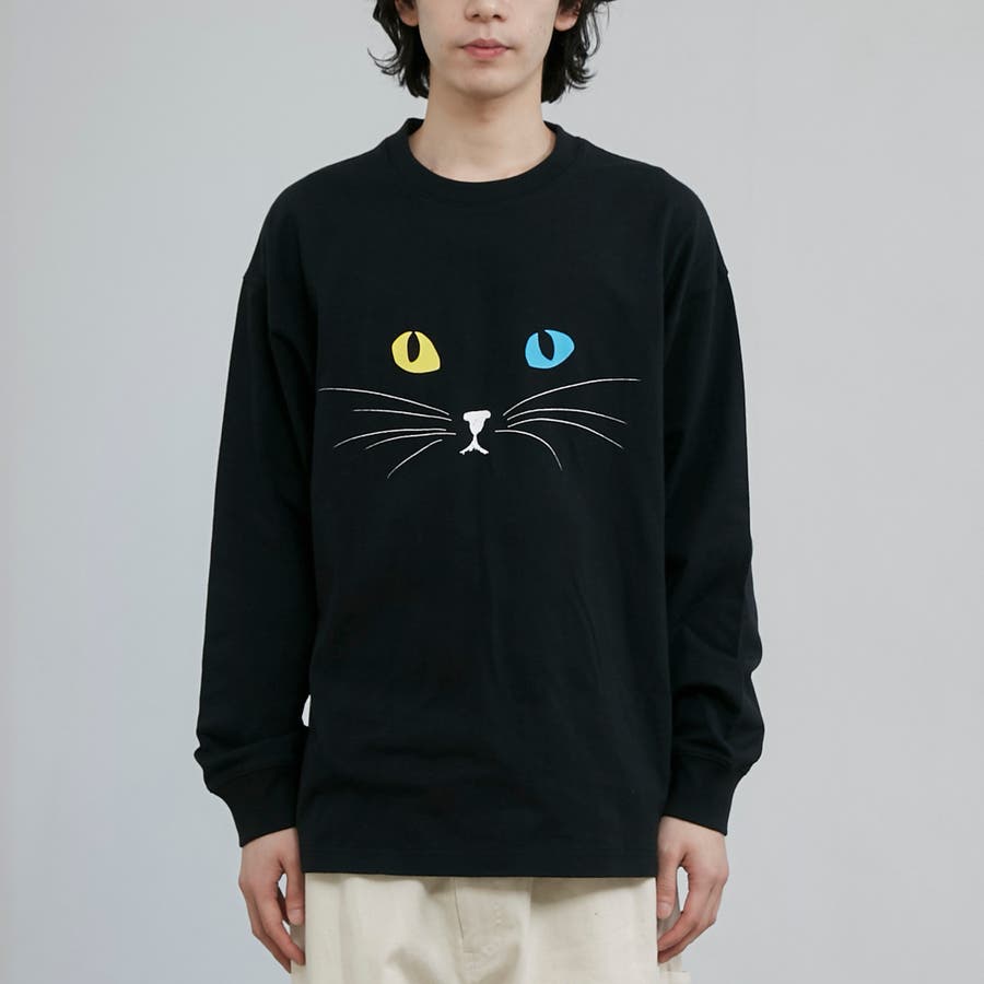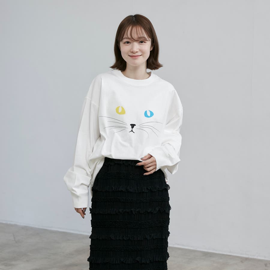 オッドアイのキャットフェイスをプリントしたロングスリーブTシャツ。