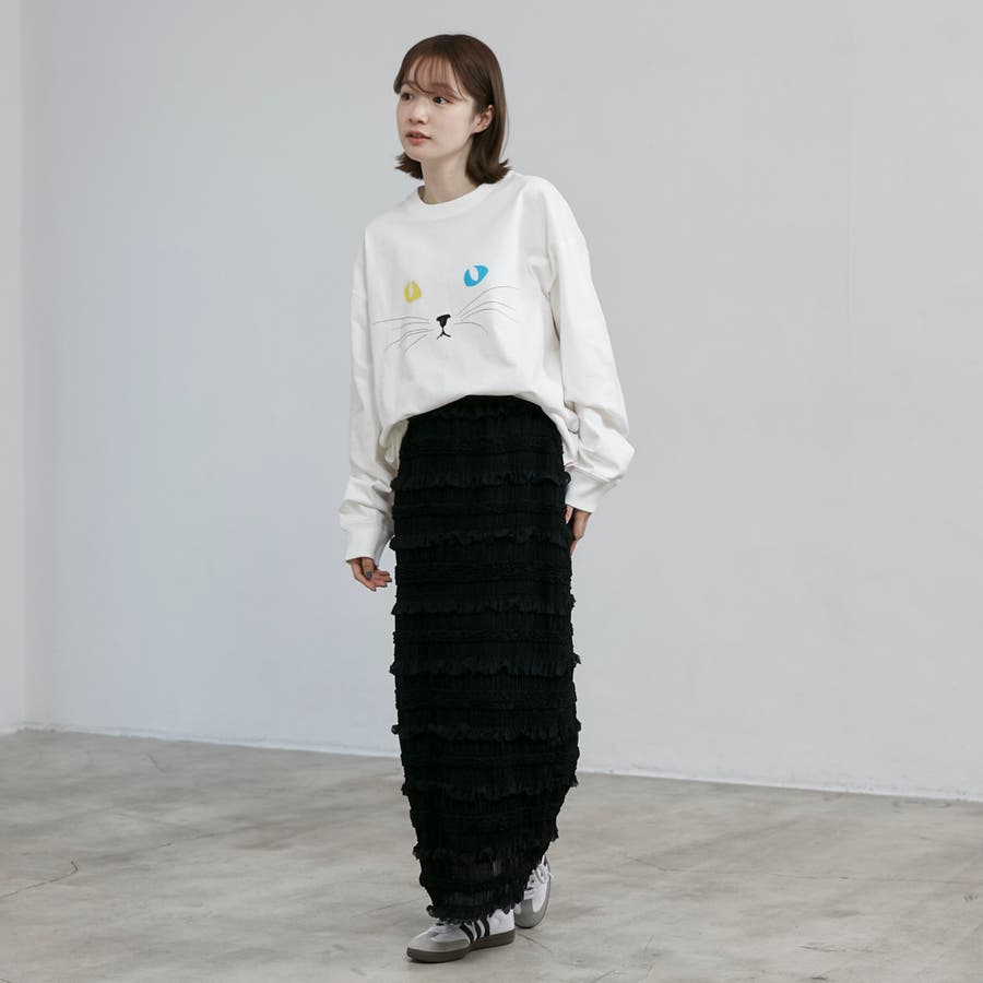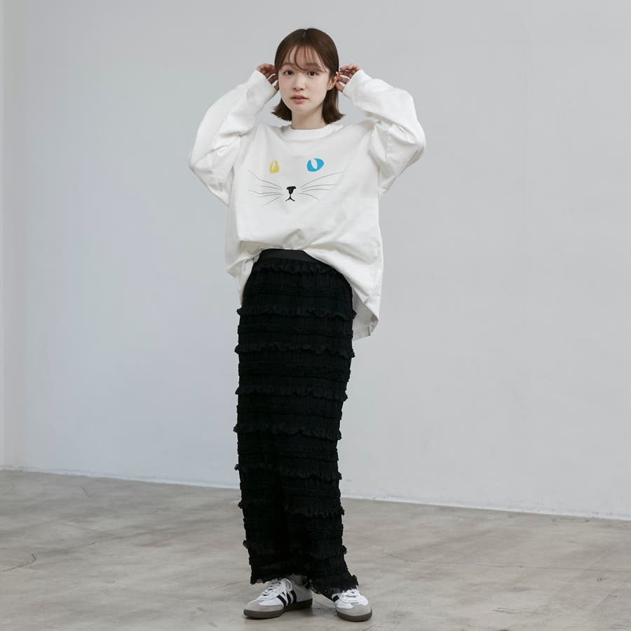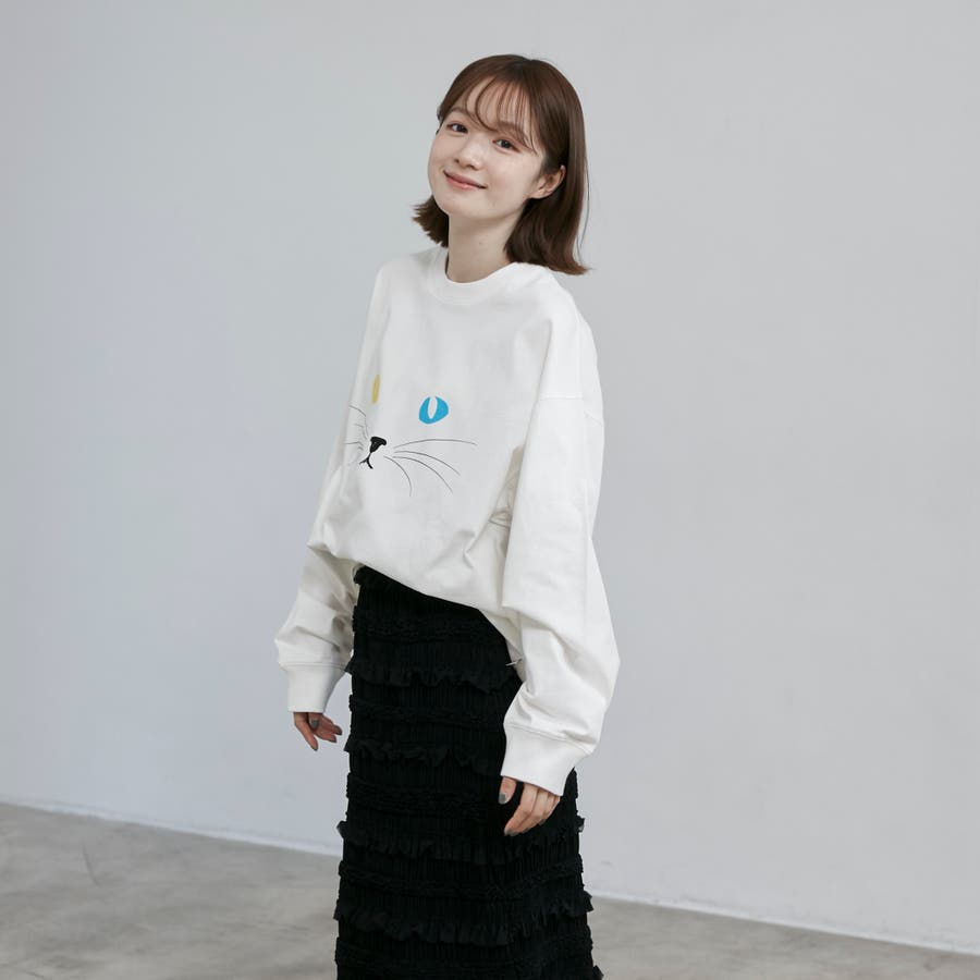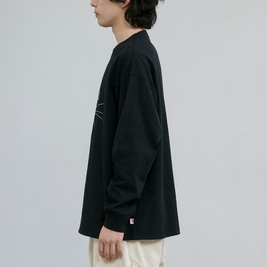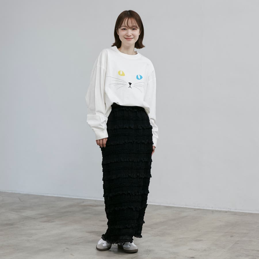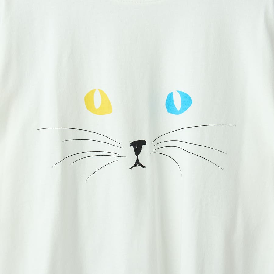 オッドアイのキャットフェイスをプリントしたロングスリーブTシャツ。